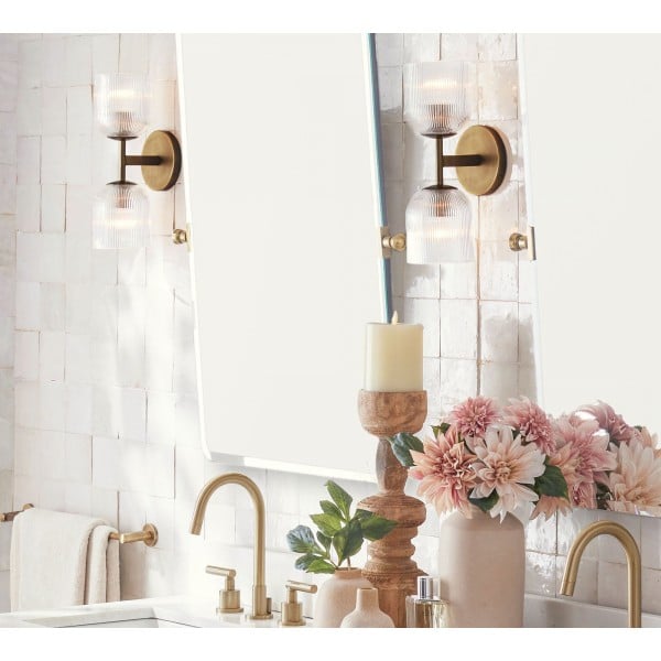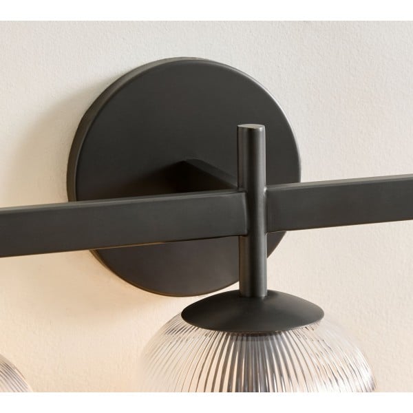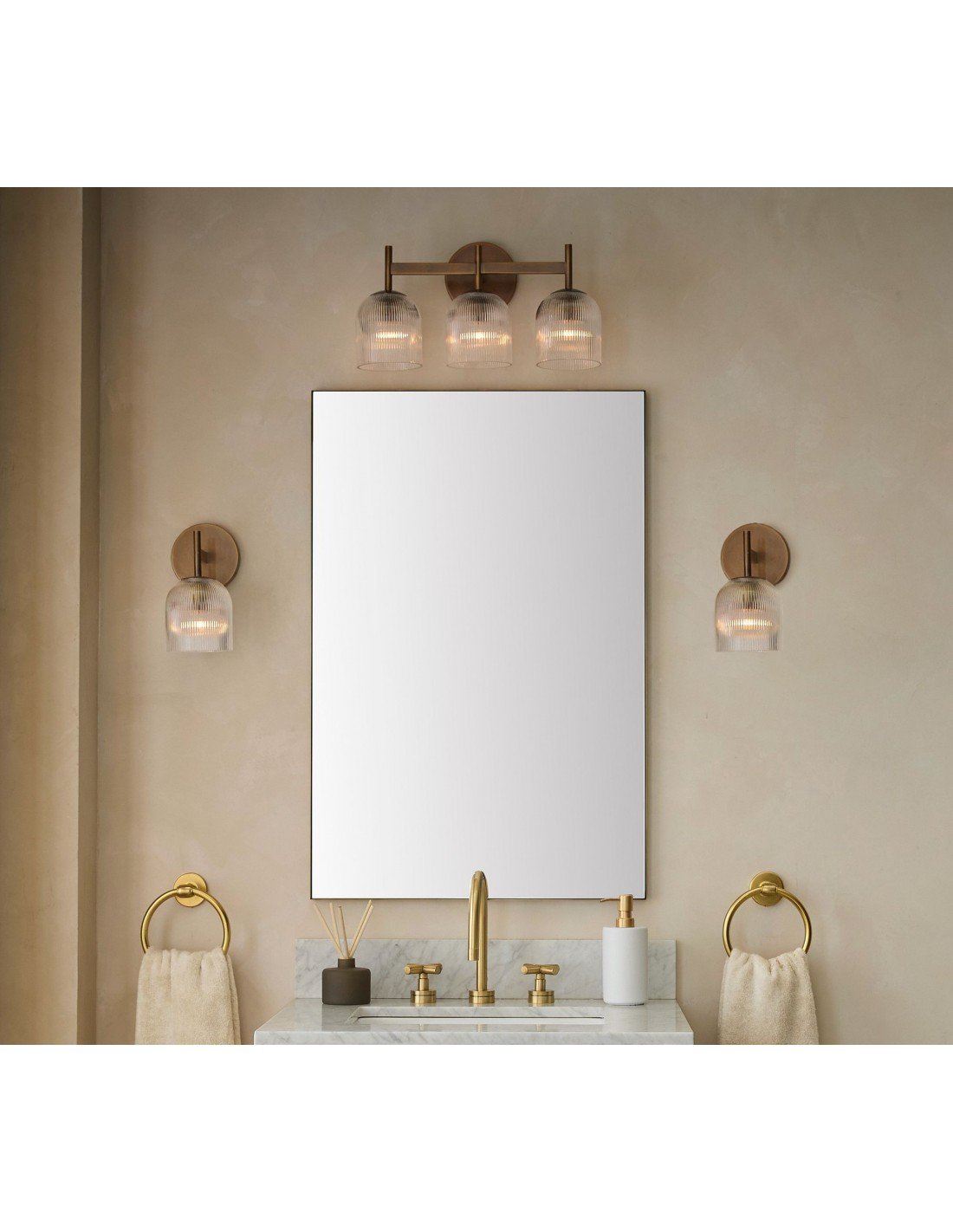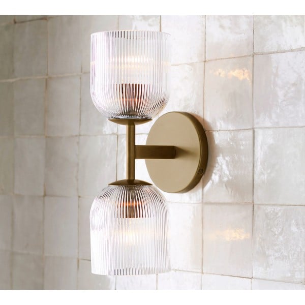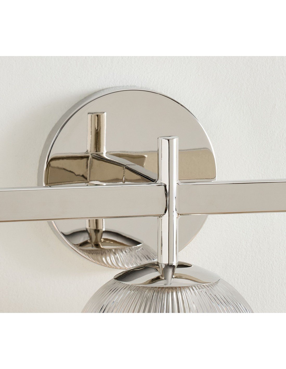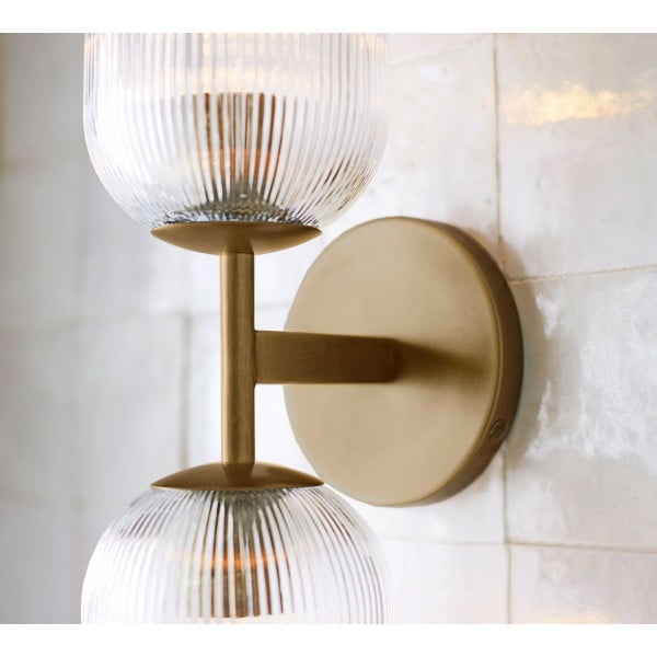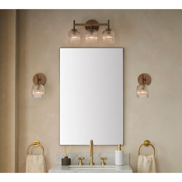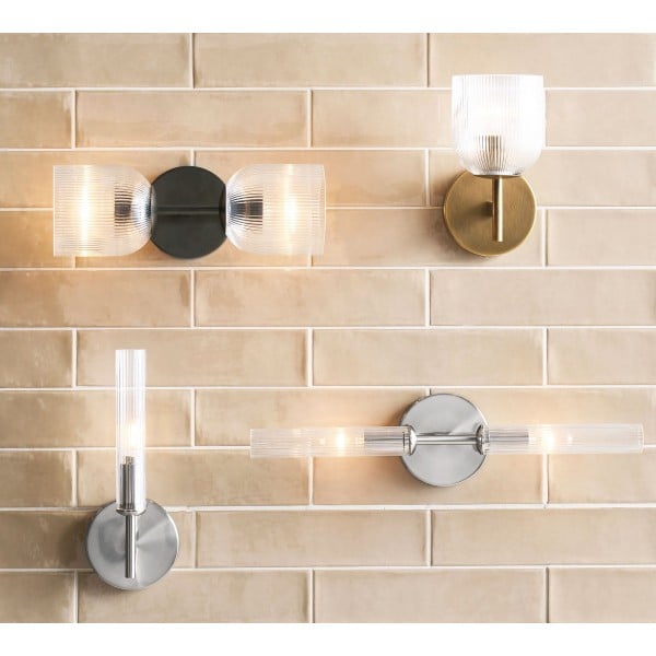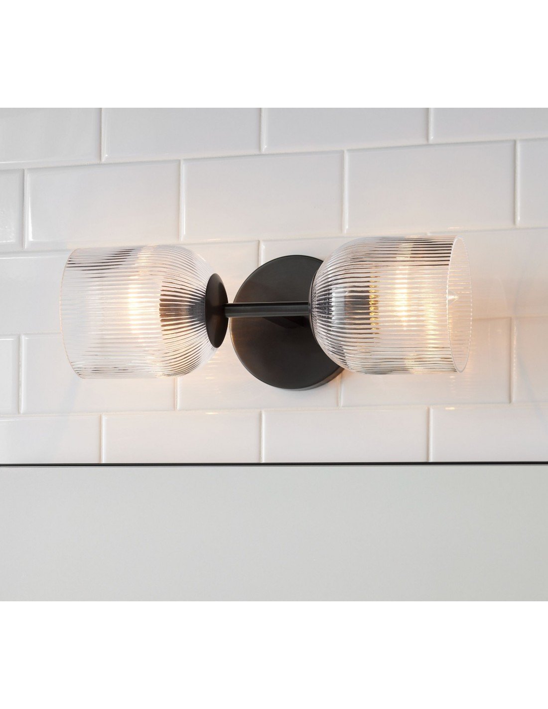 Sublimez n'importe quel espace avec l'applique Bravira en verre strié, conçue pour allier style et fonctionnalité. Fabriquée en fer, elle est disponible en finitions bronze antique, nickel satiné ou laiton vieilli, avec un abat-jour en verre transparent soufflé à la main. Idéale comme applique murale pour une chambre, un couloir ou comme élément décoratif dans un salon.