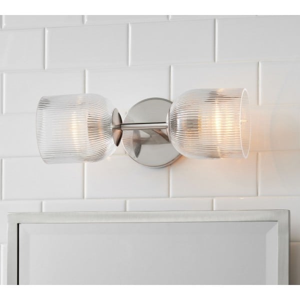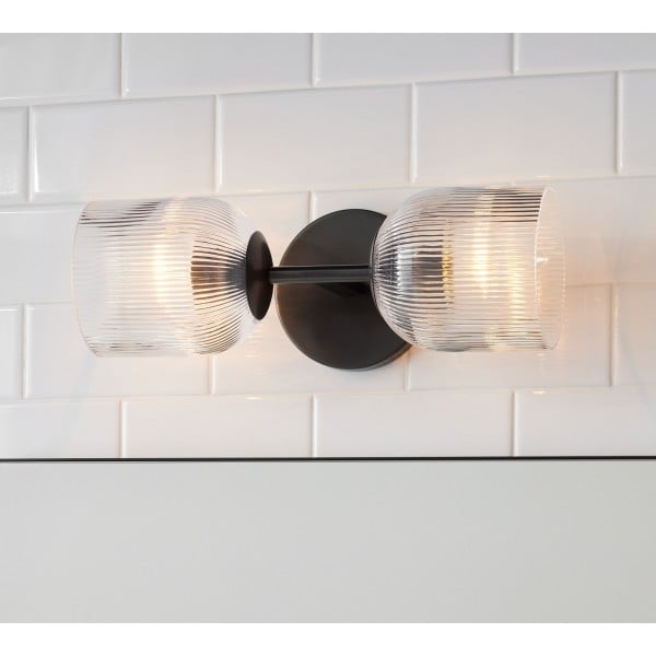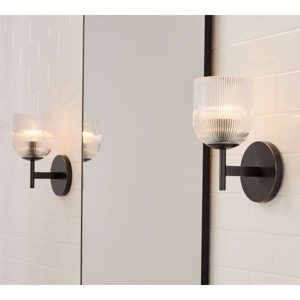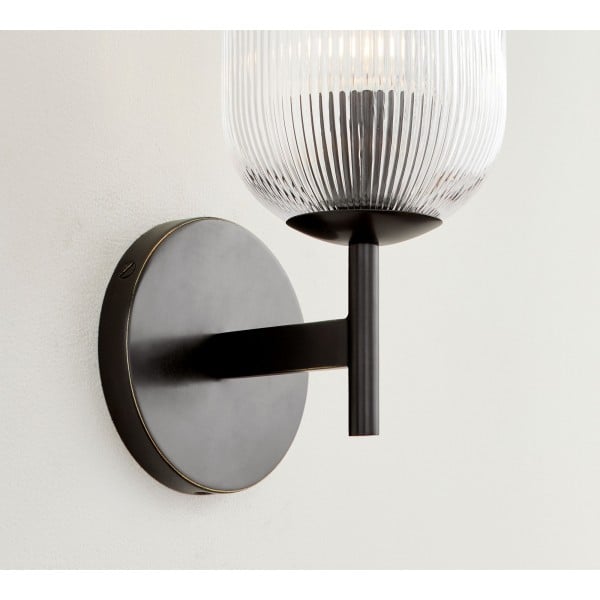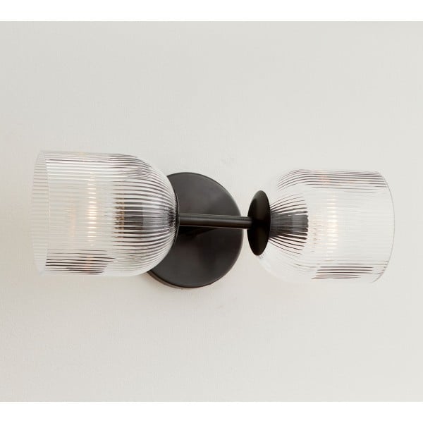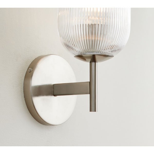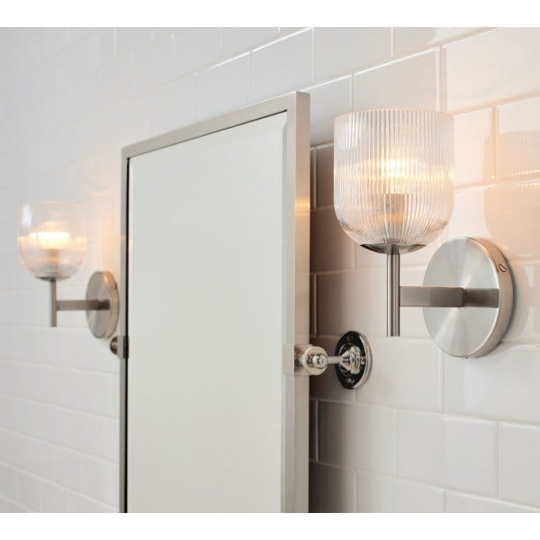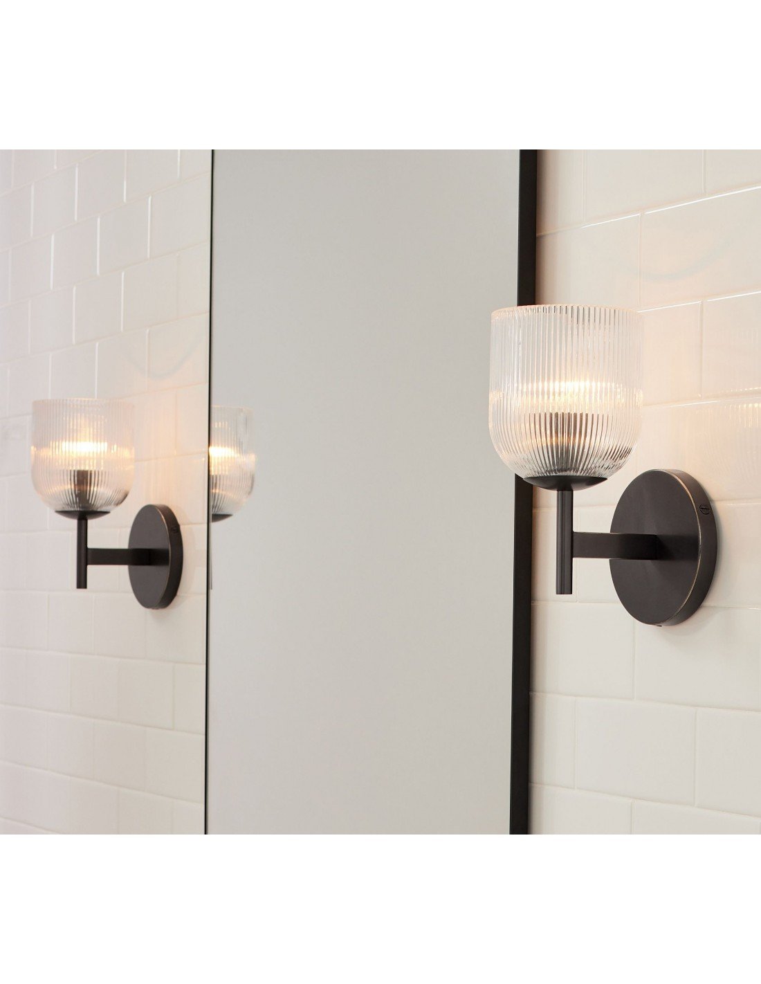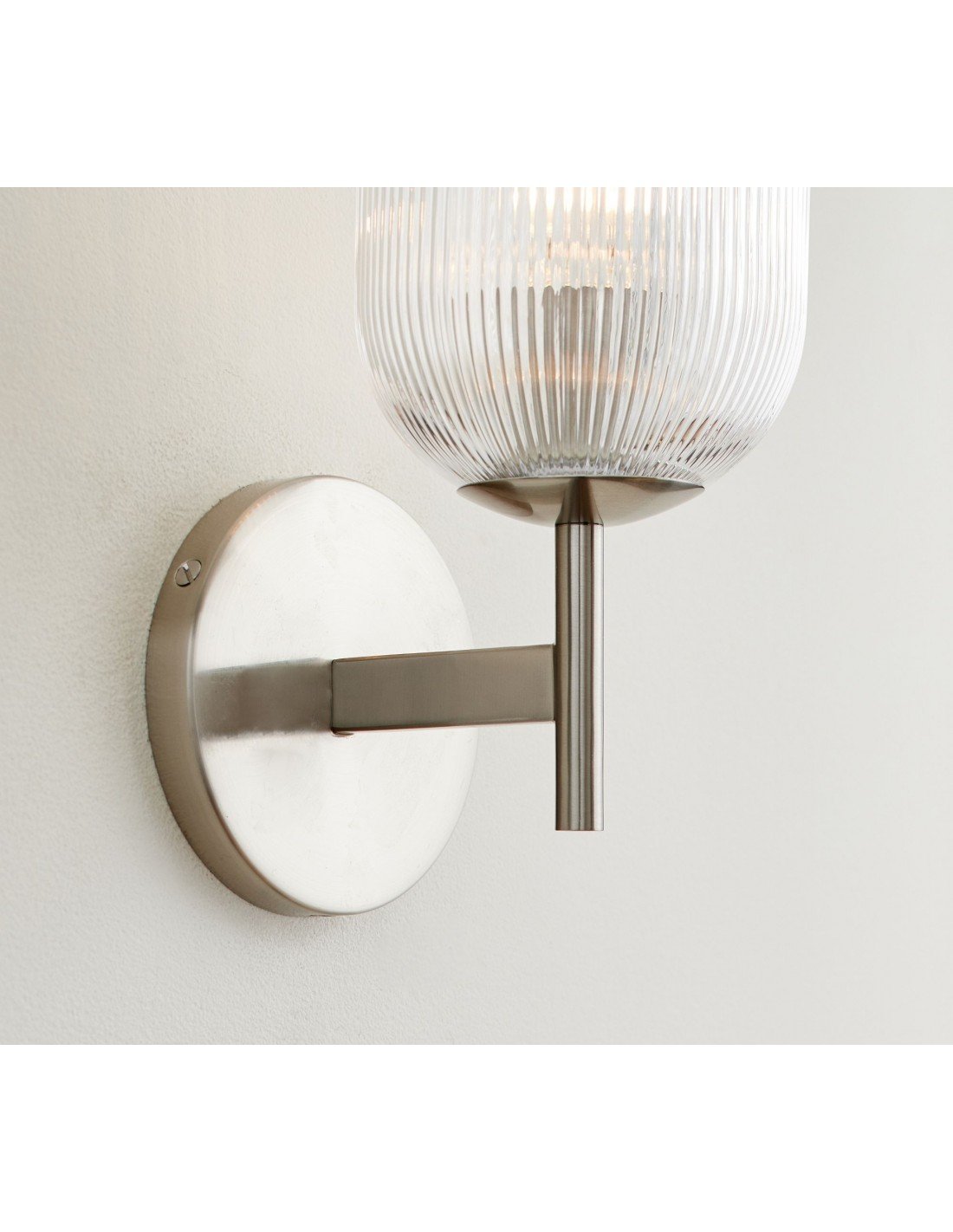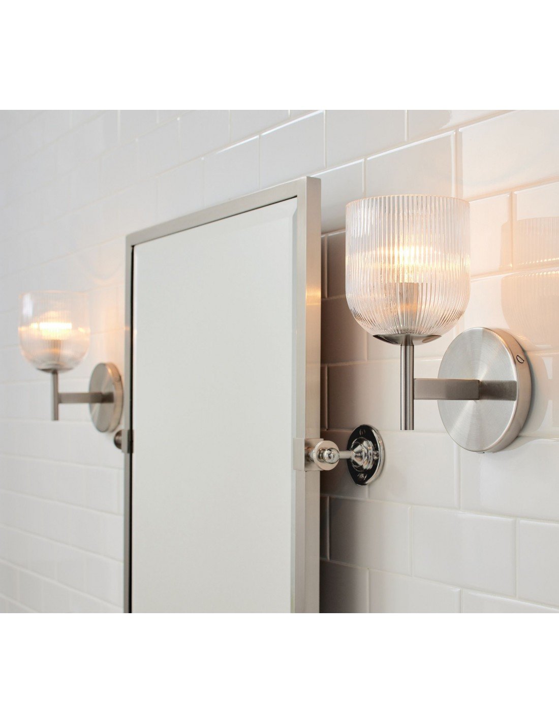 Applique Bravira en verre strié - Applique murale en métal avec abat-jour en verre transparent KL1289
