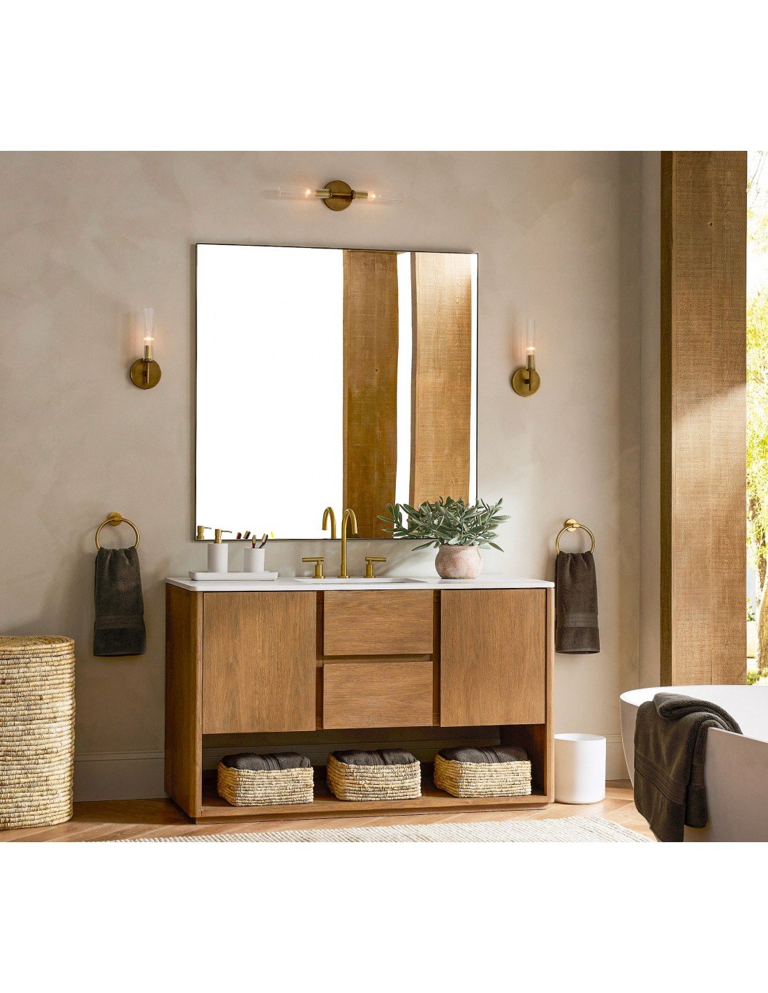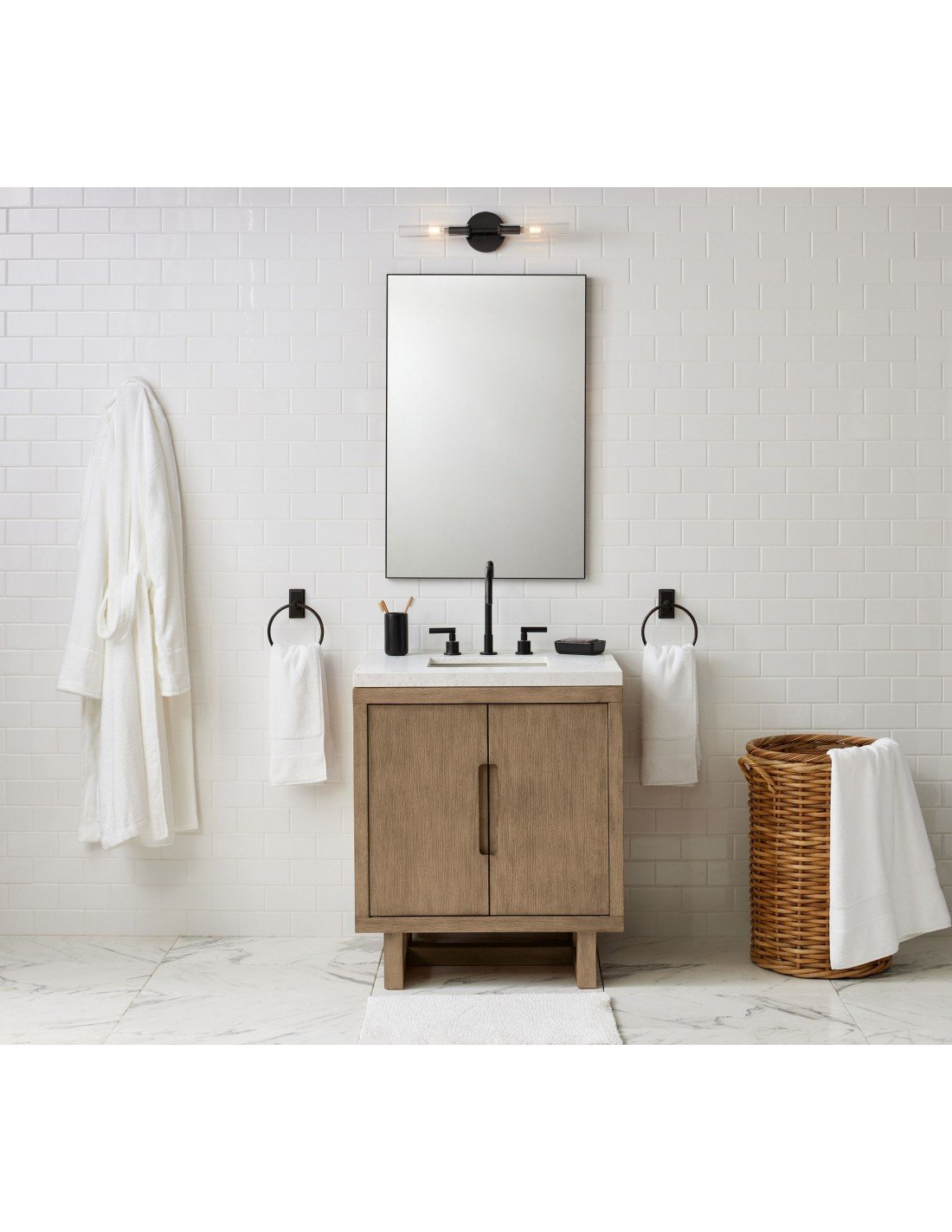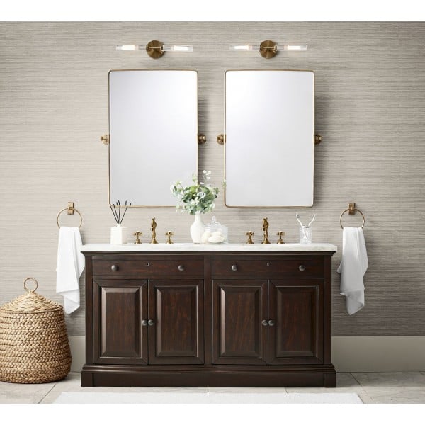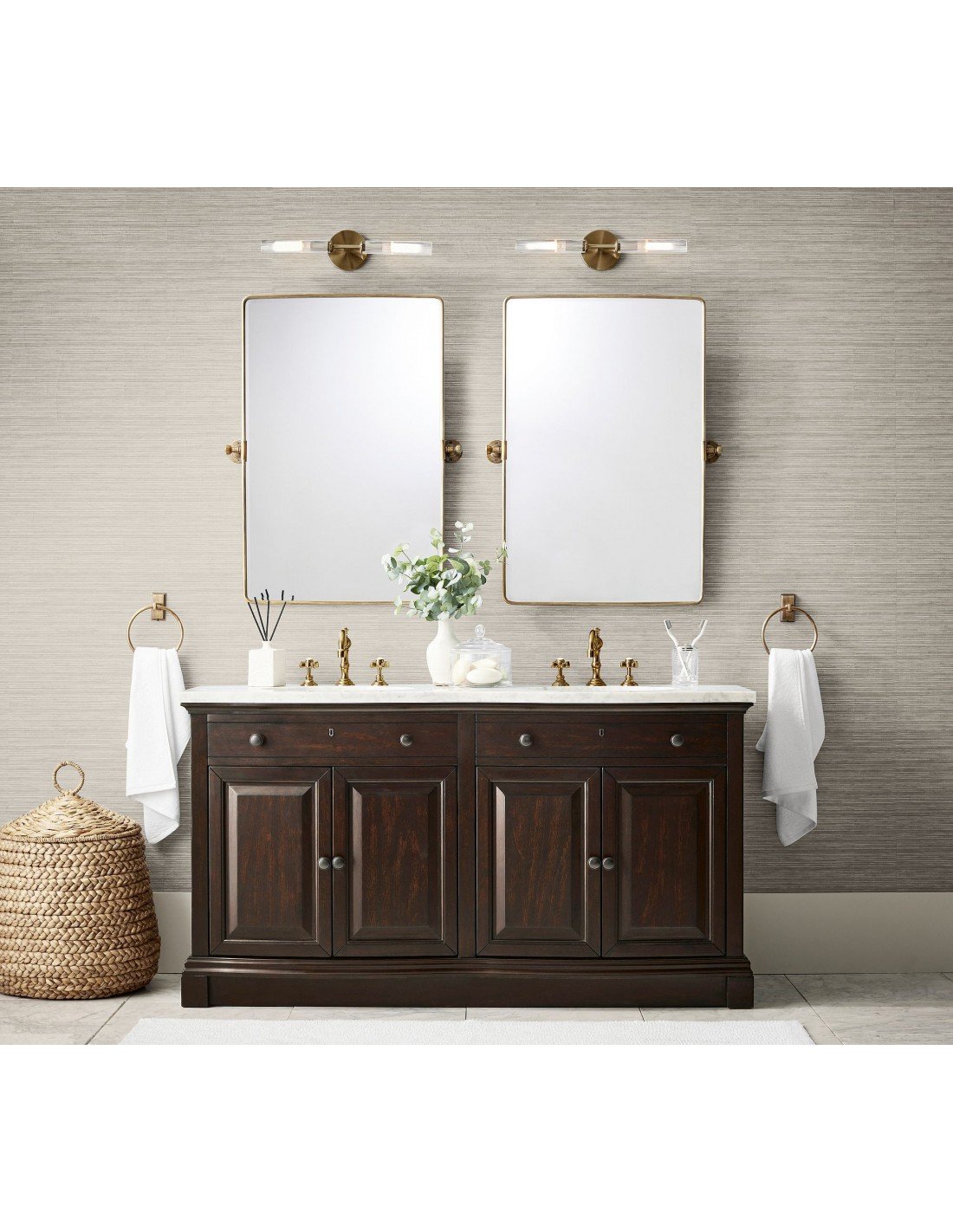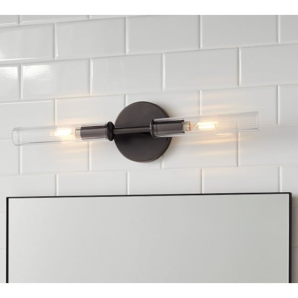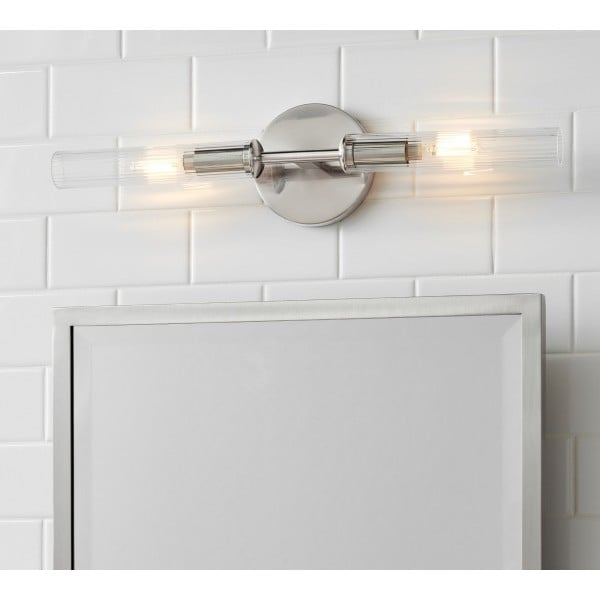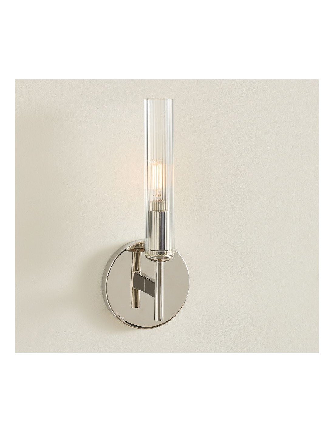 Découvrez l'applique Bravira en verre strié, disponible en tubes simples ou doubles. Fabriquées en fer et disponibles en laiton vieilli, nickel poli, nickel satiné et bronze antique, ces lampes sont dotées d'abat-jour en verre transparent soufflé bouche, parfaits pour les chambres, les couloirs ou les espaces de vie modernes.