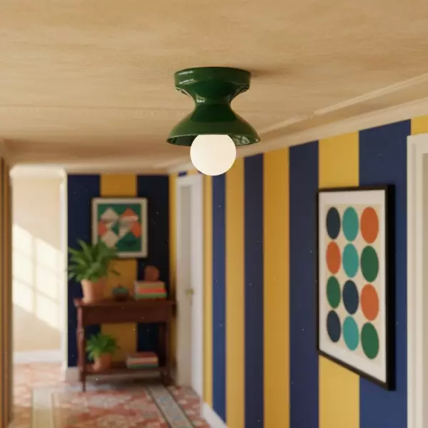 Apportez couleur et modernité à votre intérieur avec le plafonnier en céramique Dravin. Sa silhouette épurée et élégante, ainsi que ses finitions éclatantes, créent un point focal saisissant tout en s'harmonisant parfaitement avec les intérieurs modernes du milieu du siècle et contemporains.