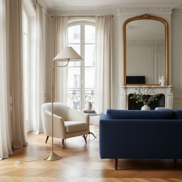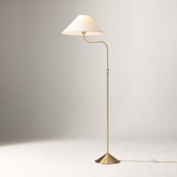 Le lampadaire élégant en lin arbore une silhouette féminine en métal bronze champagne. Réglable en hauteur et doté d'abat-jour en lin plissé ou naturel, il est idéal pour un salon, une chambre ou un couloir, apportant une touche d'élégance moderne à tout espace.