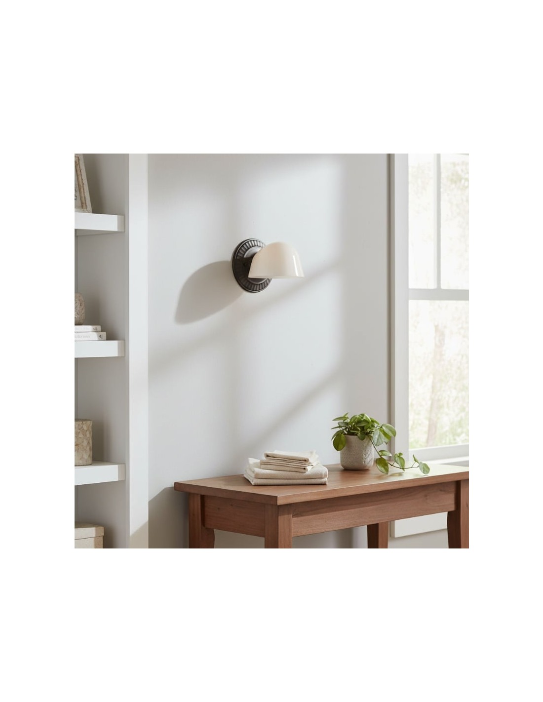 Inspirée des formes classiques de l'Art déco, l'applique Fiesta présente un pied sculptural en céramique ou en bois, associé à un abat-jour en verre lisse qui diffuse une lumière douce et chaleureuse. Son design polyvalent s'intègre parfaitement aux salles de bains, chambres, couloirs et à tout espace nécessitant un éclairage mural élégant et intemporel.