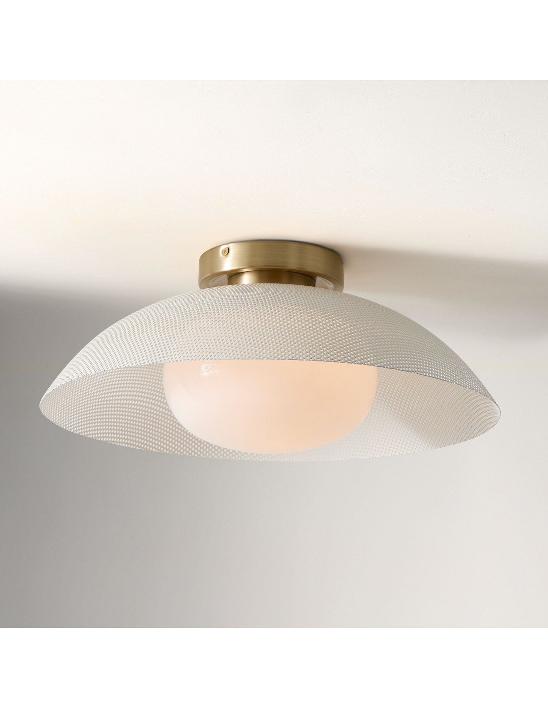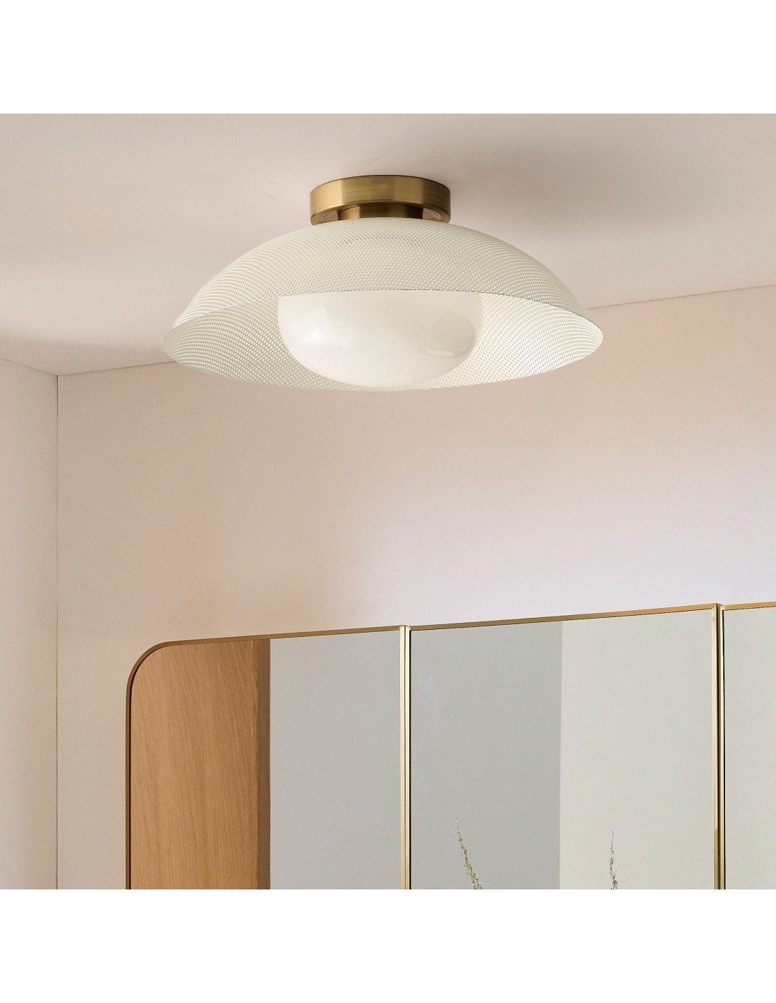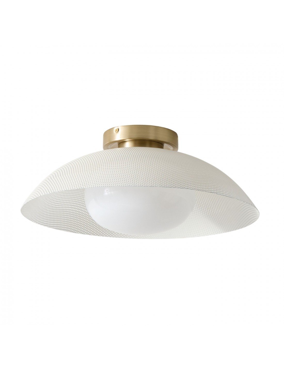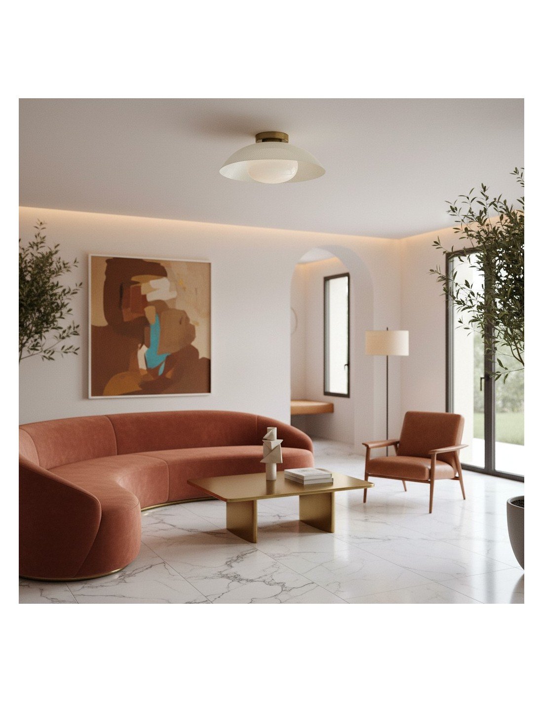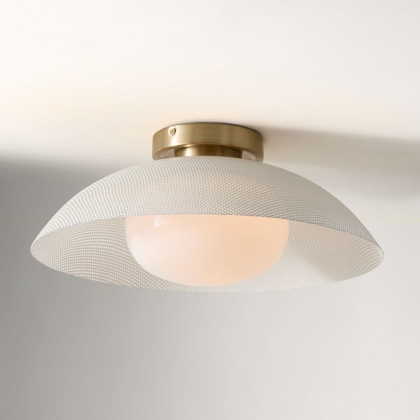 L'abat-jour rond classique de ce plafonnier crée un effet saisissant sous la lumière, idéal pour les salles de bains, les salons ou les couloirs. Cette silhouette revisite un design traditionnel avec modernité et indémodable. Une pièce remarquable qui redéfinira l'ambiance de votre espace.
