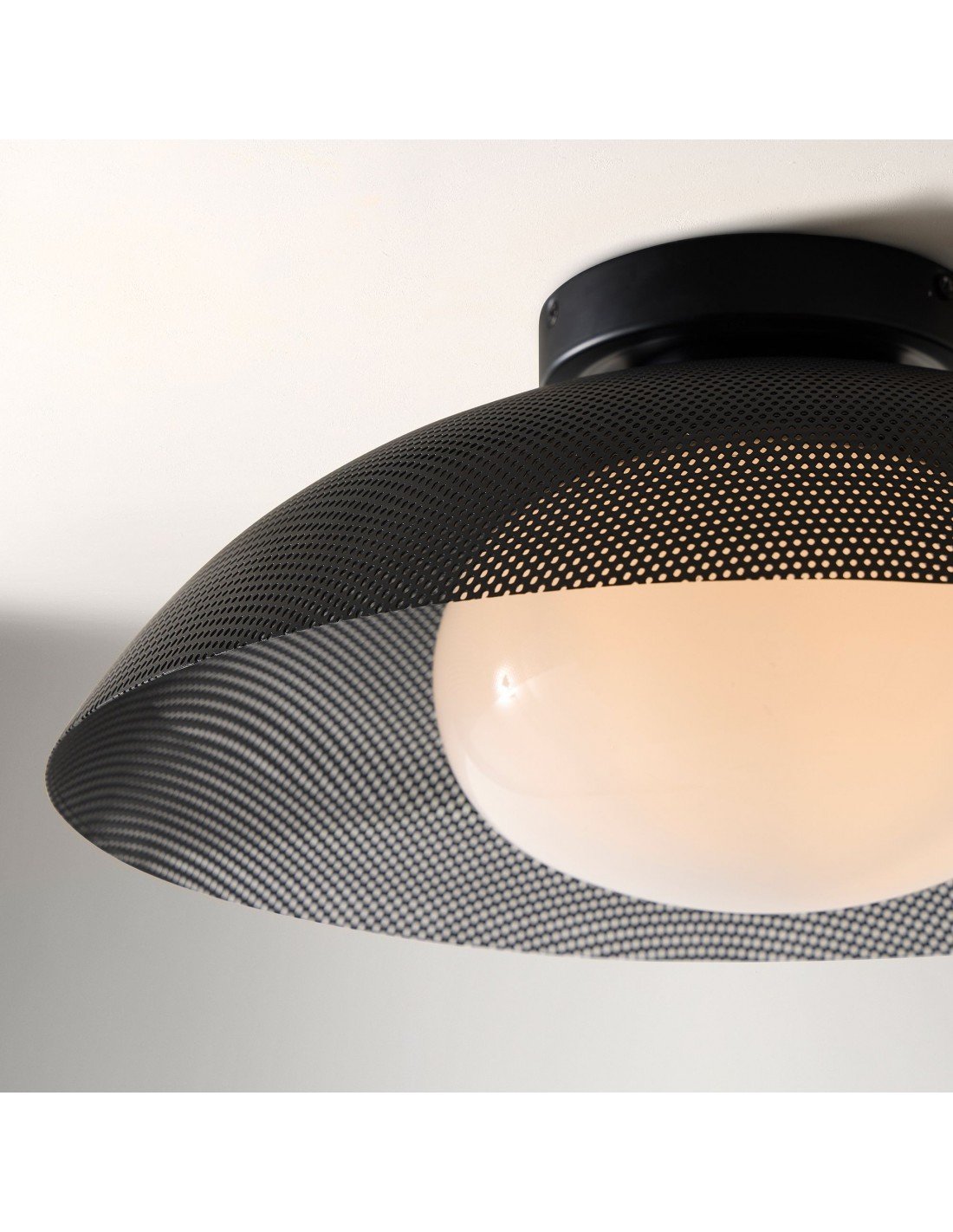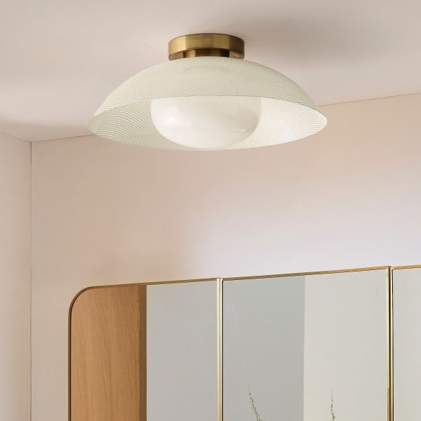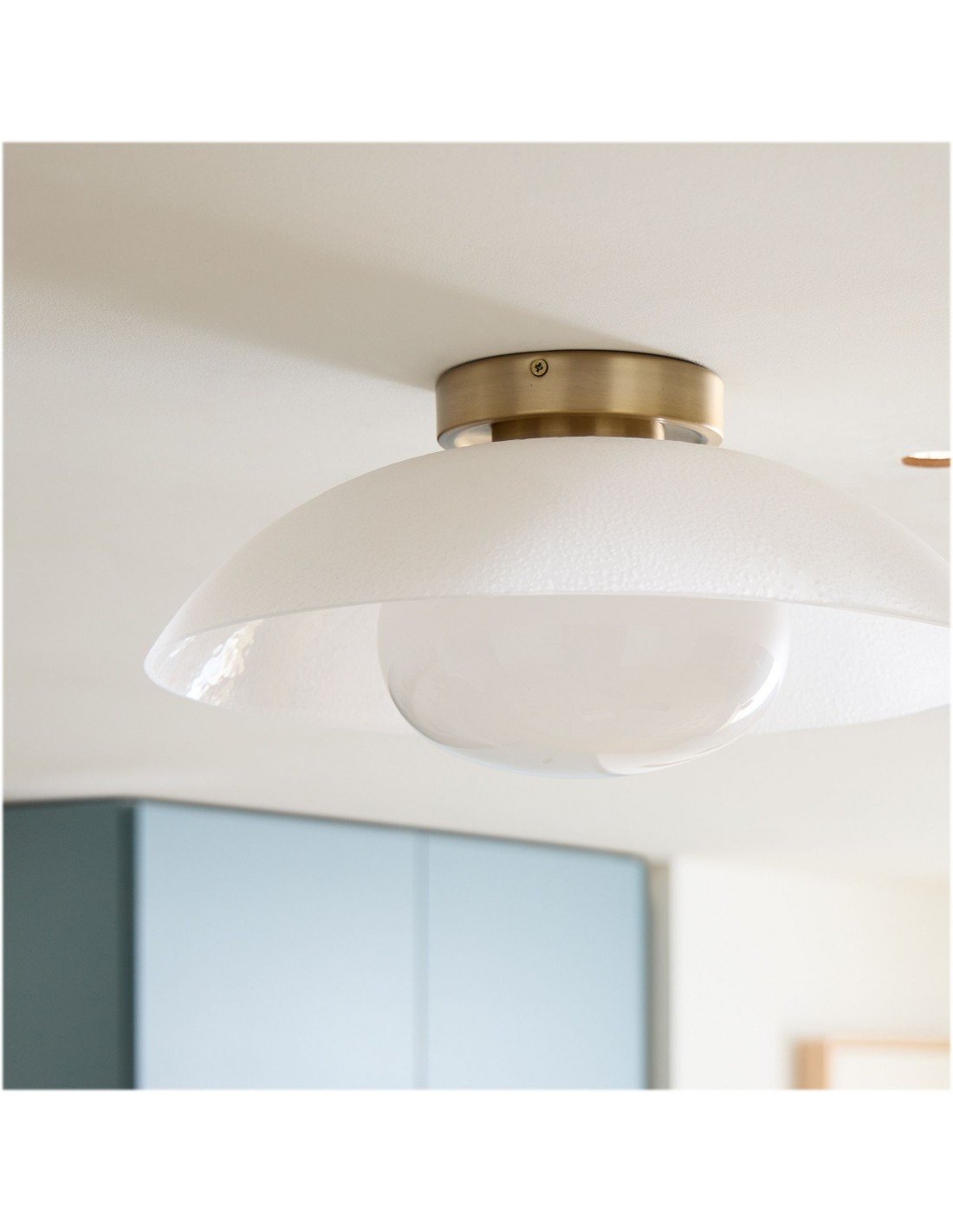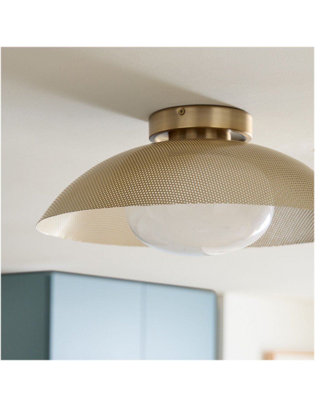 L'abat-jour rond classique de ce plafonnier crée un effet saisissant sous la lumière, idéal pour les salles de bains, les salons ou les couloirs. Cette silhouette revisite un design traditionnel avec modernité et indémodable. Une pièce remarquable qui redéfinira l'ambiance de votre espace.