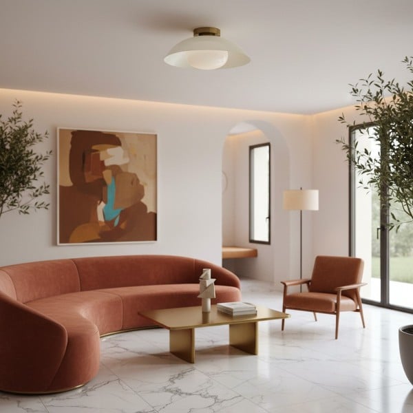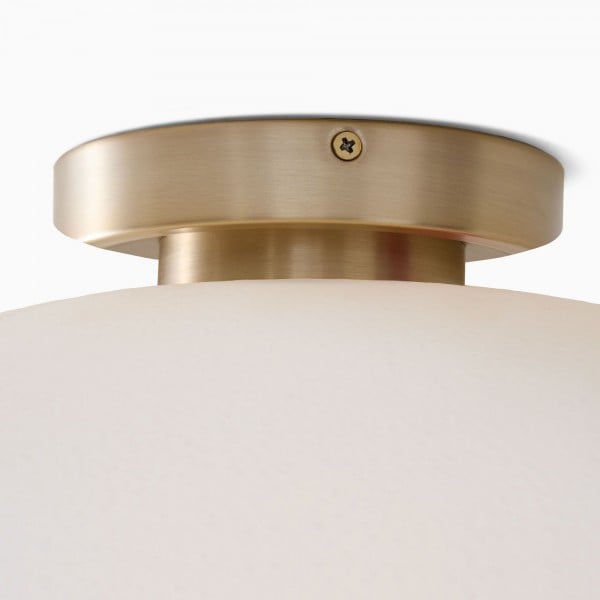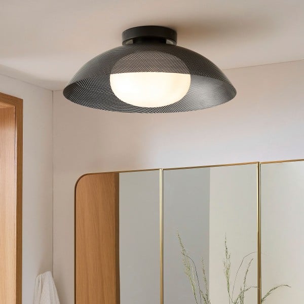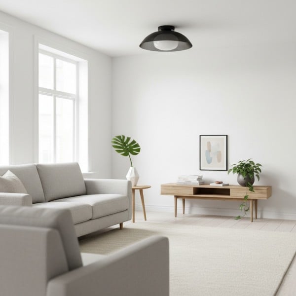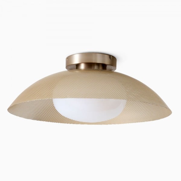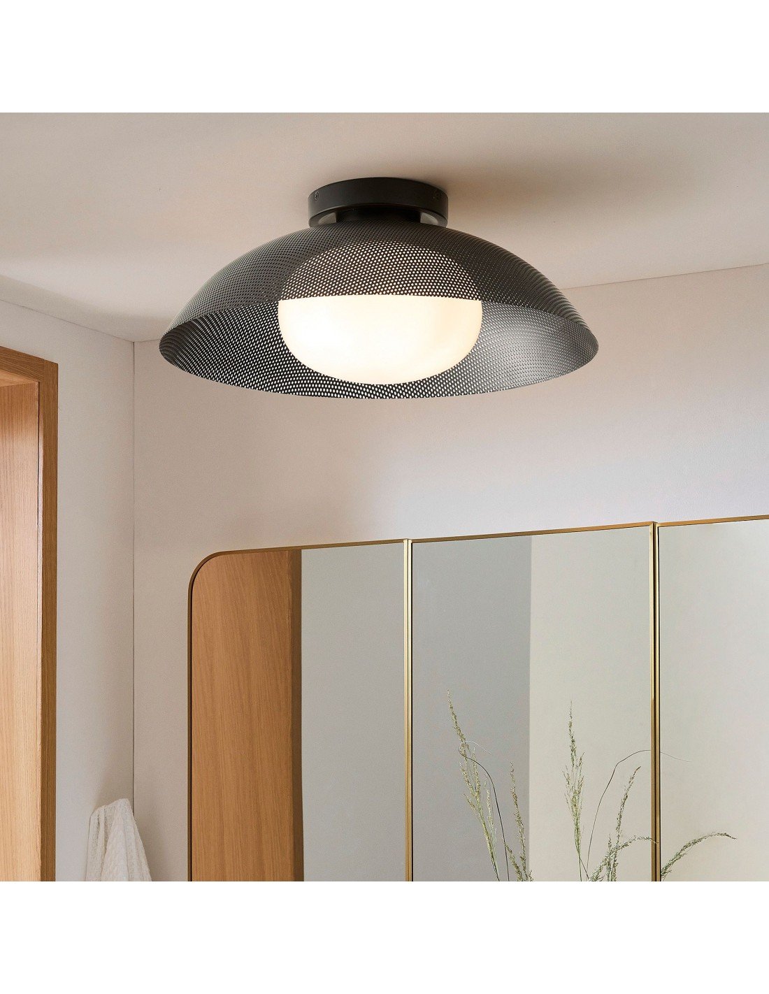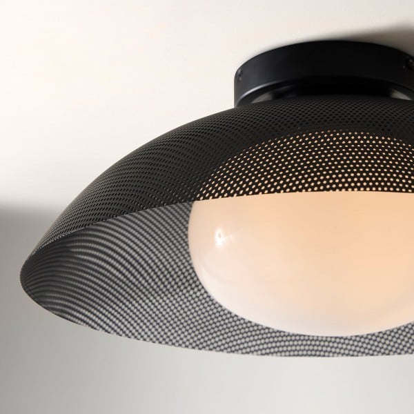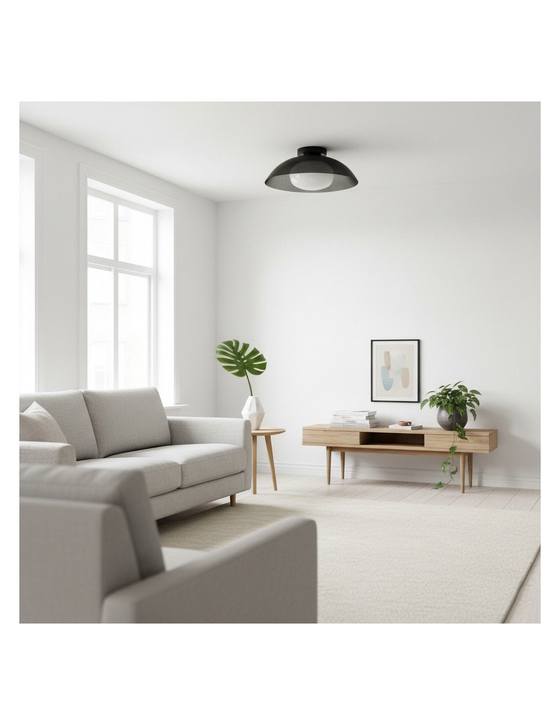 L'abat-jour rond classique de ce plafonnier crée un effet saisissant sous la lumière, idéal pour les salles de bains, les salons ou les couloirs. Cette silhouette revisite un design traditionnel avec modernité et indémodable. Une pièce remarquable qui redéfinira l'ambiance de votre espace.