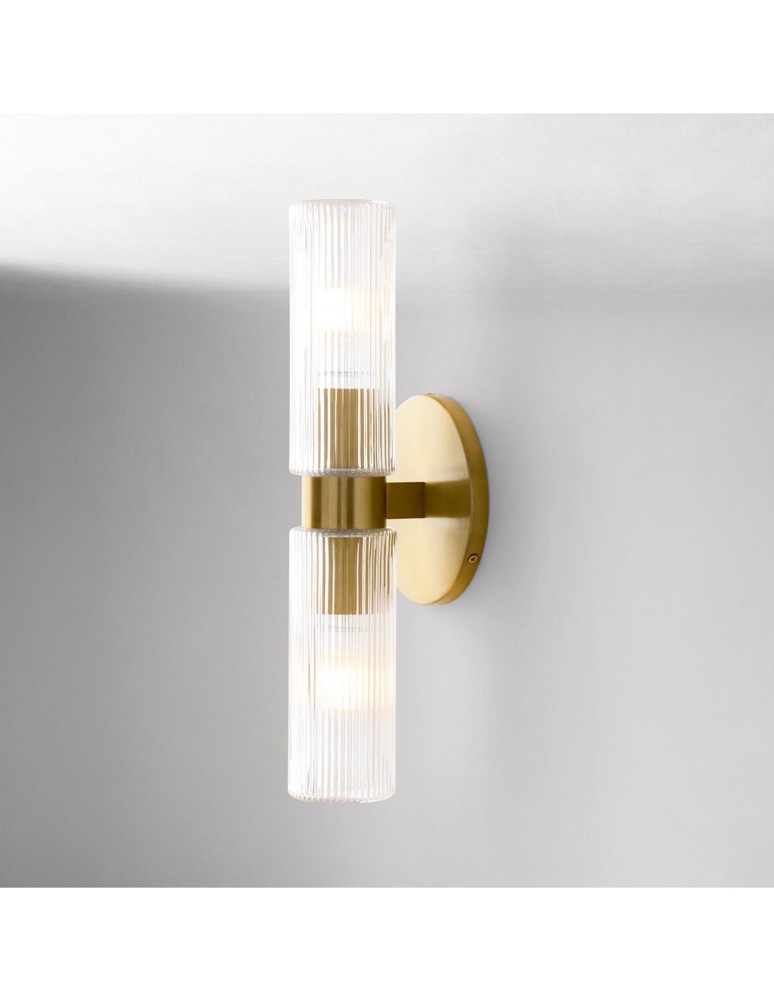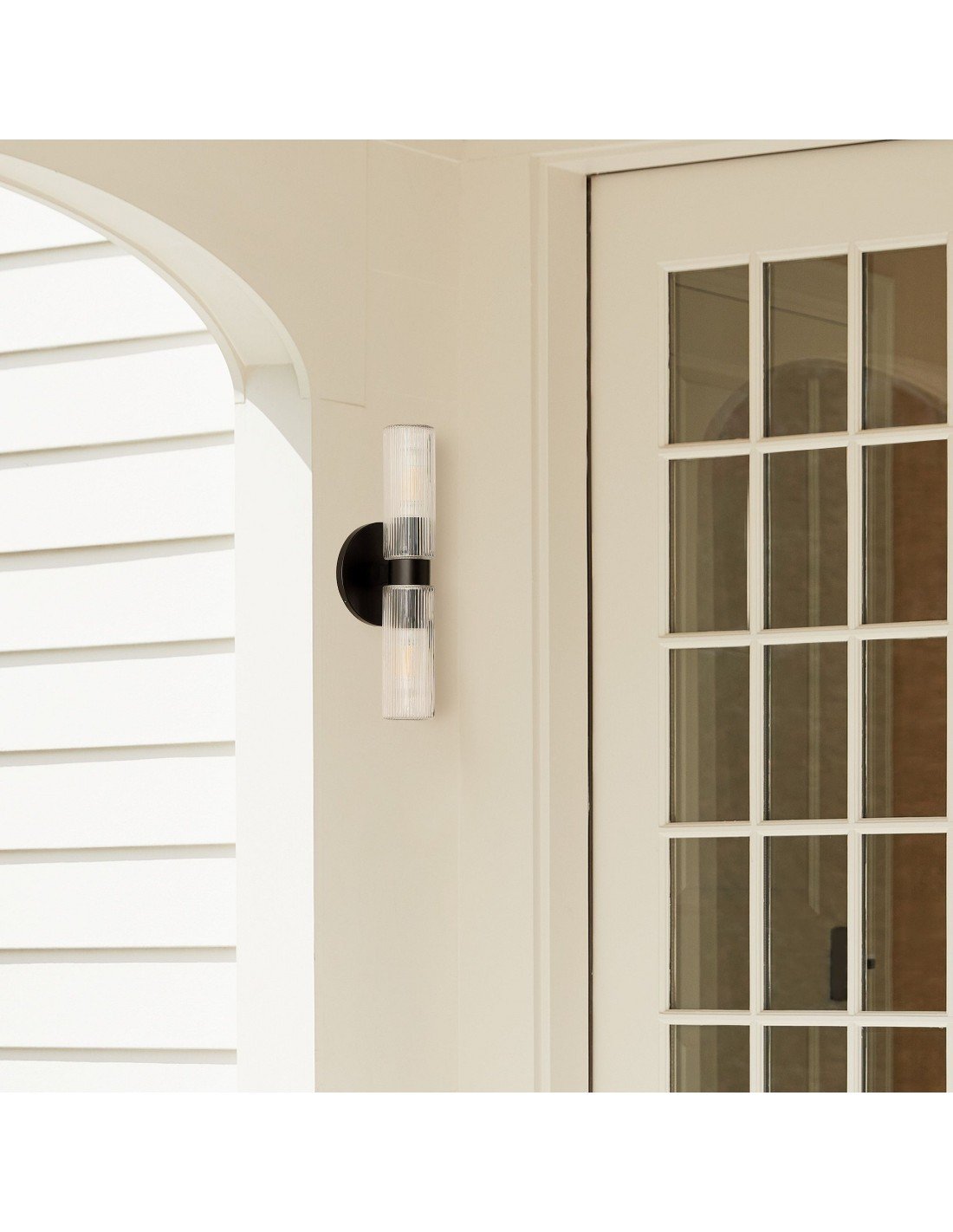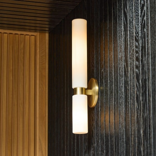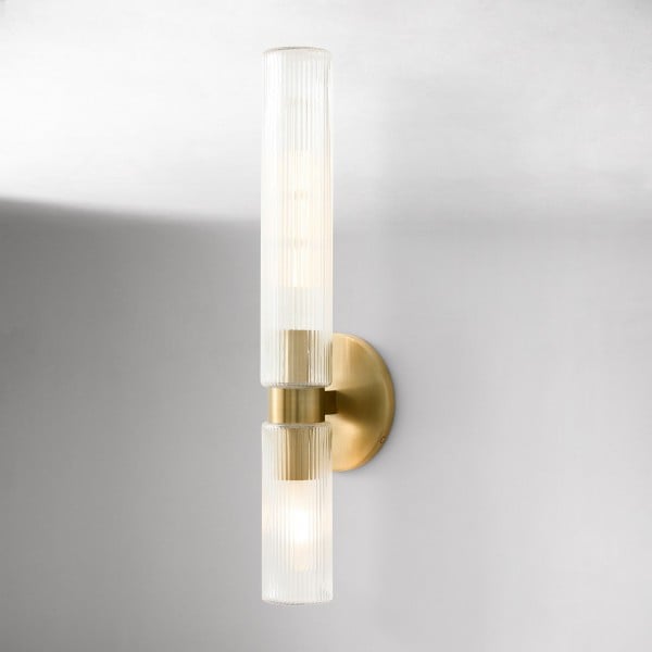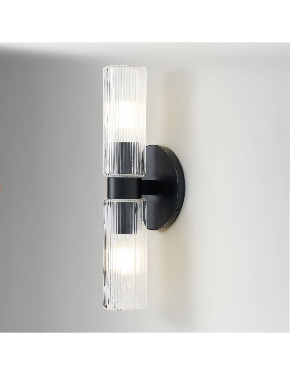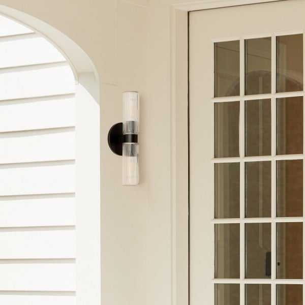 Applique double courte en verre cannelé Rivora - Applique murale intérieure et extérieure Elegance KL1298