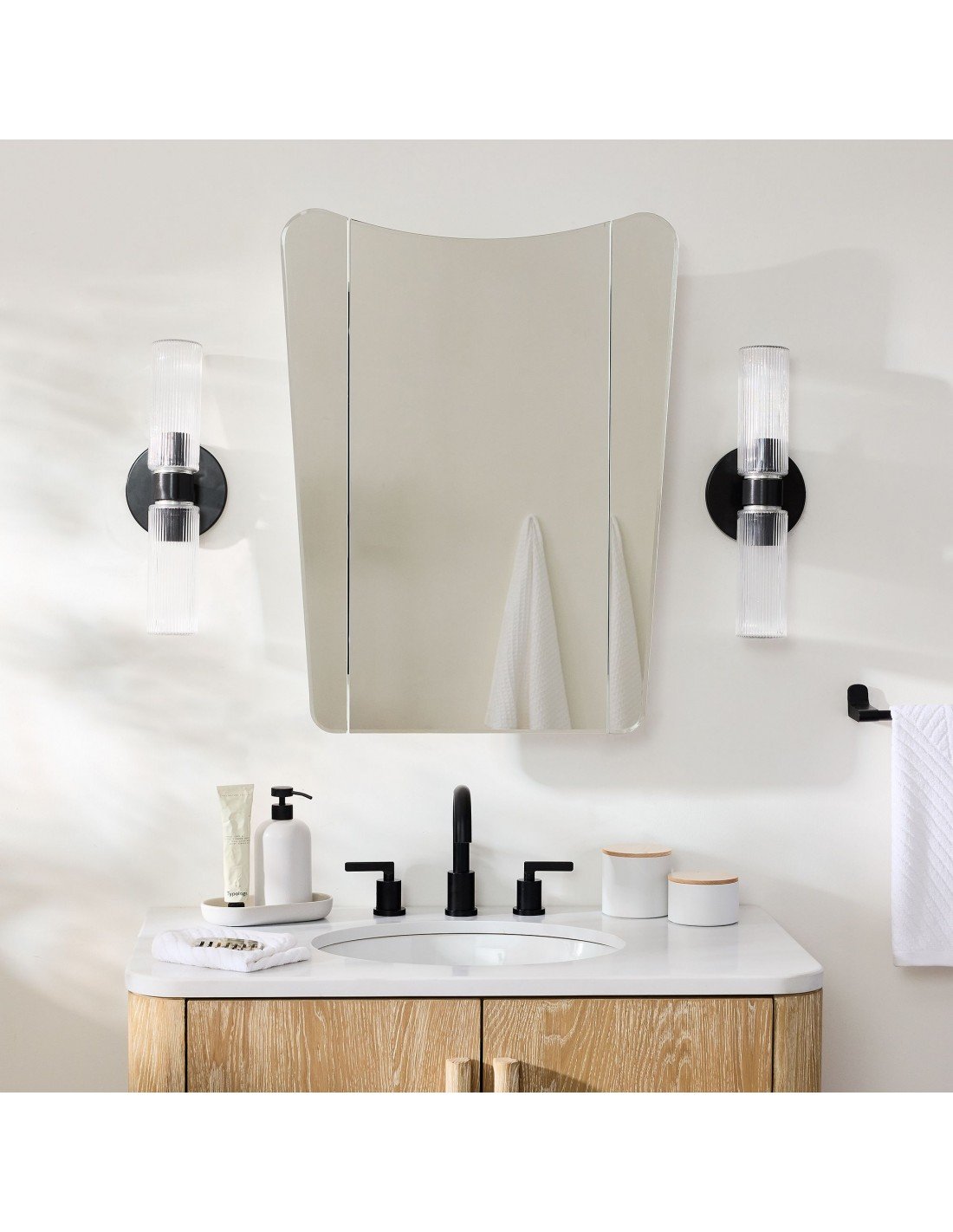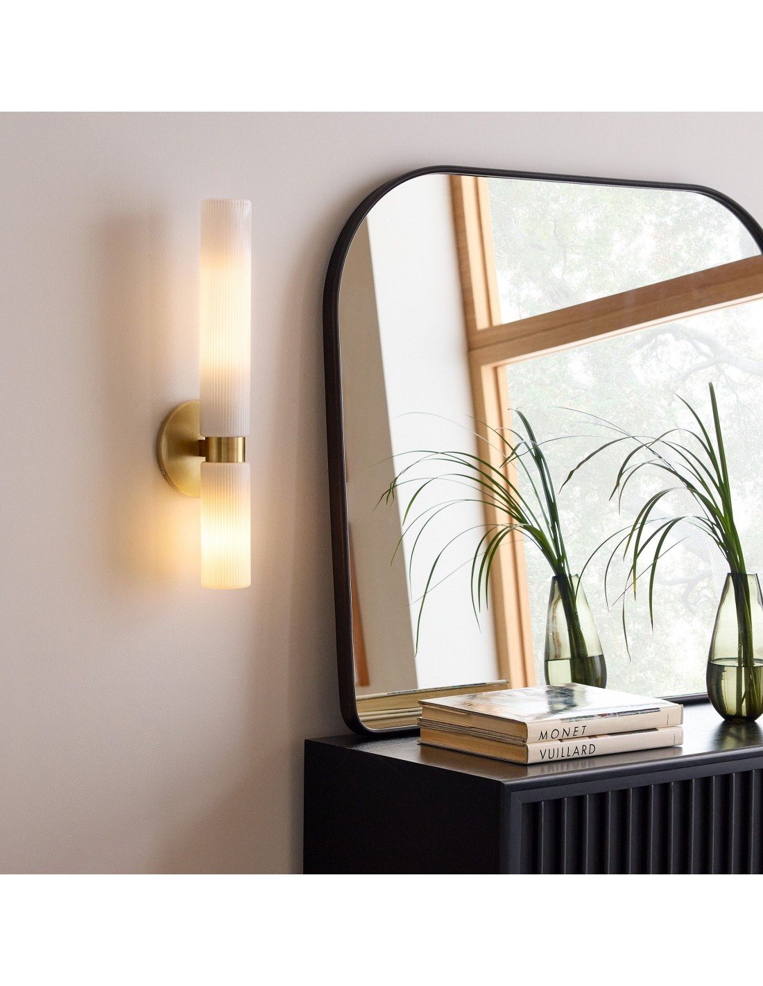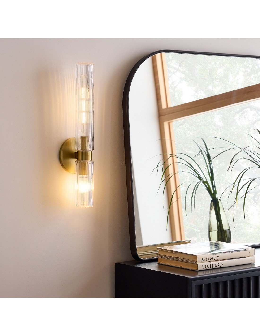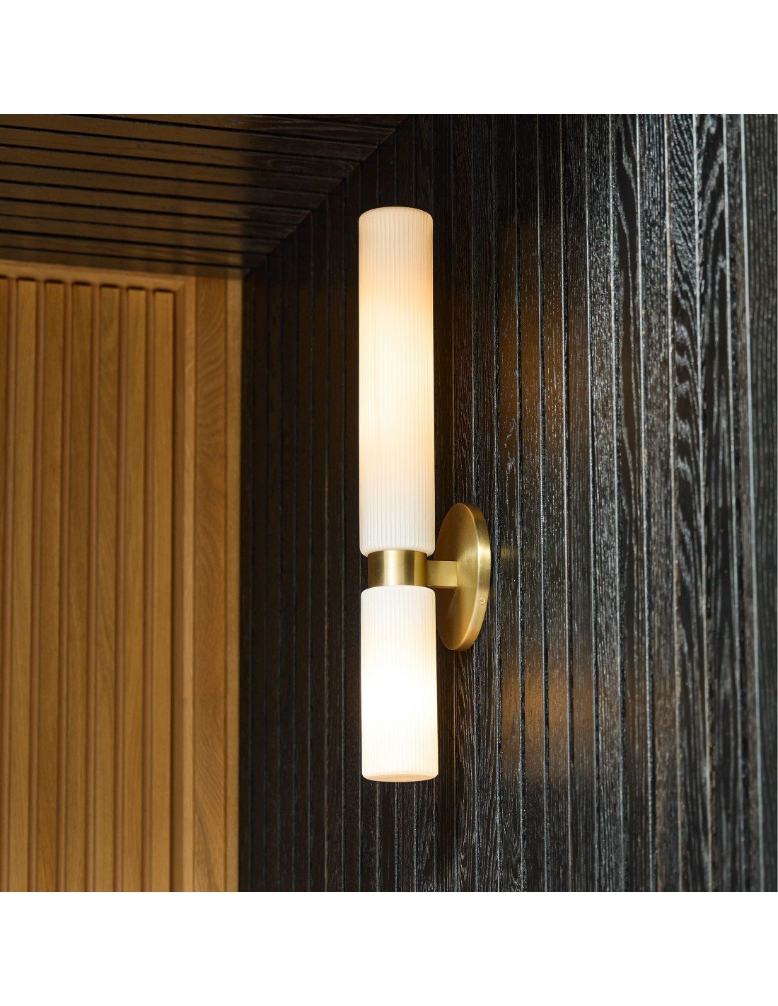 Applique double courte en verre cannelé Rivora - Applique murale intérieure et extérieure Elegance KL1298