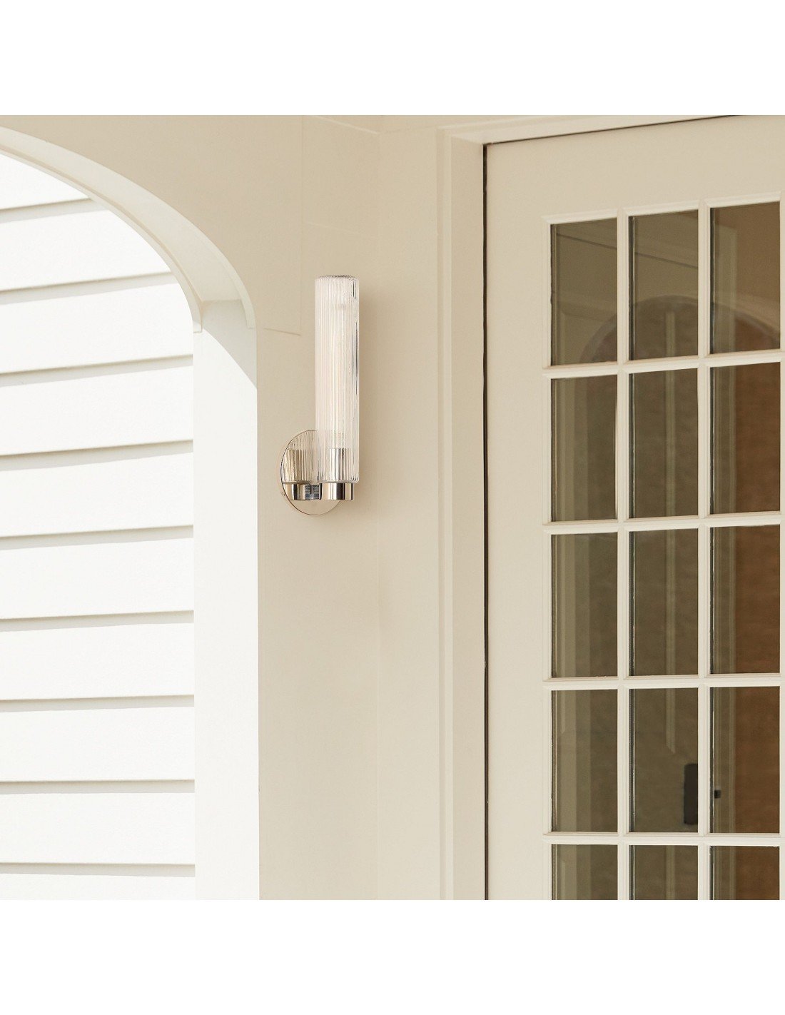 Cette applique d'intérieur et d'extérieur en verre cannelé apporte un style intemporel et une lumière douce à tout espace. Idéale comme applique murale pour une chambre, un couloir ou une terrasse, son design moderne apporte chaleur et élégance à votre intérieur. Une applique polyvalente pour l'intérieur comme pour l'extérieur.