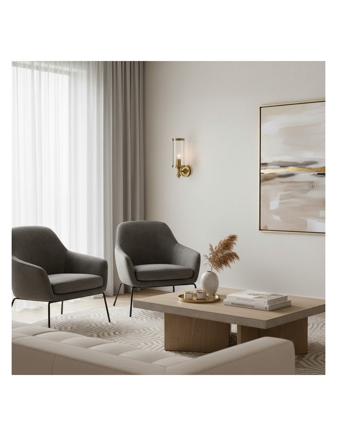 Illuminez votre espace avec l'applique cylindrique en verre, fabriquée en fer avec une riche finition laiton vintage. Son abat-jour en verre transparent lui confère un style épuré et moderne, idéal pour les chambres, les couloirs ou les murs d'accent. Une applique intemporelle qui apporte caractère et sophistication à tout intérieur.