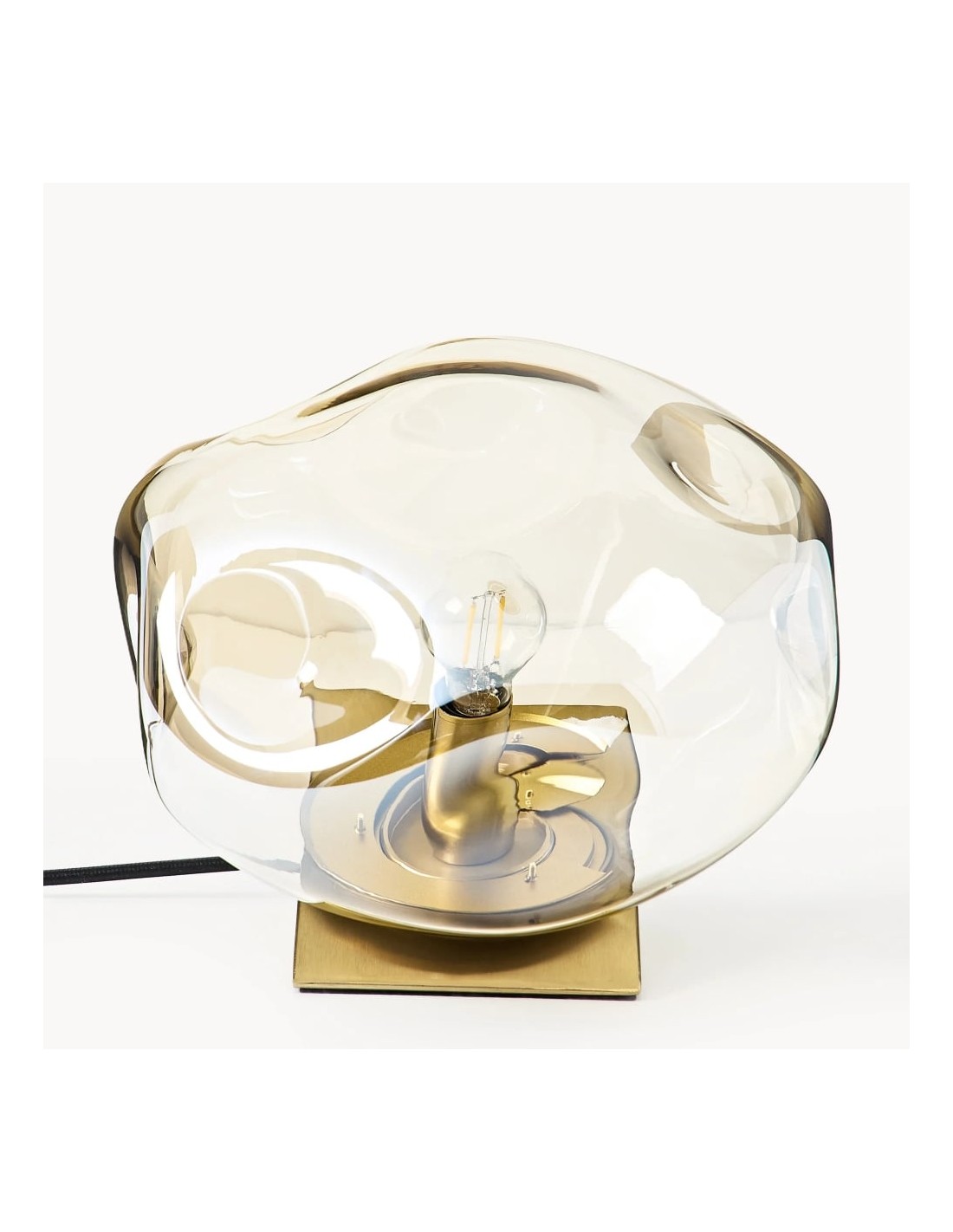La lampe de table Glissora en verre présente un corps légèrement incurvé qui diffuse une lumière douce et tamisée. Fabriquée en verre de haute qualité, sa forme lisse et arrondie apporte une touche d'élégance sculpturale à tout espace. Cette lampe décorative compacte est idéale pour les coins cosy, y diffusant une lumière chaleureuse et accueillante avec un style raffiné.