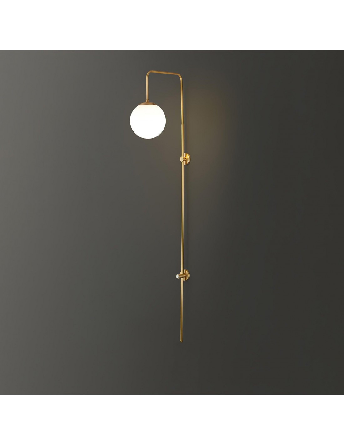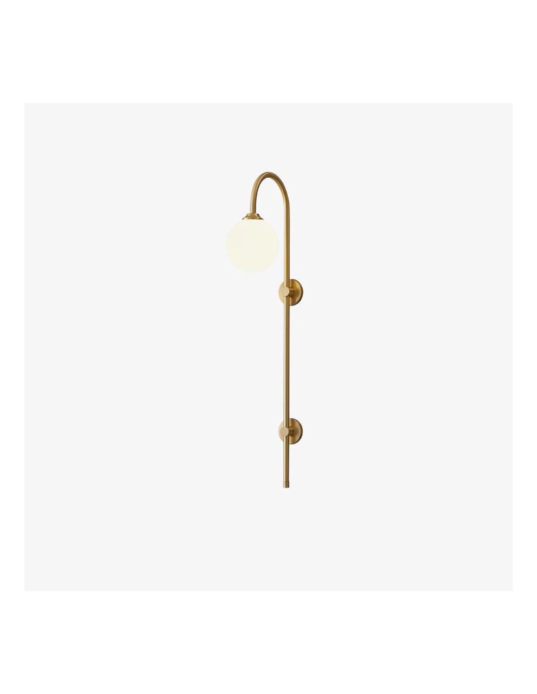 Il n'y a pas de variation d'intensité de cette lumière. Le produit fait sentir sa présence. Une longue tige dorée douce s'étend pour révéler un globe en verre blanc, le parfait pendant brillant aux accents en laiton vieilli. Mince mais marquant, nous imaginons ajouter du drame à une scène de salle à manger.