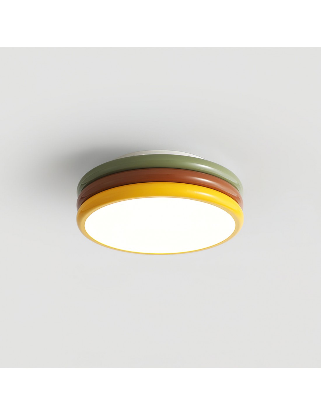 Inspiré des couches classiques d'un hamburger, ce plafonnier combine des métaux de qualité dans des tons de vert, de jaune moutarde et de marron. Ce design à la fois ludique et sophistiqué ajoute une touche de charme culinaire à n'importe quelle pièce. La superposition unique reflète non seulement une esthétique légère, mais améliore également la fonctionnalité de la lampe, projetant une lueur chaleureuse et accueillante. Parfait pour l'éclairage de la cuisine ou de tout espace qui bénéficie d'une touche de fantaisie et d'une touche de couleur.