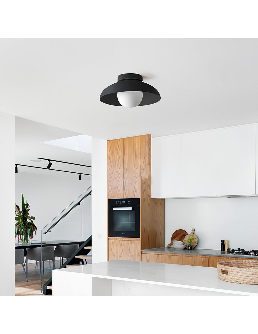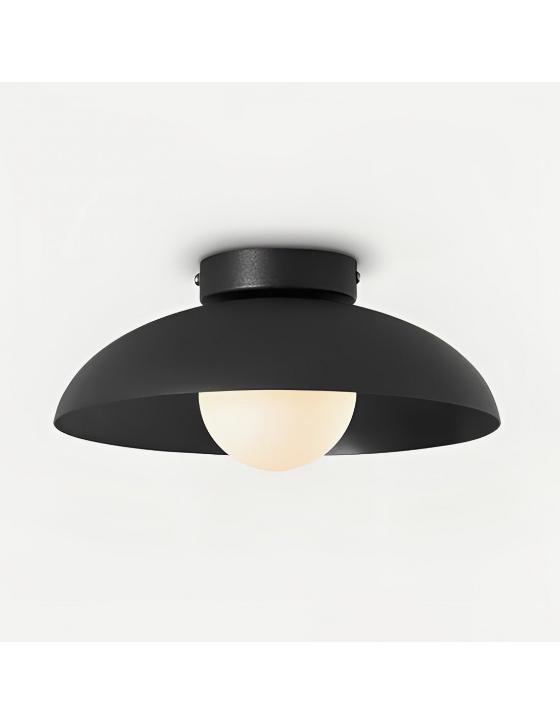 Fabriqué avec un cadre en métal robuste au fini mat subtil, ce luminaire est doté d'un abat-jour en verre gracieusement incurvé qui diffuse la lumière avec une lueur chaleureuse et accueillante. Qu'il s'agisse d'éclairer un coin lecture confortable ou d'ajouter une touche de sophistication à un couloir, il promet d'embellir votre maison avec sa luminescence sereine et son esthétique chic.