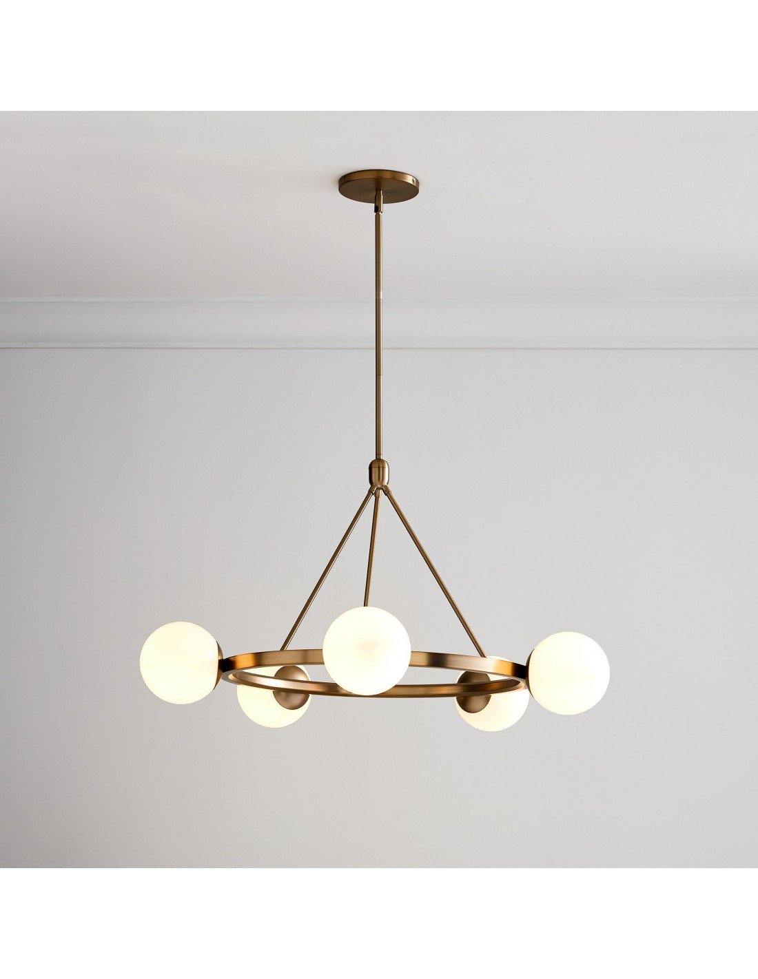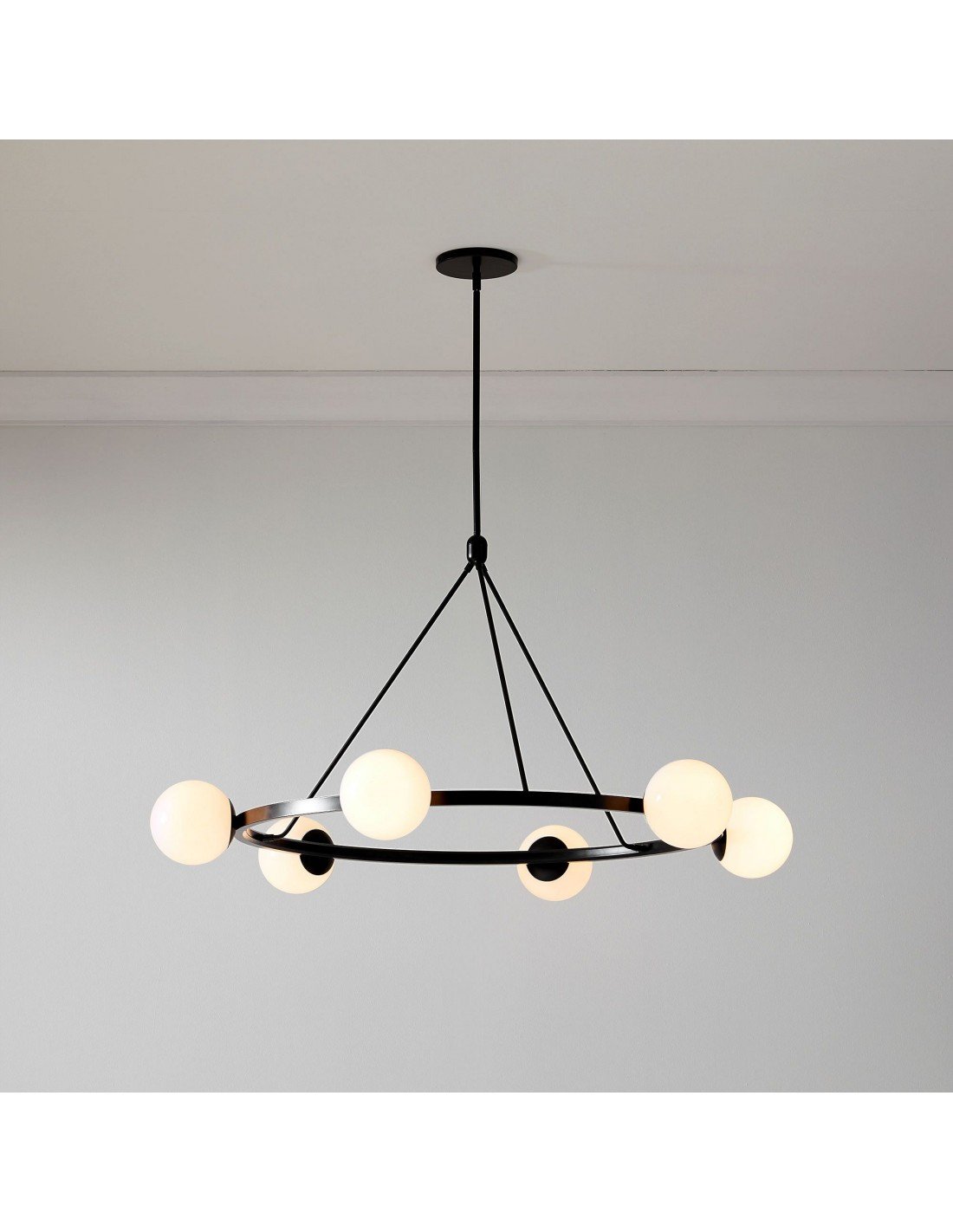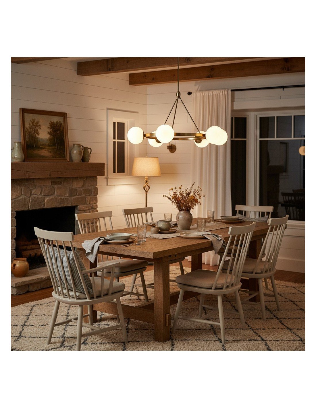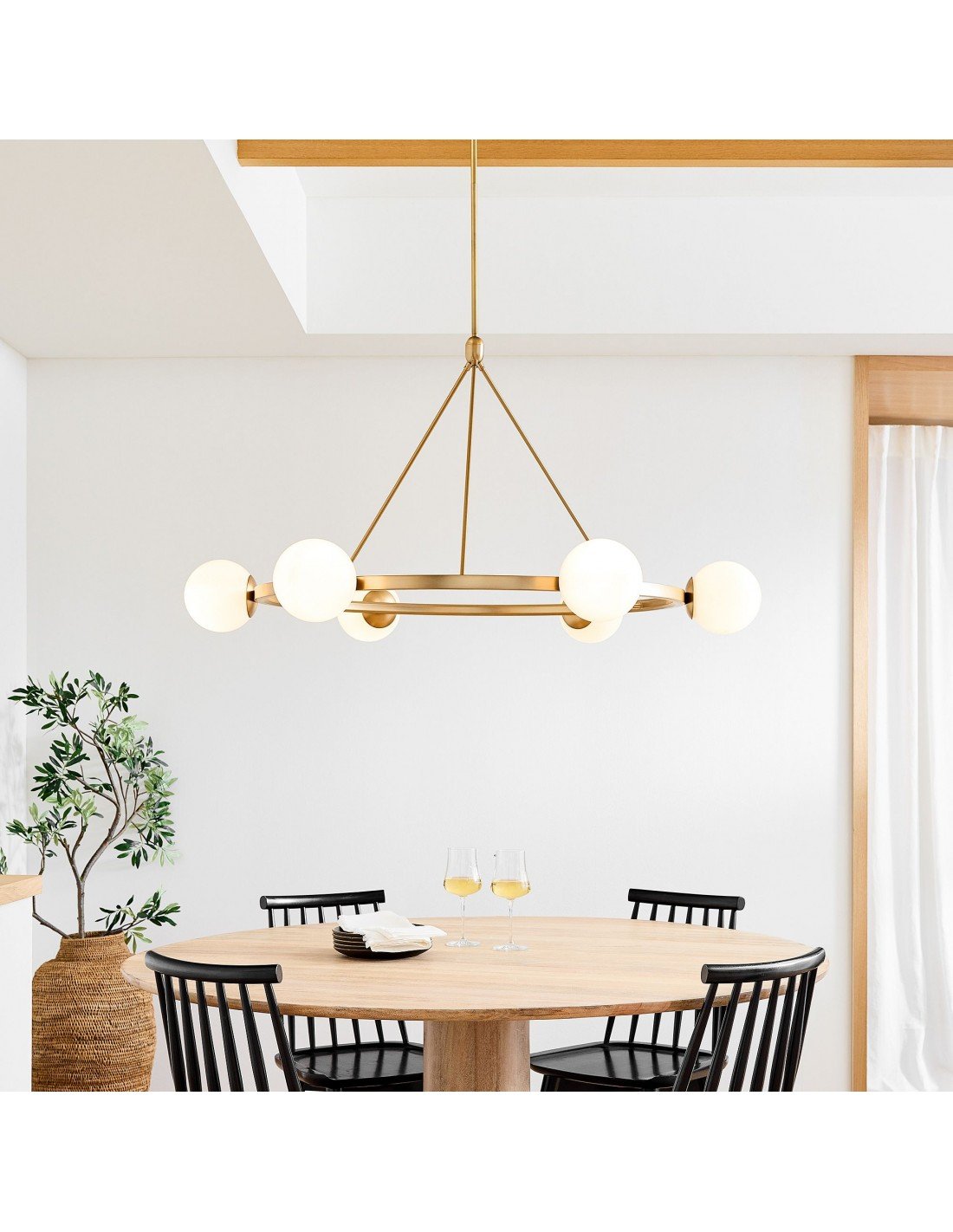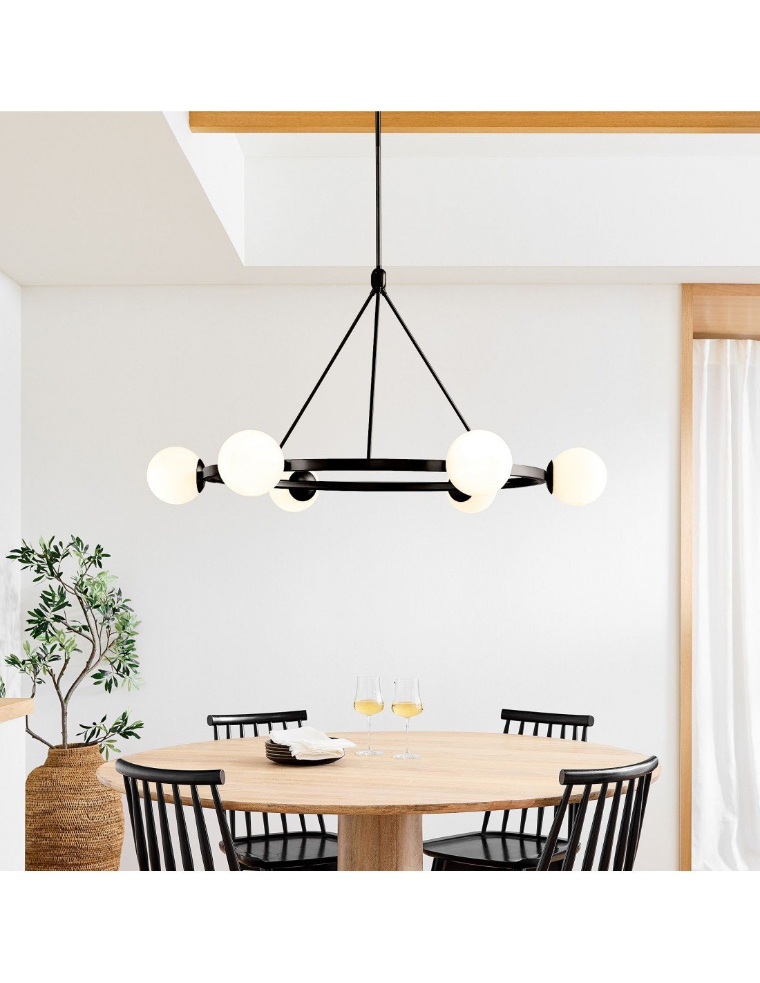 Le lustre rond Hayes revisite le design traditionnel avec modernité, alliant lignes épurées et globes en verre couleur lait diffusant une lumière d'ambiance chaleureuse. Disponible dans une variété de finitions populaires, ce lustre globe sublime harmonieusement cuisines, salles à manger et salons grâce à son esthétique à la fois intemporelle et moderne.