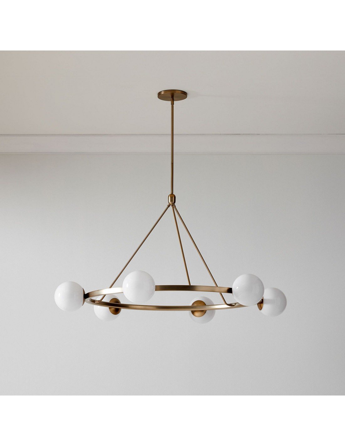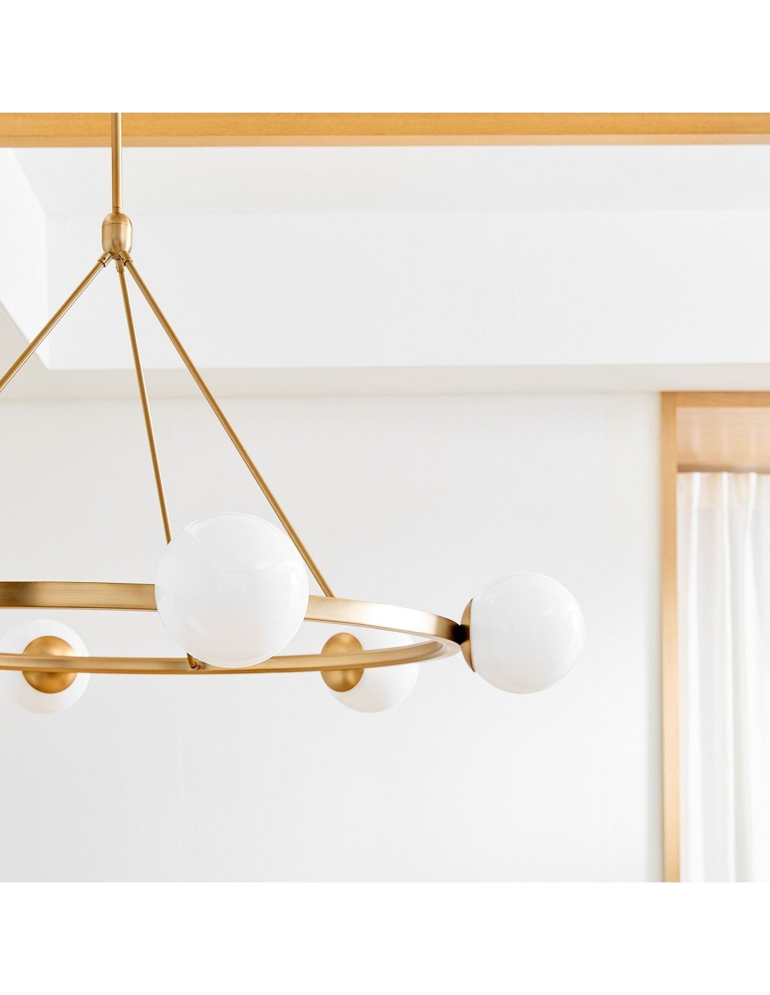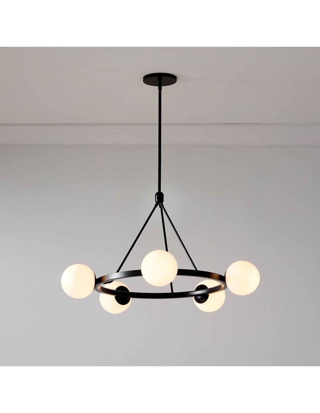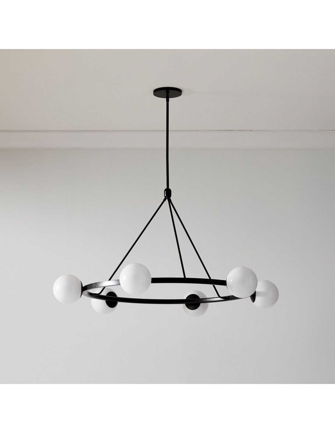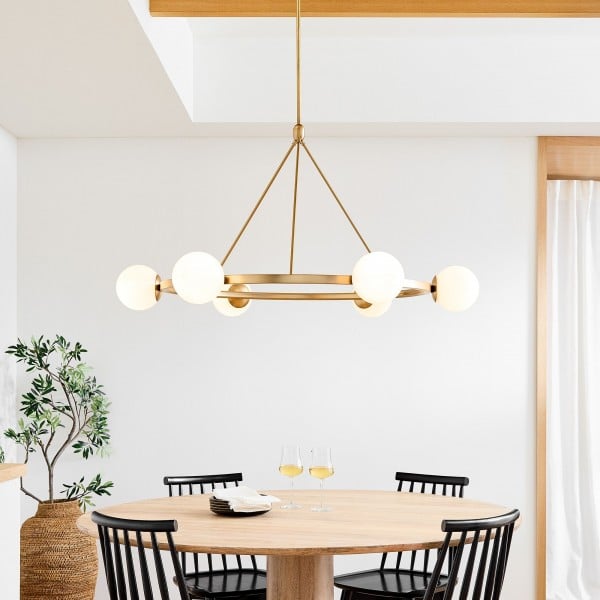 Le lustre rond Hayes revisite le design traditionnel avec modernité, alliant lignes épurées et globes en verre couleur lait diffusant une lumière d'ambiance chaleureuse. Disponible dans une variété de finitions populaires, ce lustre globe sublime harmonieusement cuisines, salles à manger et salons grâce à son esthétique à la fois intemporelle et moderne.