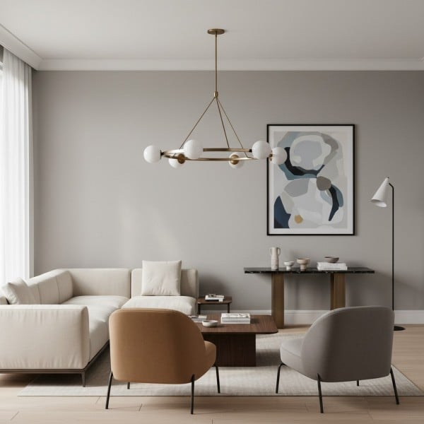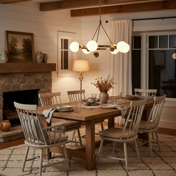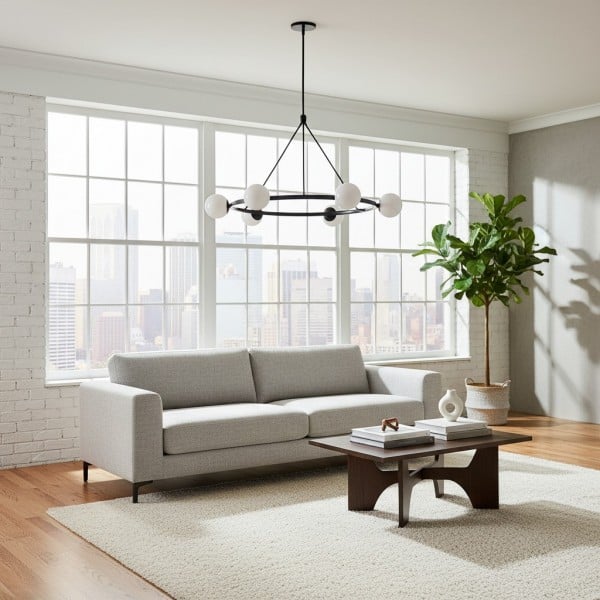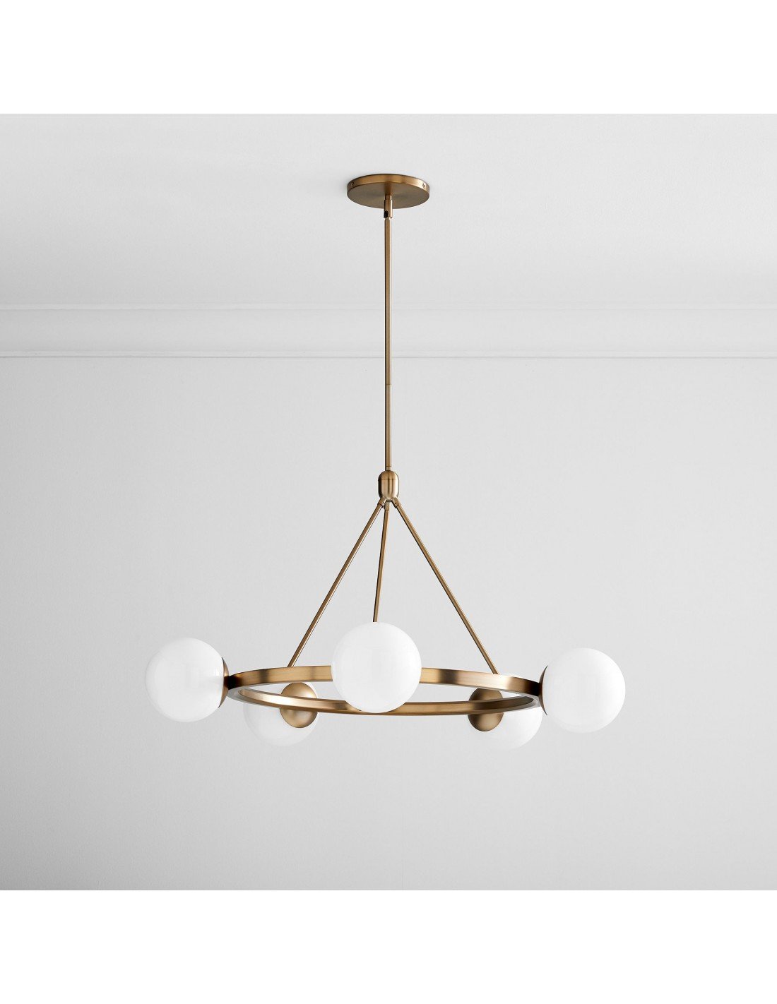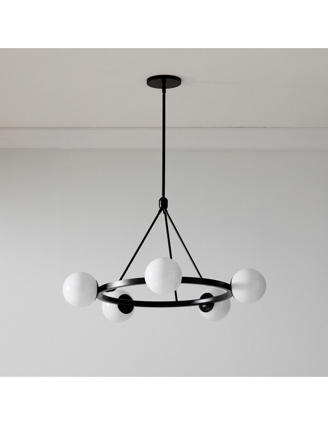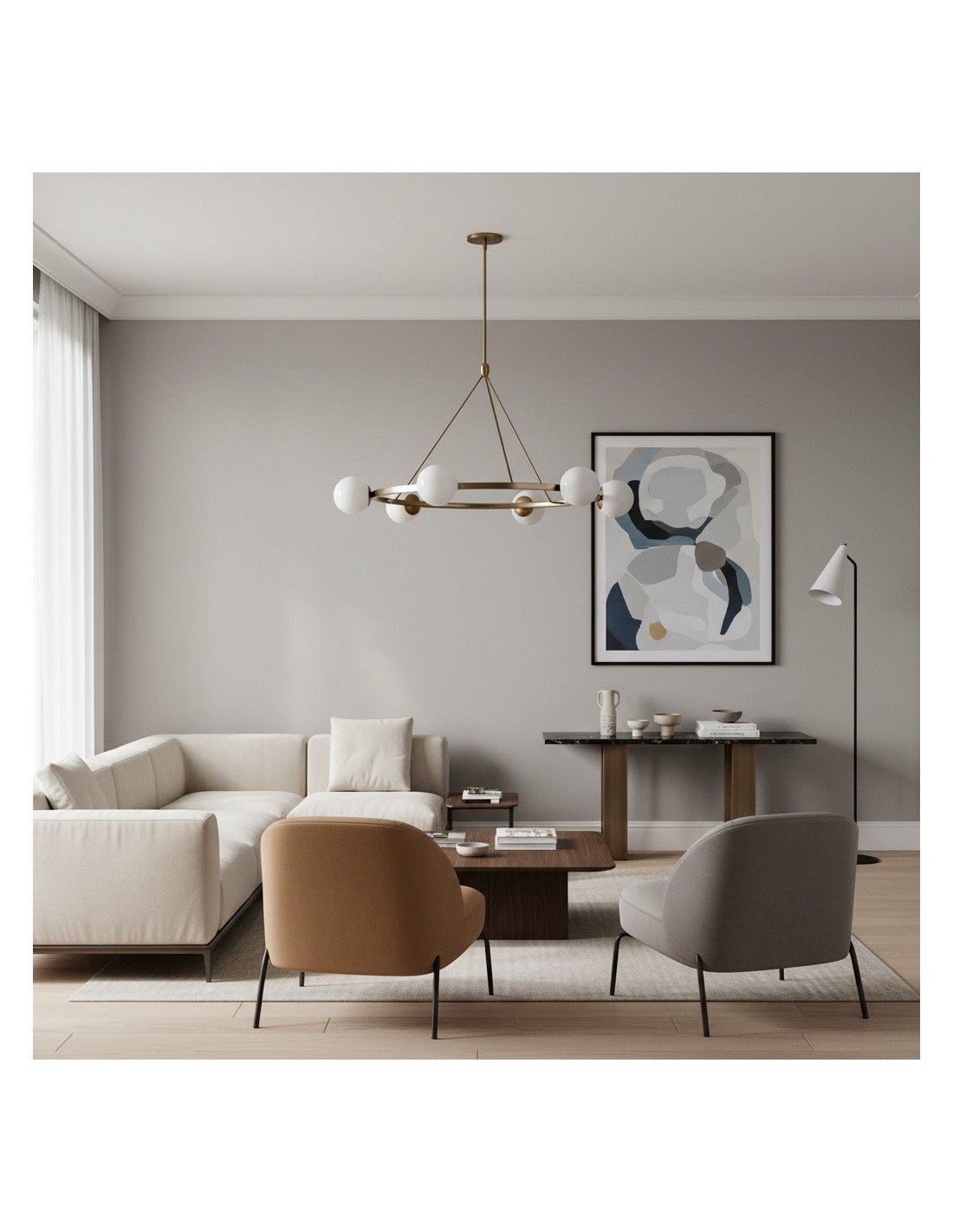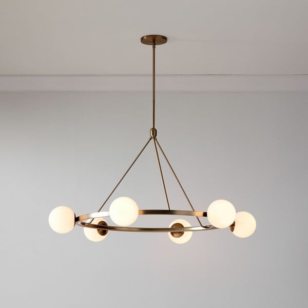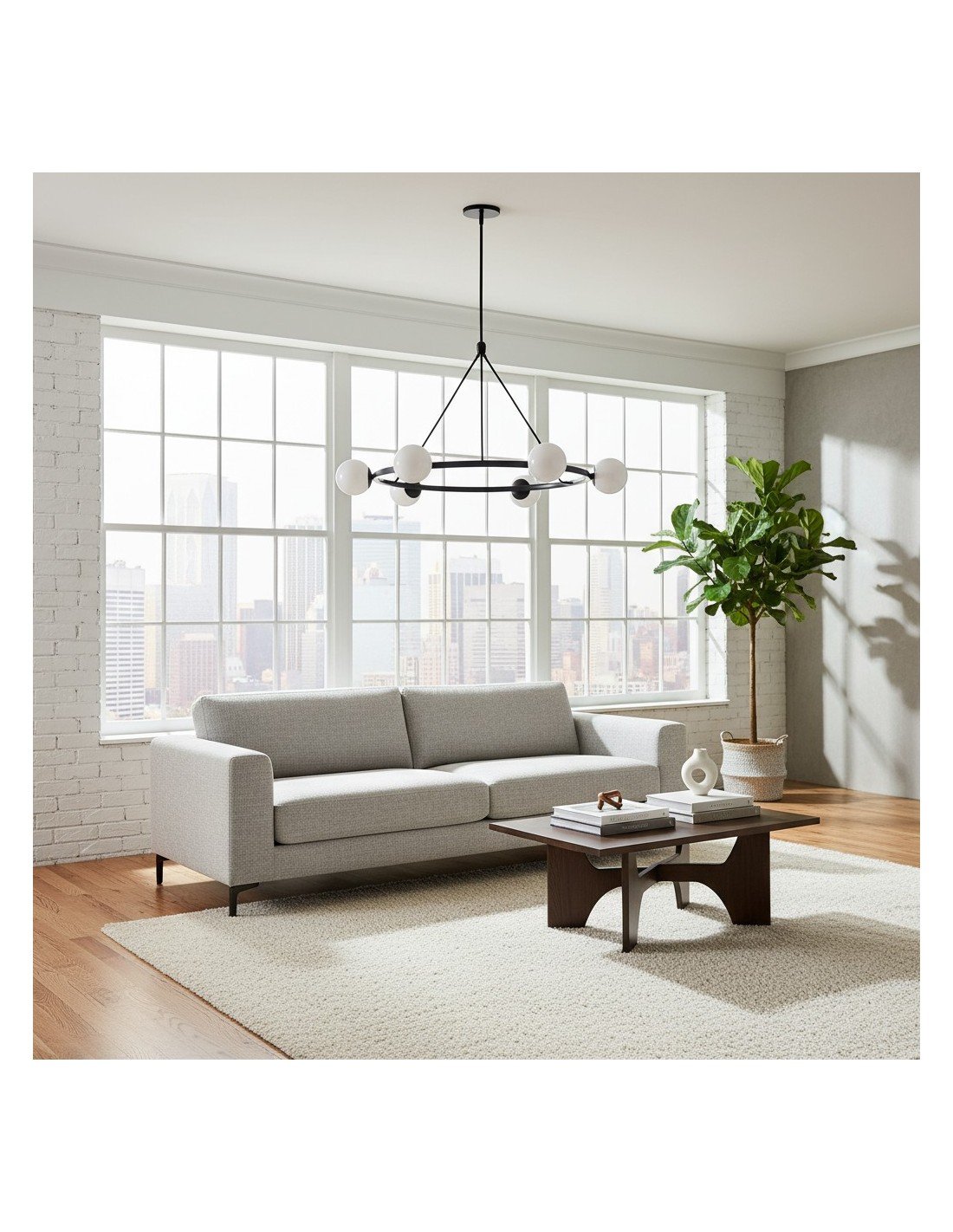 Le lustre rond Hayes revisite le design traditionnel avec modernité, alliant lignes épurées et globes en verre couleur lait diffusant une lumière d'ambiance chaleureuse. Disponible dans une variété de finitions populaires, ce lustre globe sublime harmonieusement cuisines, salles à manger et salons grâce à son esthétique à la fois intemporelle et moderne.