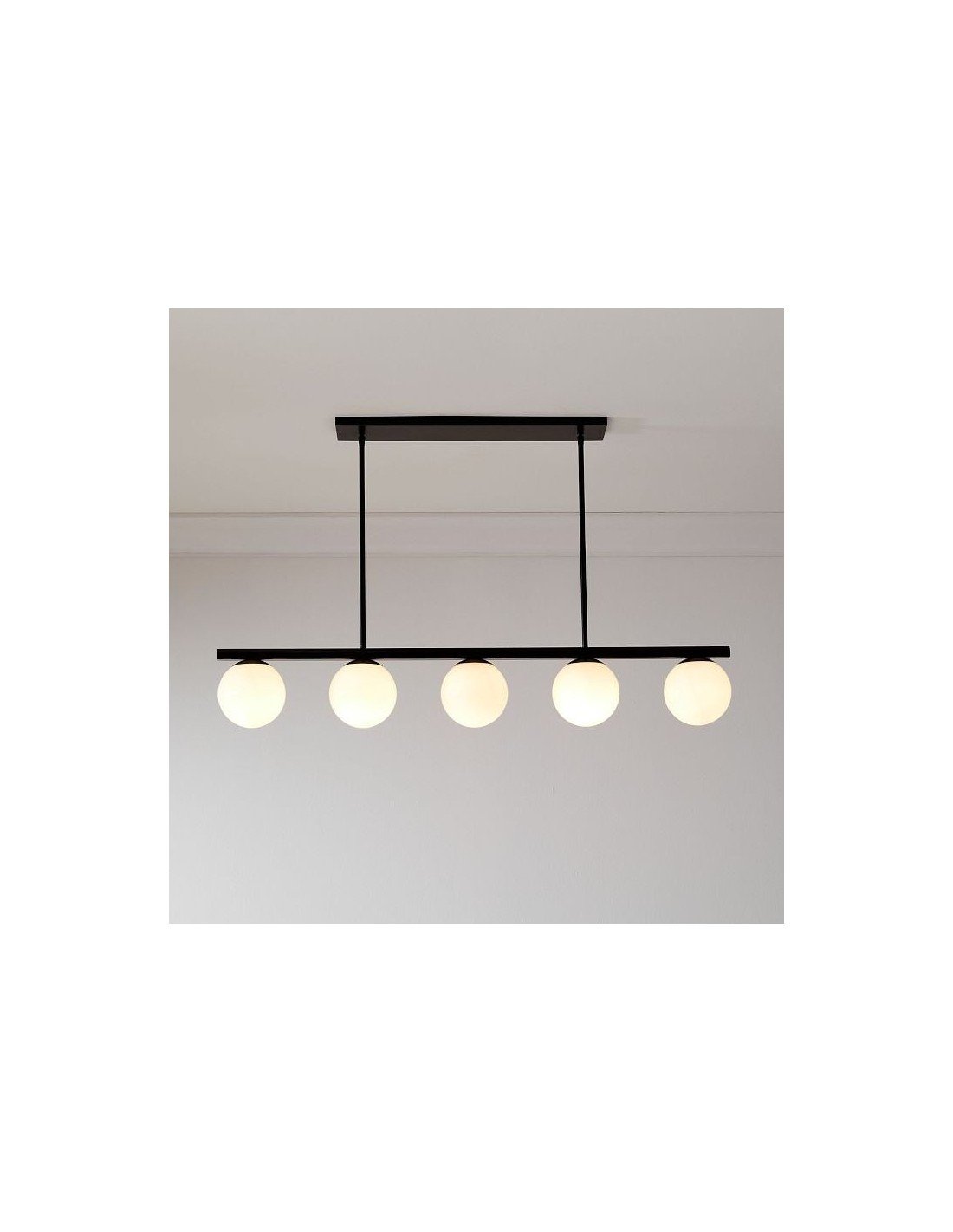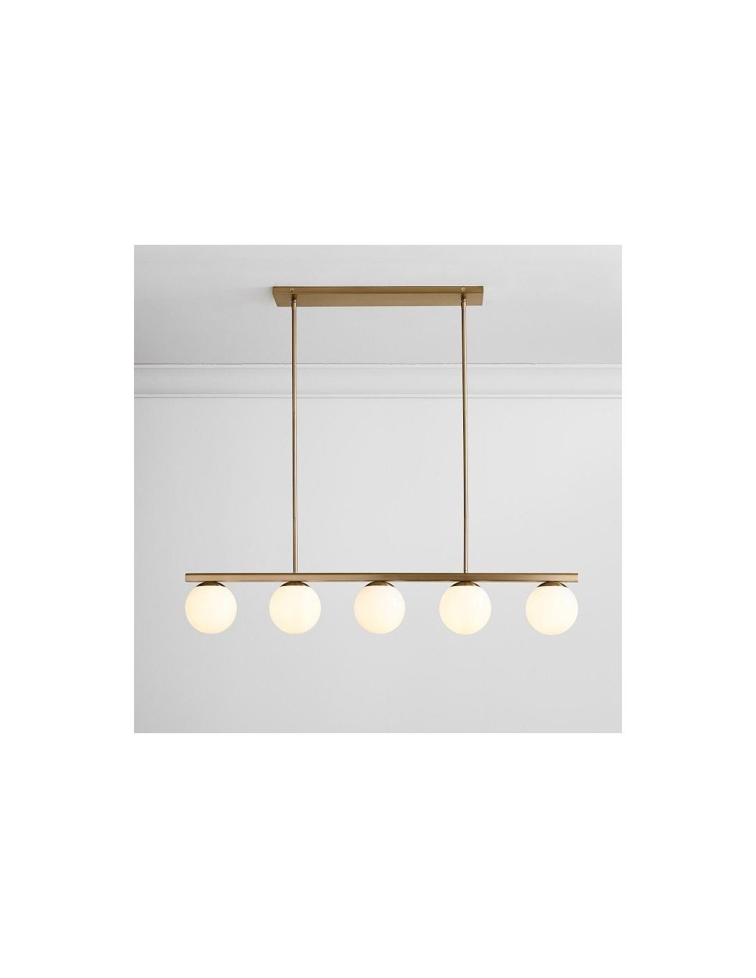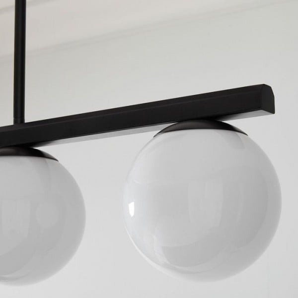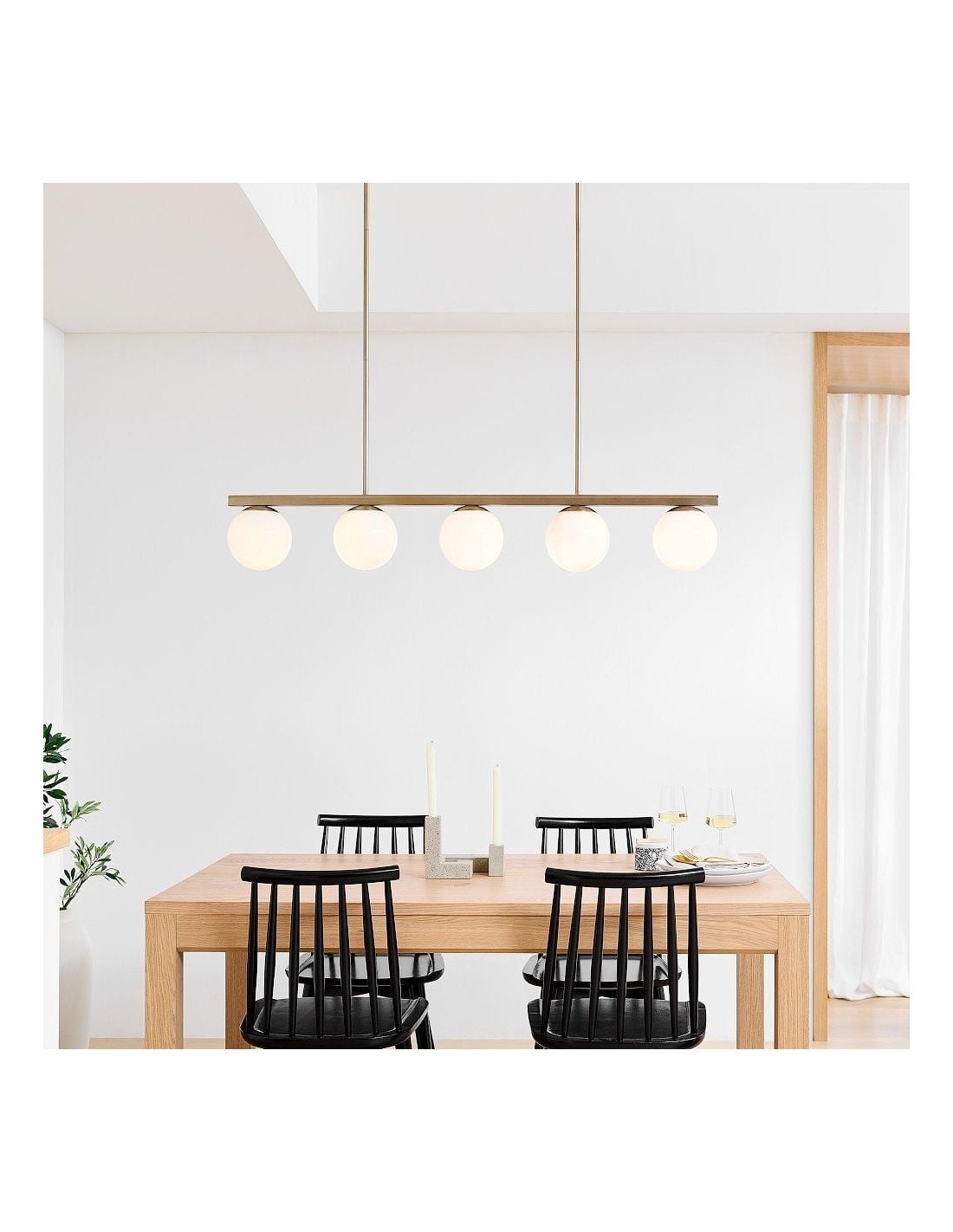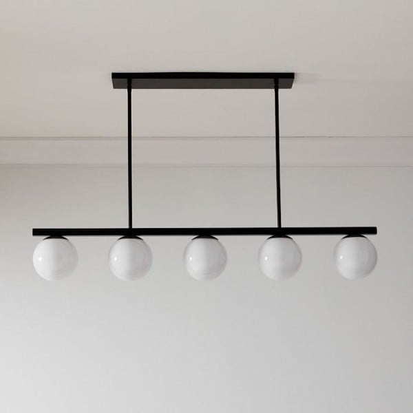 Le lustre rond Hayes revisite le design traditionnel avec modernité. Avec ses globes en verre couleur lait et sa silhouette métallique épurée, ce lustre diffuse une lumière chaleureuse et un style intemporel. Idéal comme lustre de salle à manger, de salon ou comme plafonnier d'accent.