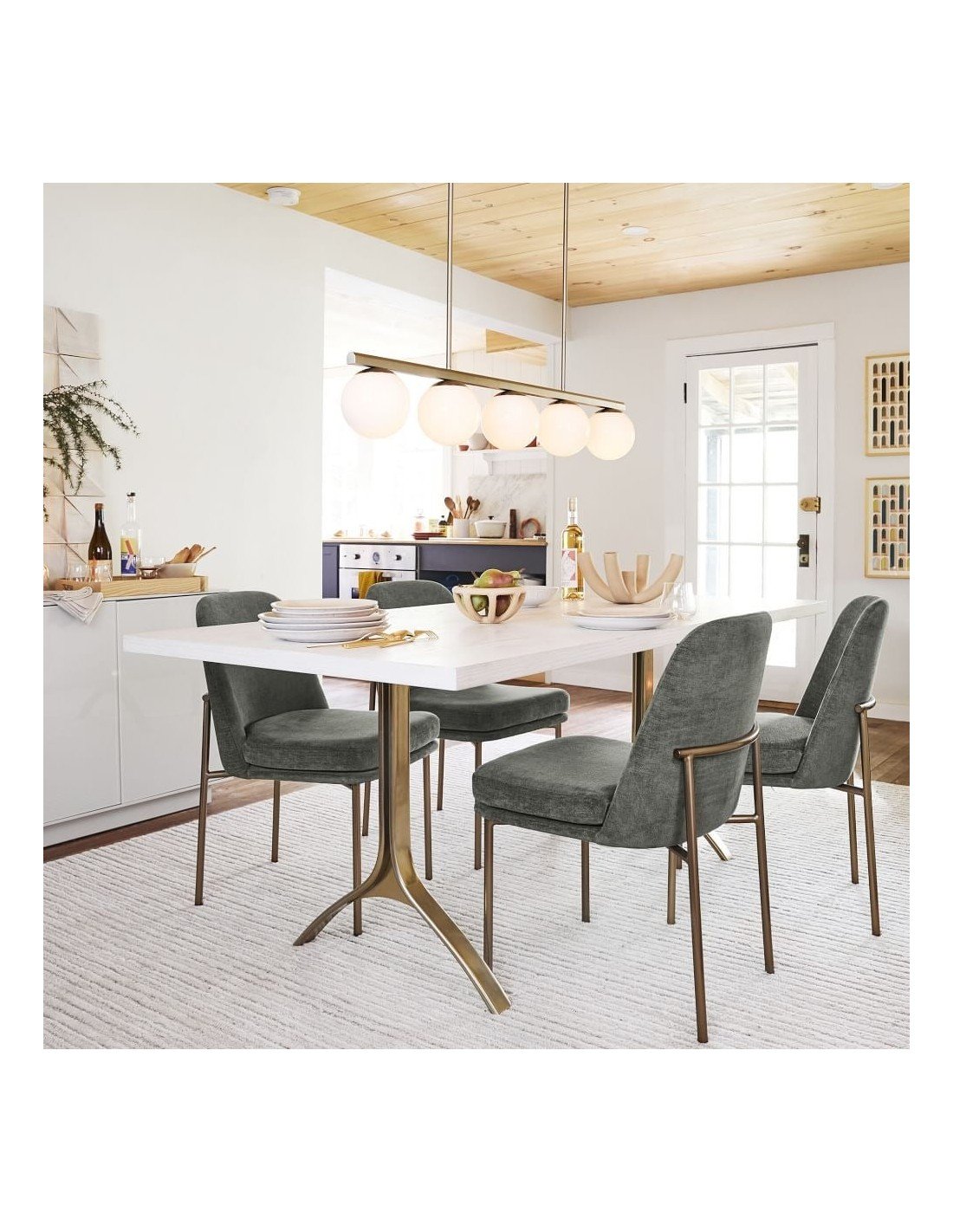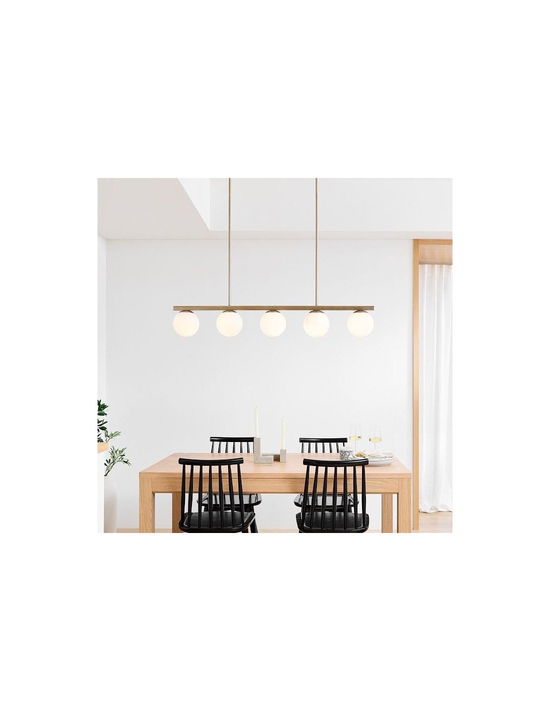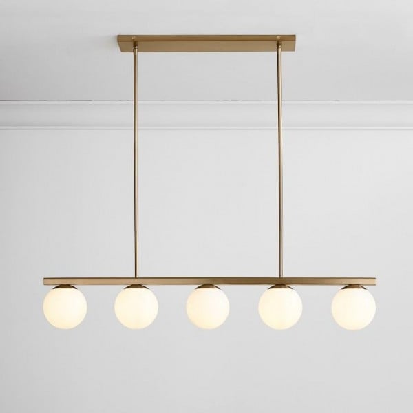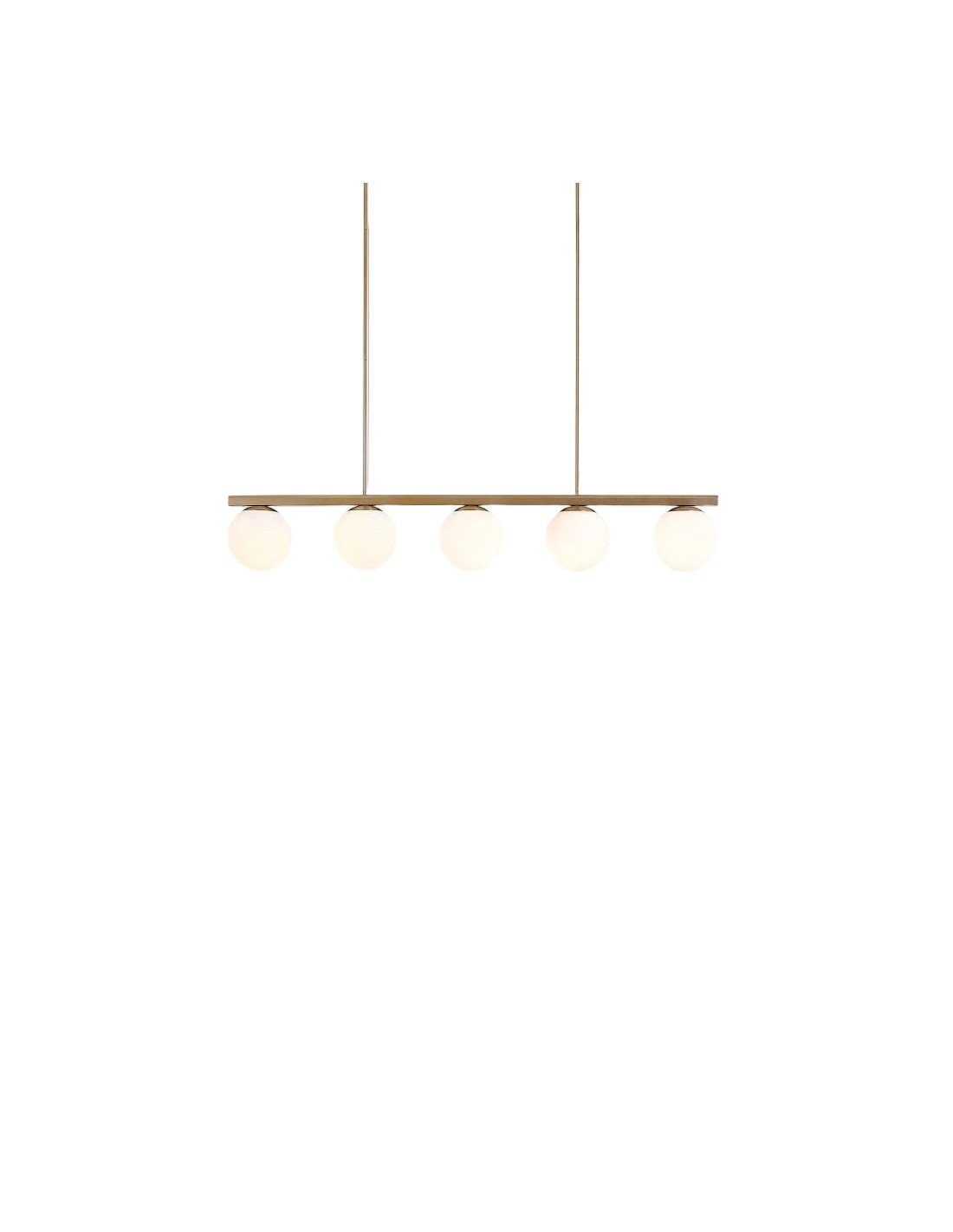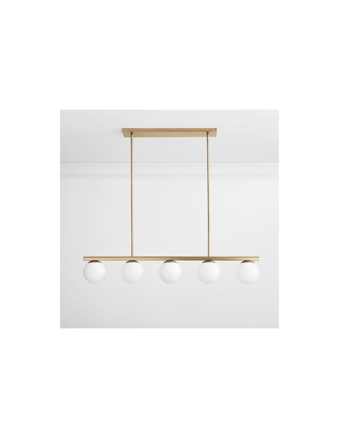 Le lustre rond Hayes revisite le design traditionnel avec modernité. Avec ses globes en verre couleur lait et sa silhouette métallique épurée, ce lustre diffuse une lumière chaleureuse et un style intemporel. Idéal comme lustre de salle à manger, de salon ou comme plafonnier d'accent.