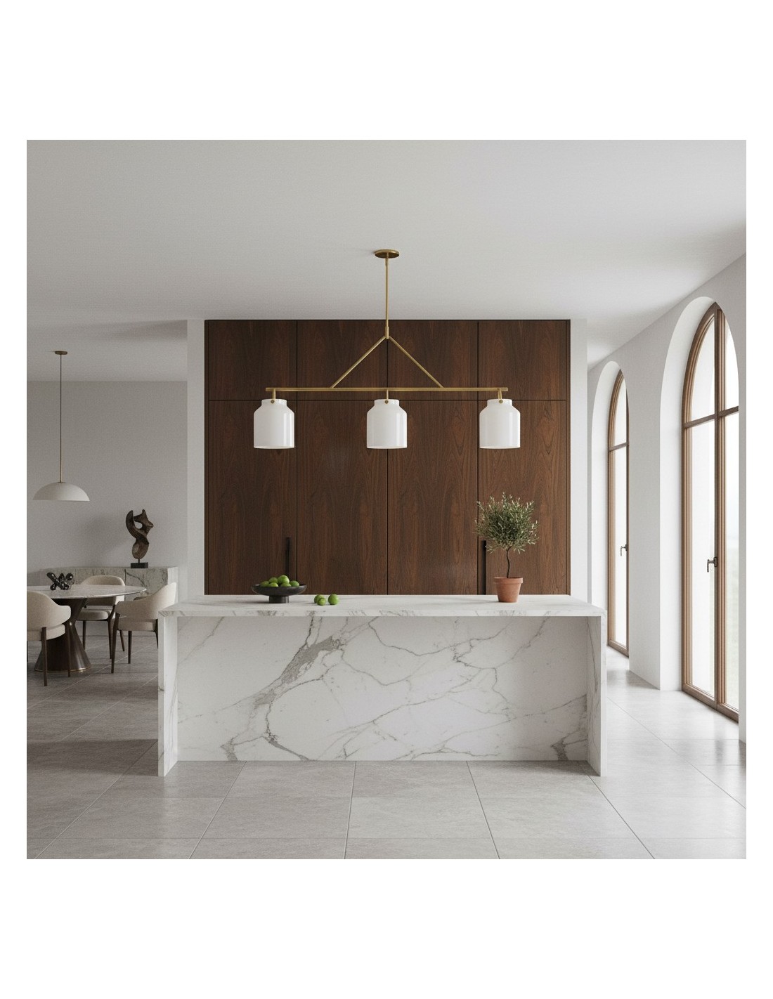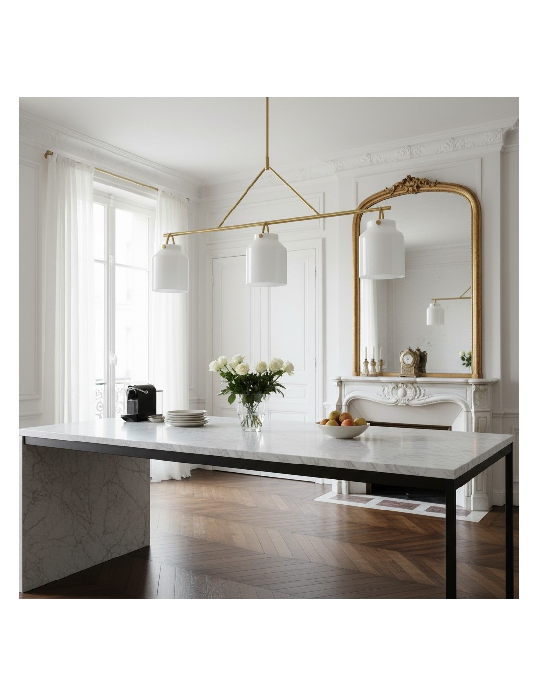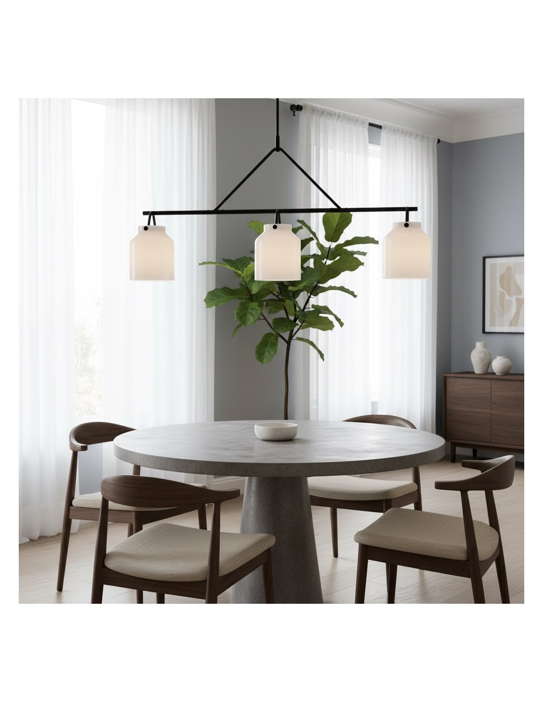 Cette suspension moderne arbore un élégant abat-jour en métal et un design minimaliste. Idéale au-dessus d'îlots de cuisine, de tables à manger ou d'entrées, elle offre un éclairage élégant et fonctionnel. Son style polyvalent s'intègre parfaitement aux intérieurs modernes, industriels ou scandinaves.