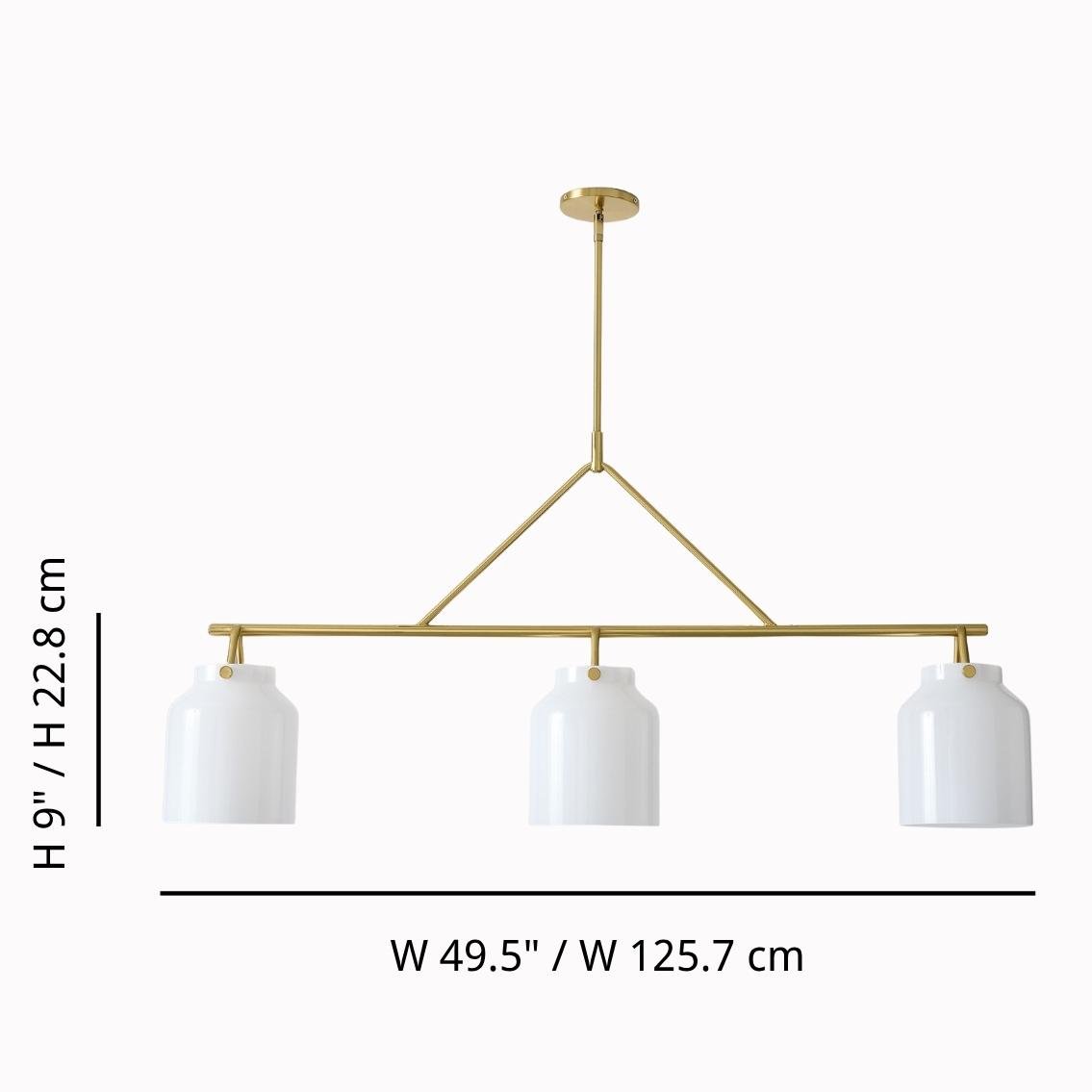 - 3 têtes : L 49,5″ x H 9″ / Dia 125,7 cm x H 22,8 cm