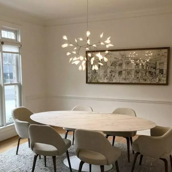 Les feuilles/lentilles blanches se ramifient d'une branche, créant une structure naturelle très technique. En utilisant une technologie de couche conductrice revêtue (Electrosandwich), la lampe est très fine et délicate. Conceptions qui ne peuvent pas être réalisées avec des fils ordinaires. Les feuilles d'Heracleum Chandelier ne sont pas gelées dans une position. Ils peuvent être librement repositionnés en tournant autour de leur tige. Le suspension Heracleum II fournit une lumière ambiante décorative. Monture en fil de fer, lentille en polycarbonate et fil de suspension ultra fin. Disponible en nickel ou en cuivre.