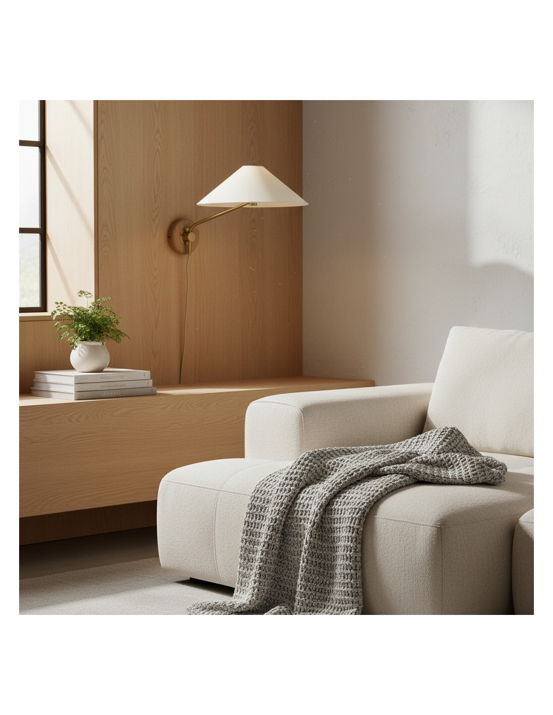 L'applique murale Ivoryne allie un design minimaliste à une chaleur naturelle. Dotée d'un abat-jour conique, d'une fixation équilibrée et d'un bras pivotant réglable, elle diffuse une lumière douce et ciblée. Idéale pour les chambres, les coins lecture et les intérieurs de boutiques, elle offre un éclairage apaisant, fonctionnel et élégant.