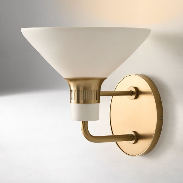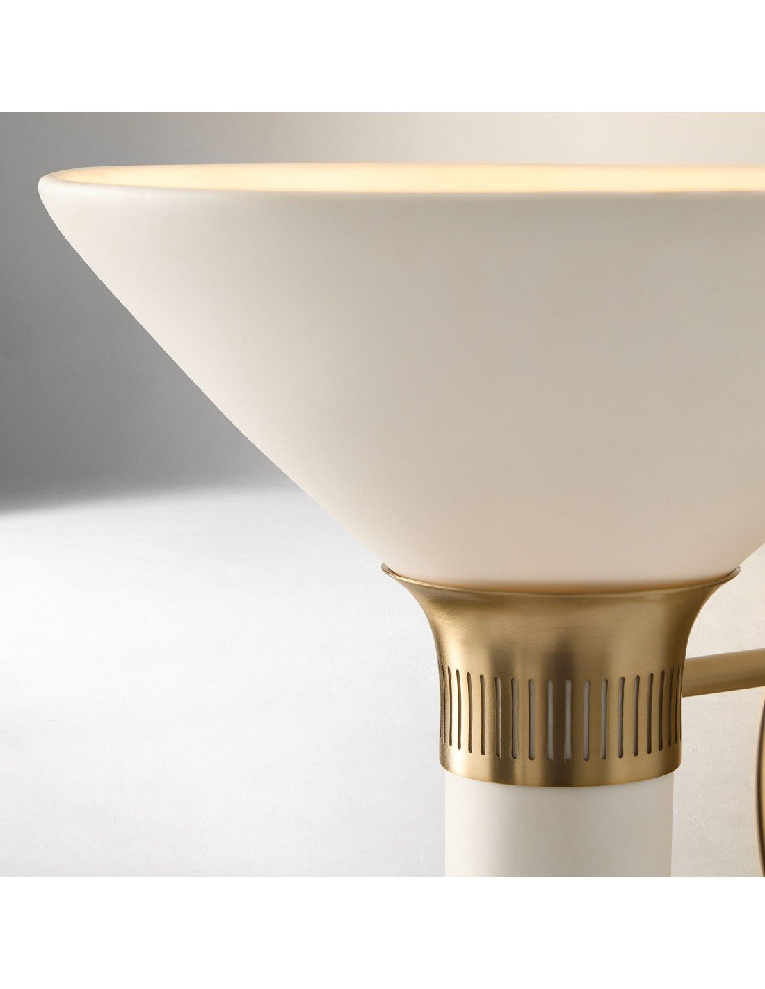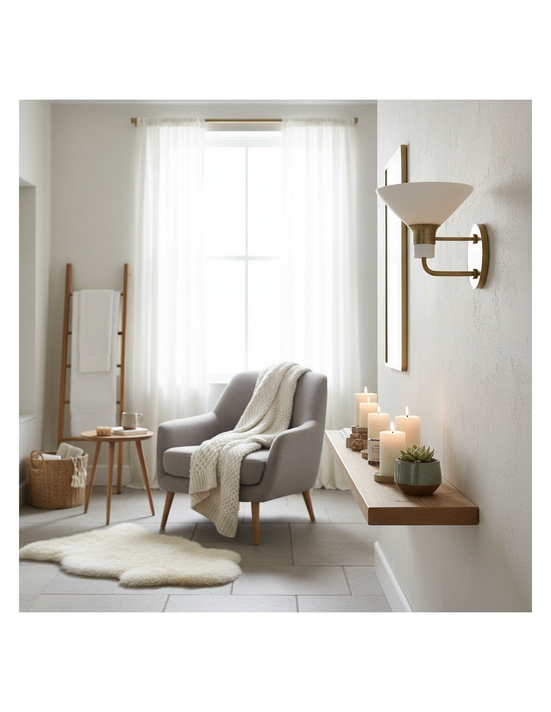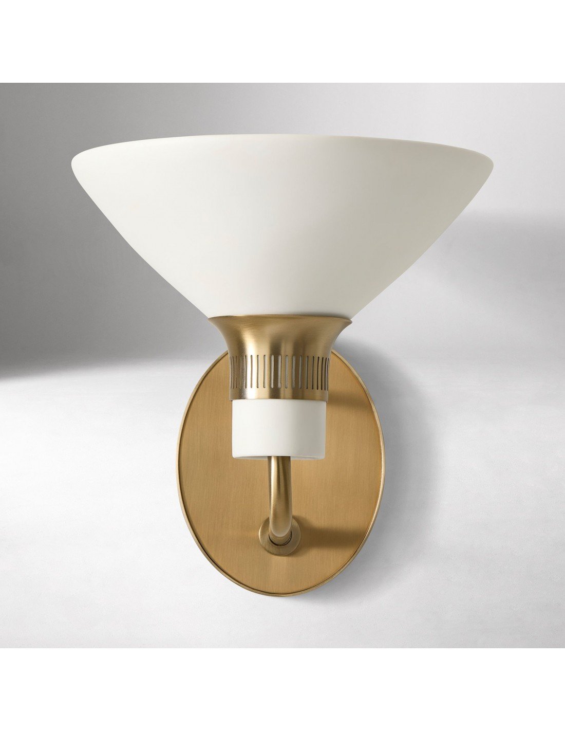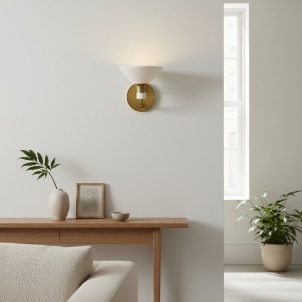 Une applique épurée avec un abat-jour en porcelaine ivoire et un corps en métal bronze champagne. Des touches dorées perforées lui confèrent une touche de sophistication. Résistante à l'humidité et de qualité professionnelle, elle est idéale pour une utilisation dans les salles de bains, les couloirs, les chambres ou les espaces extérieurs couverts. L'installation câblée assure une finition élégante et moderne.