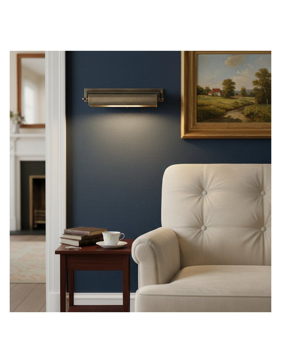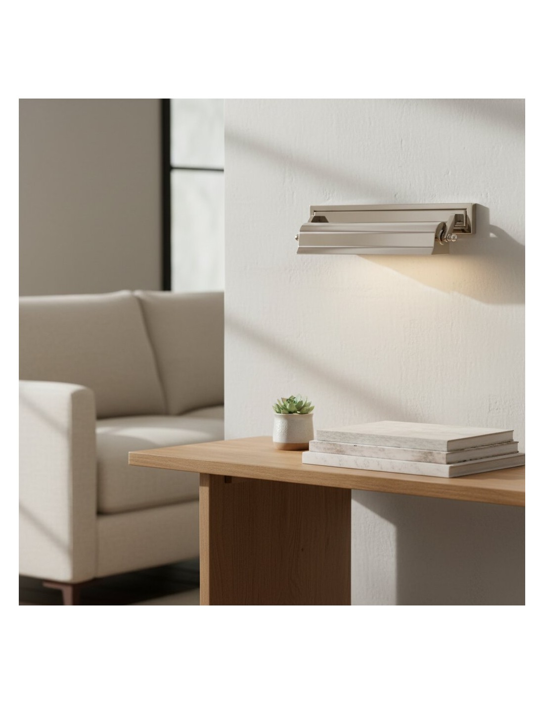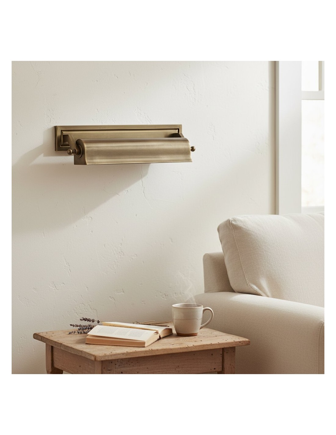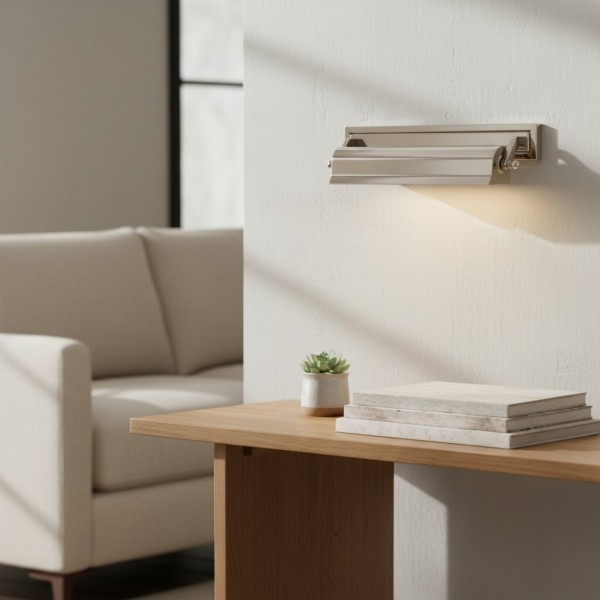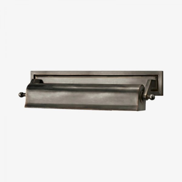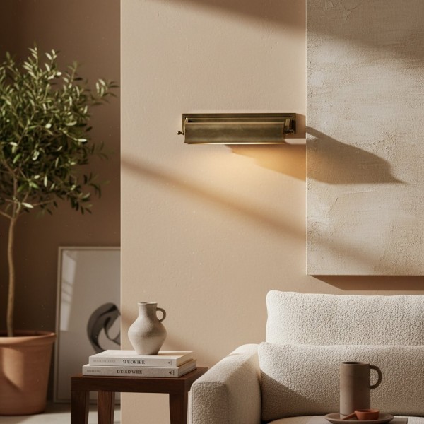 L'applique murale Libris, avec sa plaque arrière rectangulaire et son abat-jour cylindrique horizontal en bronze foncé patiné, offre un style vintage. Disponible en plusieurs finitions, elle est idéale pour mettre en valeur des œuvres d'art, des étagères ou une bibliothèque grâce à un éclairage ciblé.