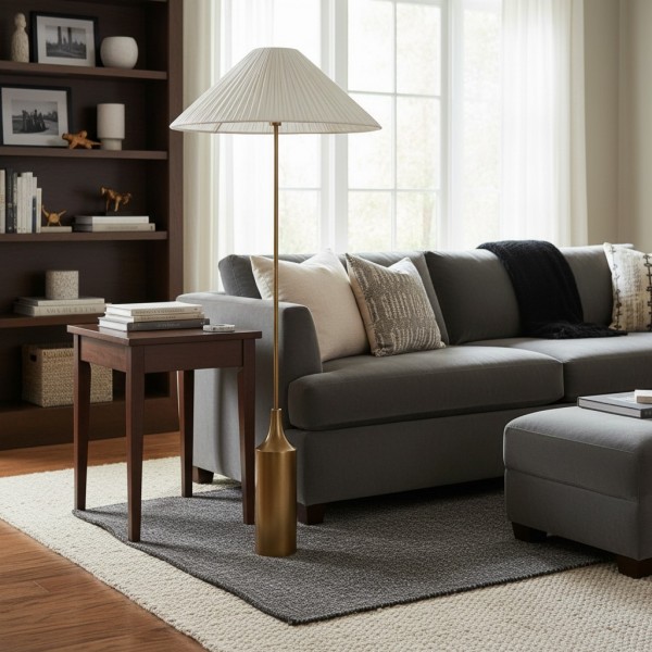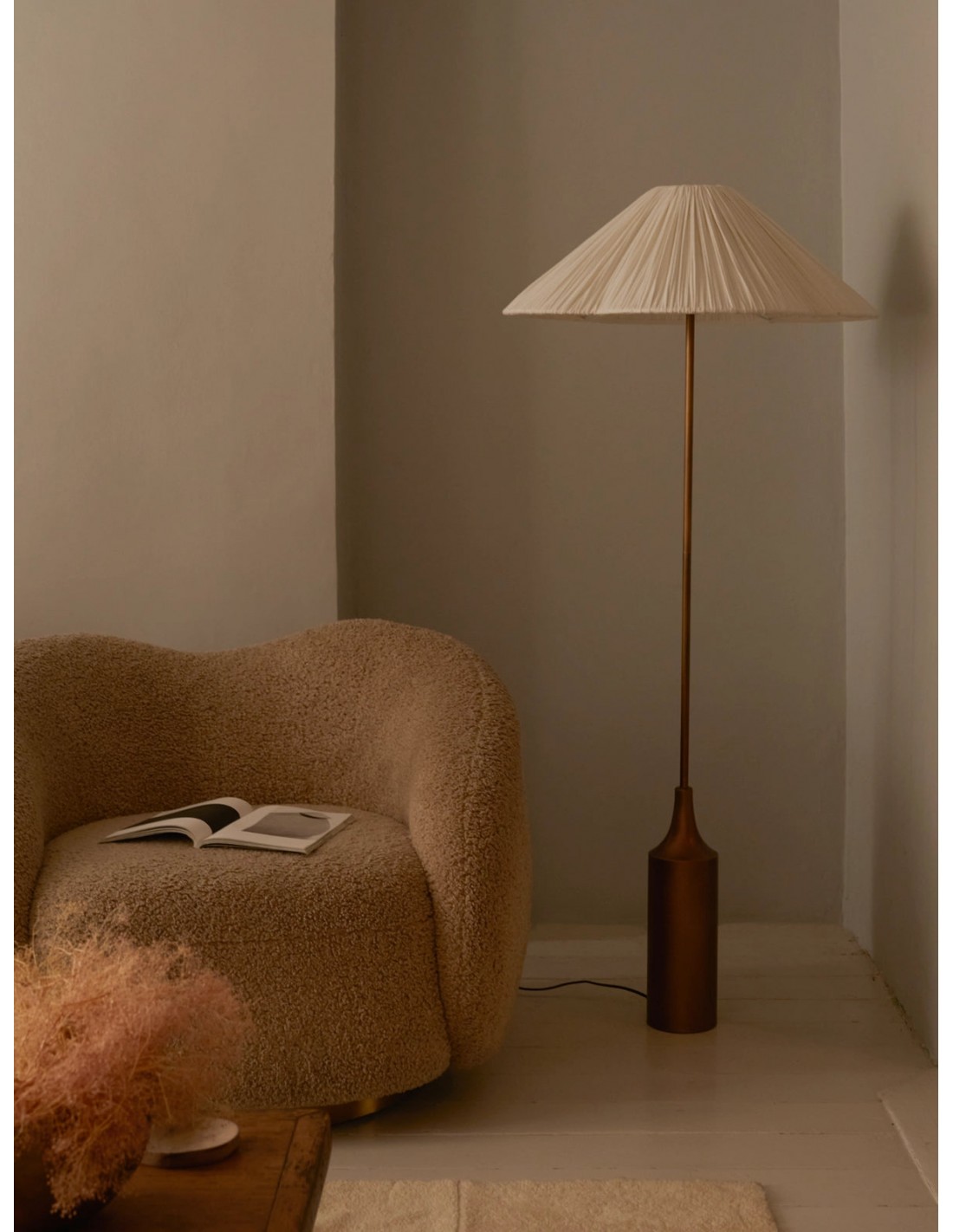 Lampe sur pied à abat-jour festonné – Design Contemporain en Laiton et Lin KL1535
