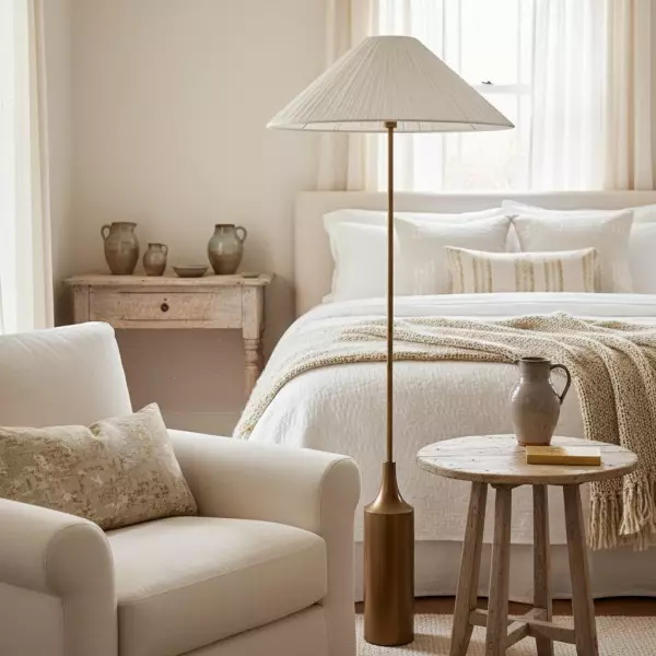 Élégante et intemporelle, cette lampe sur pied incarne l'équilibre parfait entre design contemporain et charme classique. Son pied élancé en métal à la finition raffinée soutient un abat-jour festonné en tissu qui diffuse une lumière douce et chaleureuse. Idéale pour créer une atmosphère accueillante dans le salon, la chambre ou le coin lecture, elle se distingue par sa silhouette sculpturale et ses lignes courbes harmonieuses.