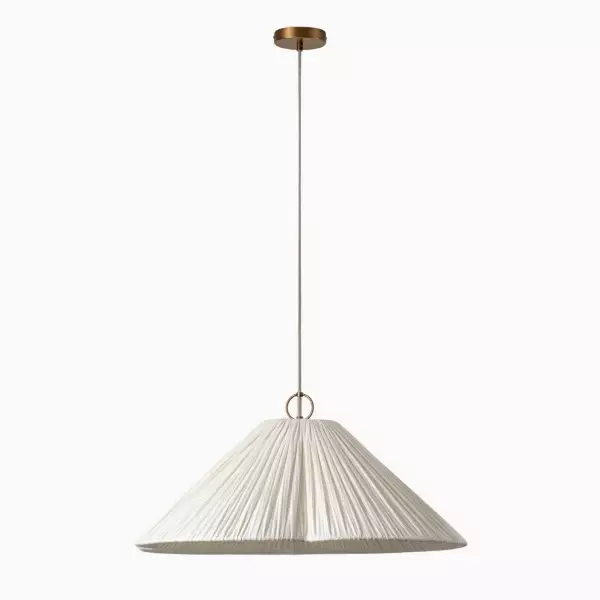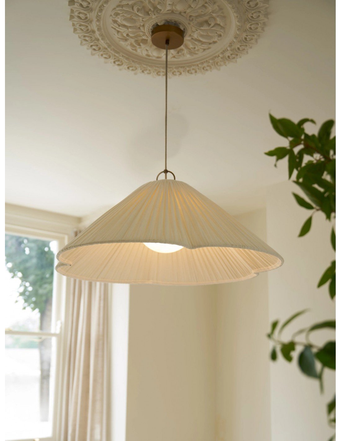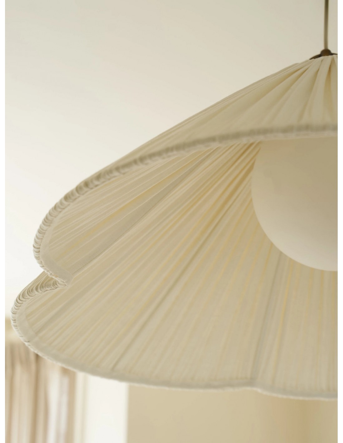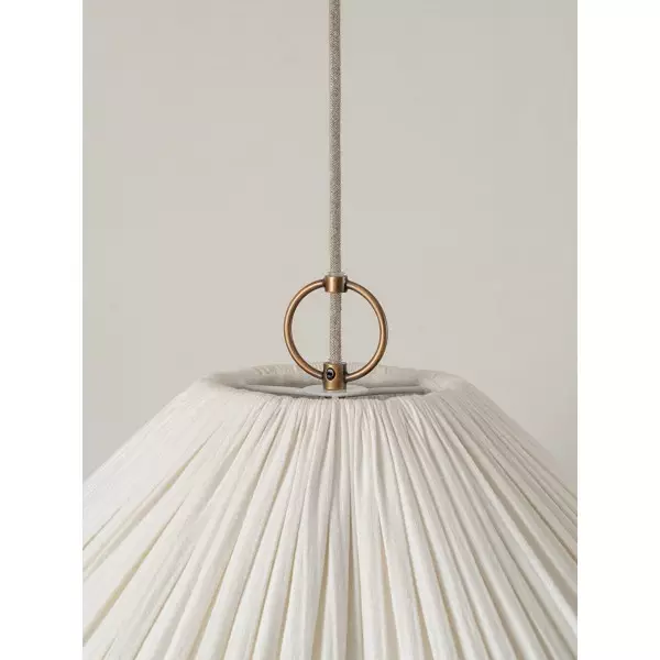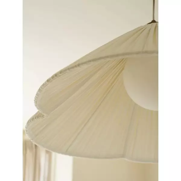 Cette suspension élégante combine style moderne et charme intemporel. Son abat-jour festonné en lin diffuse une lumière douce et chaleureuse, idéale pour créer une ambiance accueillante. La structure en métal finition laiton vieilli apporte une touche de sophistication et de raffinement à tout espace intérieur.