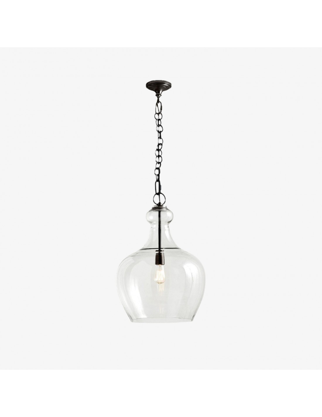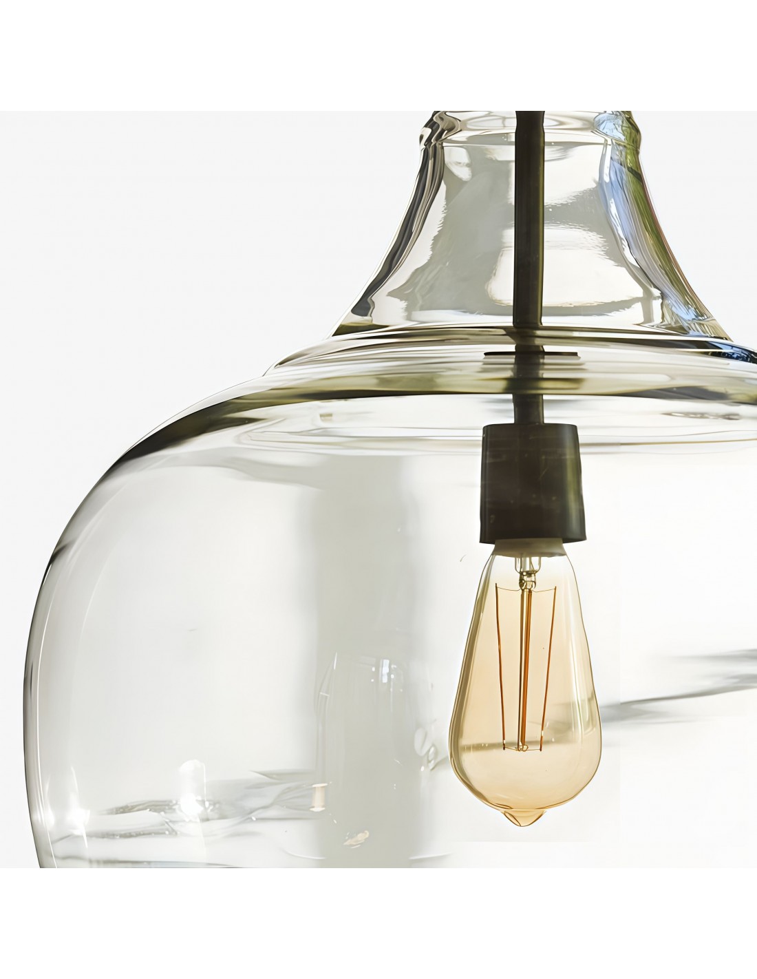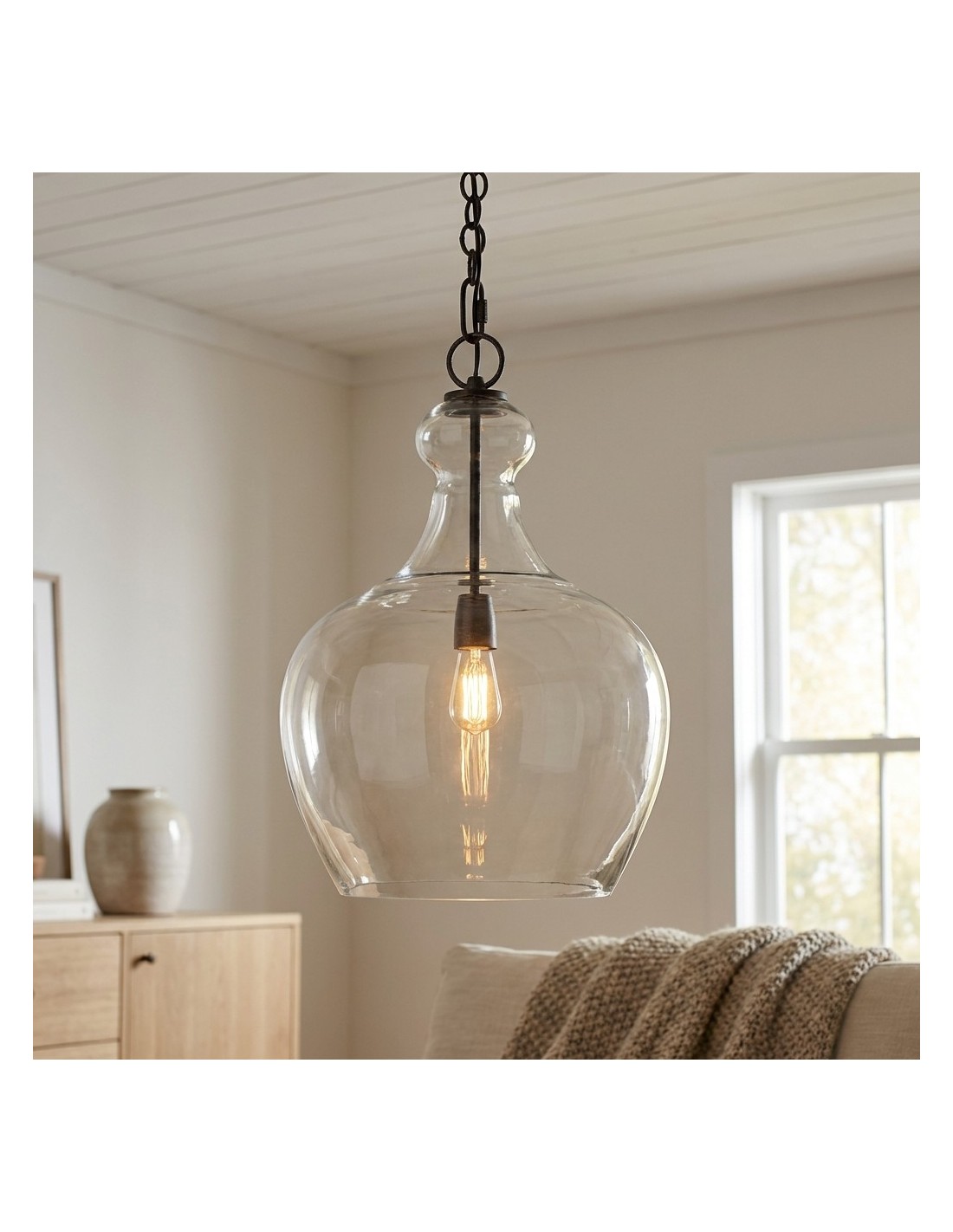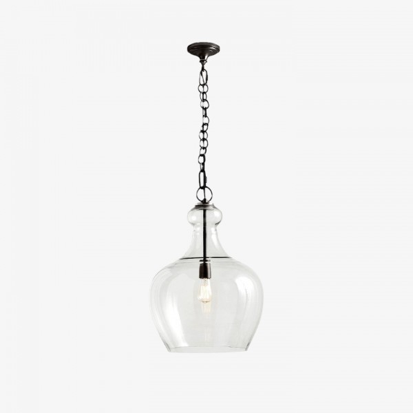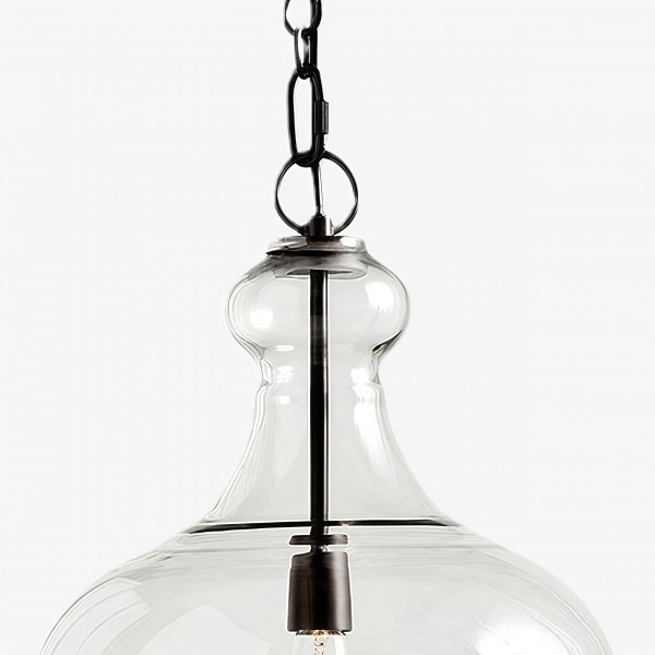 La suspension en verre transparent de style industriel allie une silhouette classique en forme de cloche à du verre transparent soufflé à la main pour un rendu lumineux et texturé. Suspendue par une chaîne de style vintage et fabriquée en métal résistant, elle apporte une touche rustique, champêtre ou industrielle aux cuisines, salles à manger, lofts et espaces de vie.