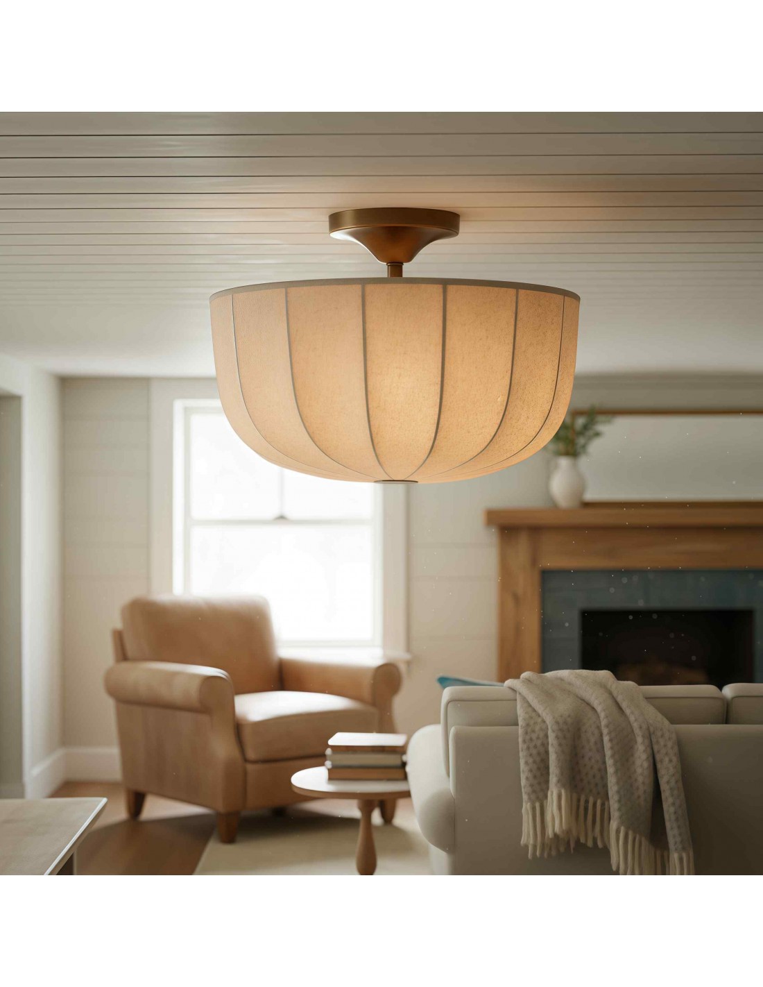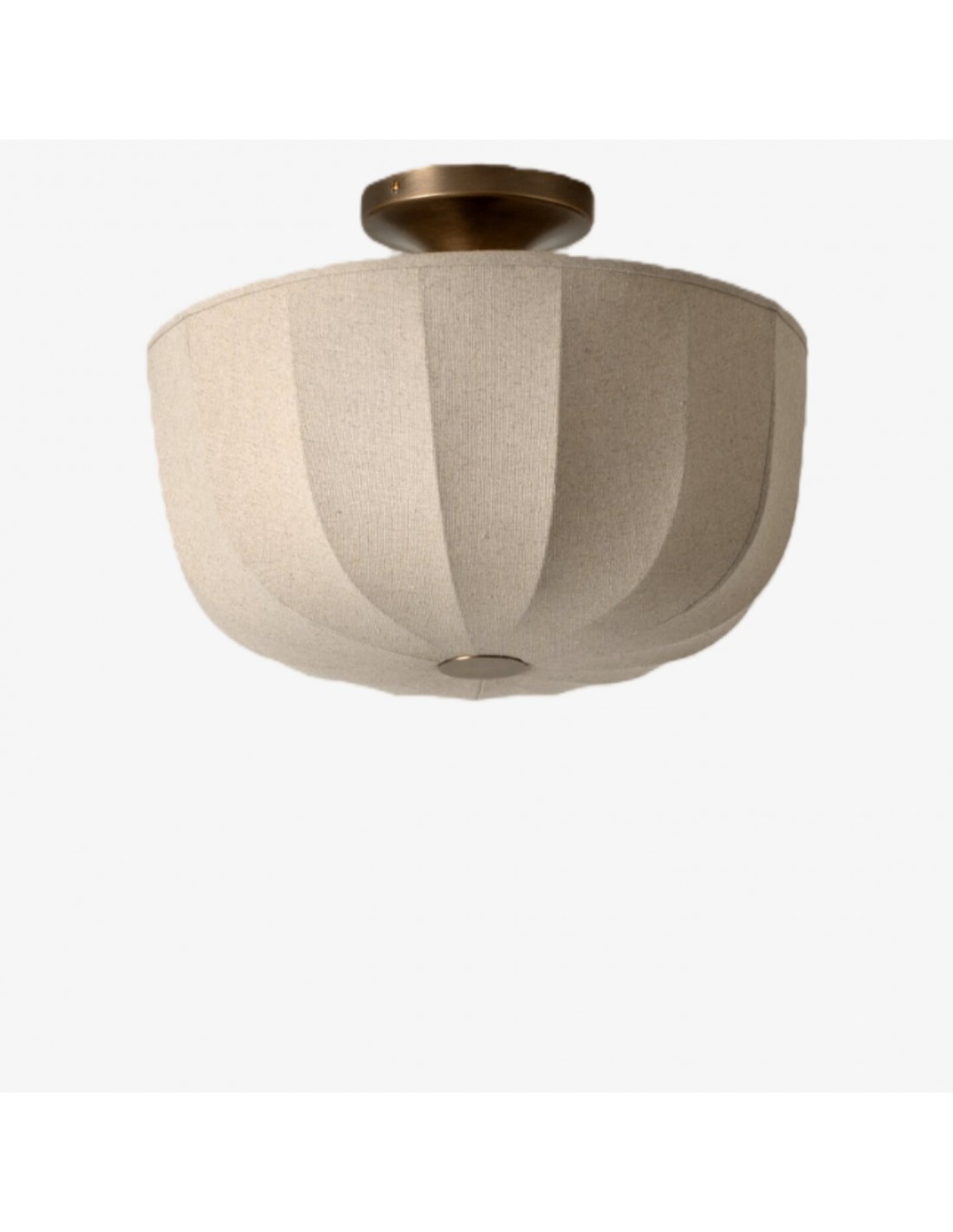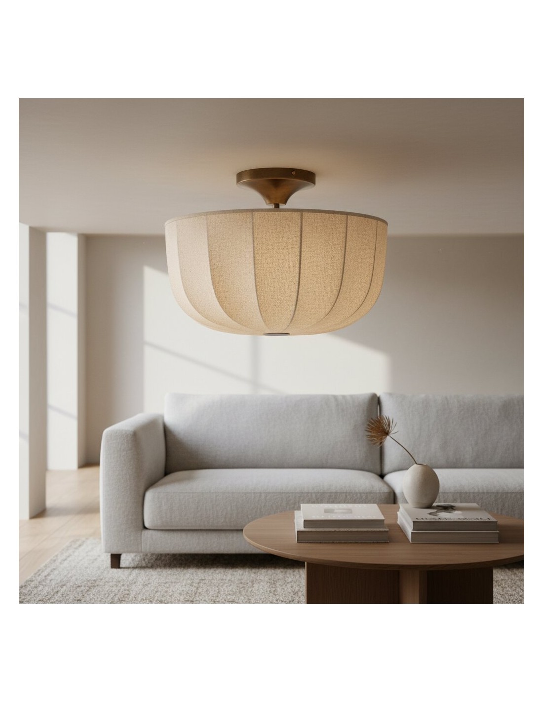 Le luminaire suspendu Loomis Flush allie avec brio design vintage et matériaux modernes. Son abat-jour texturé recouvert de lin et sa finition élégante en laiton vieilli diffusent une lumière douce et tamisée. Idéal pour le salon, le couloir, la cuisine ou la chambre, ce luminaire apporte une touche de sophistication intemporelle à tout espace.