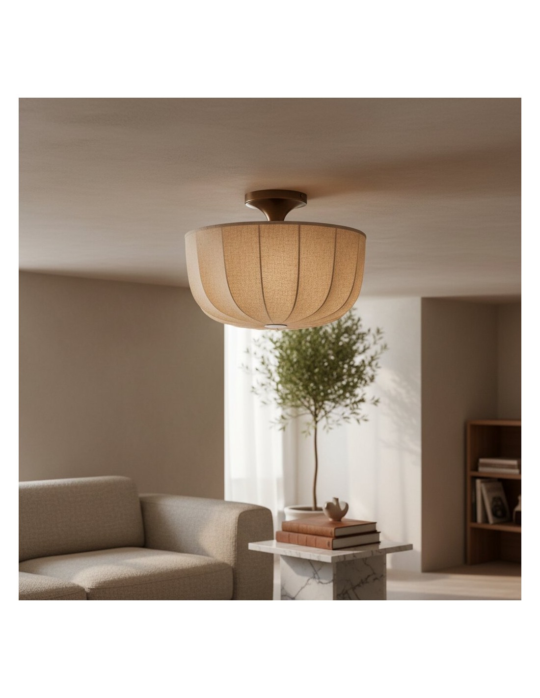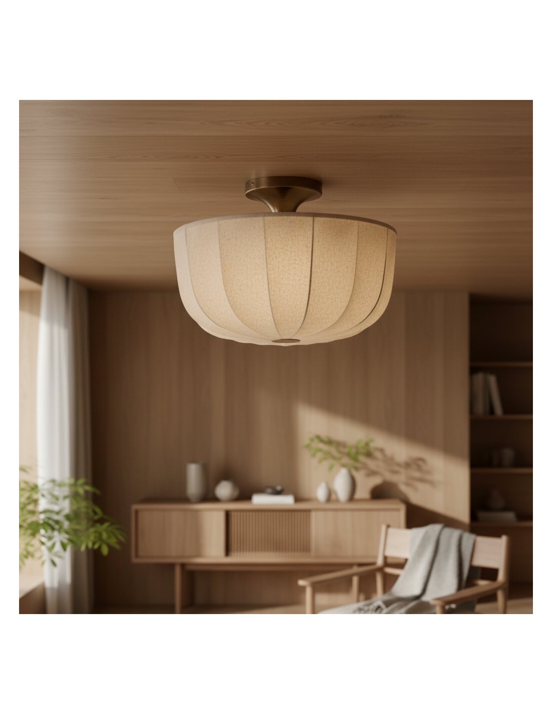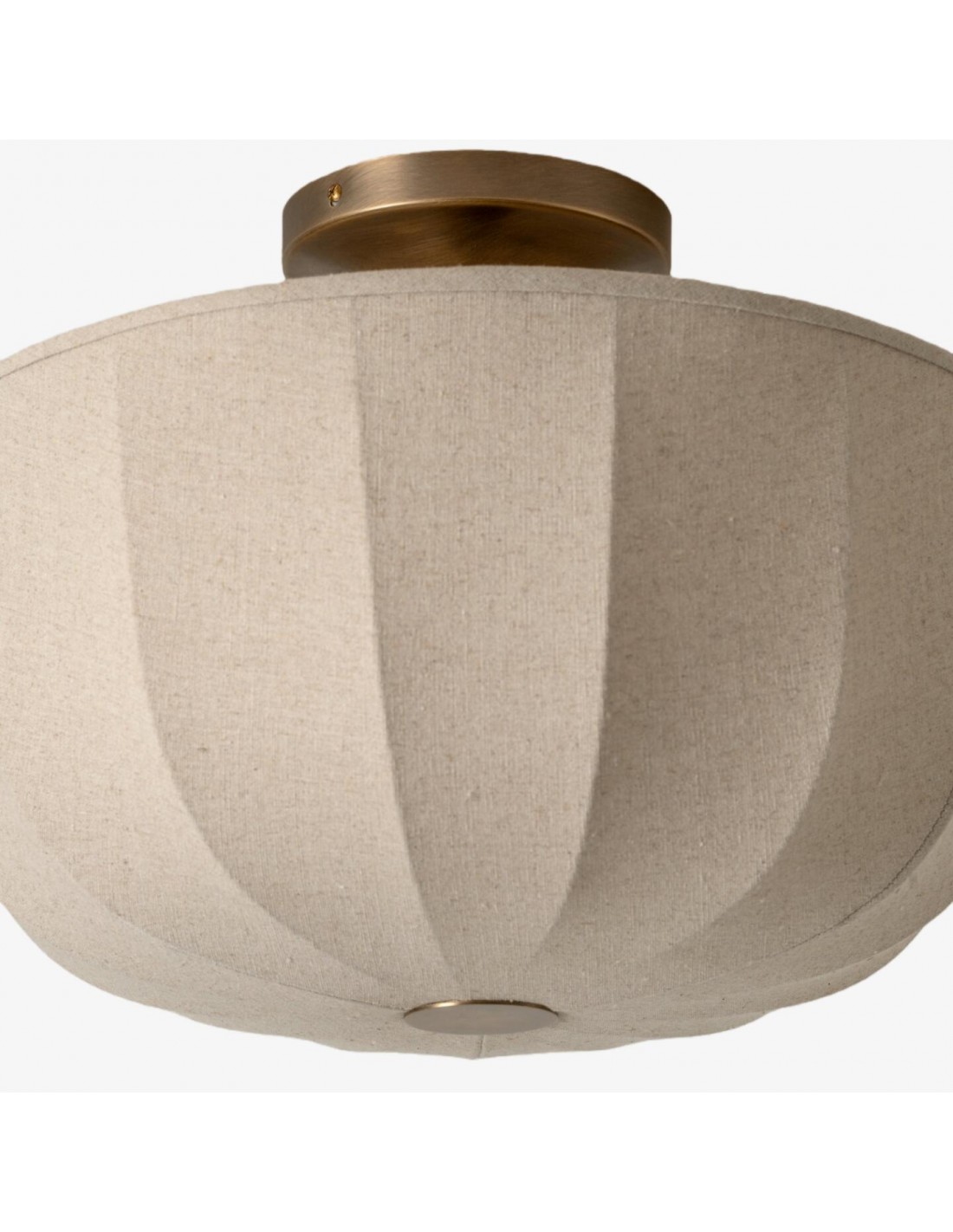 Le luminaire suspendu Loomis Flush allie avec brio design vintage et matériaux modernes. Son abat-jour texturé recouvert de lin et sa finition élégante en laiton vieilli diffusent une lumière douce et tamisée. Idéal pour le salon, le couloir, la cuisine ou la chambre, ce luminaire apporte une touche de sophistication intemporelle à tout espace.