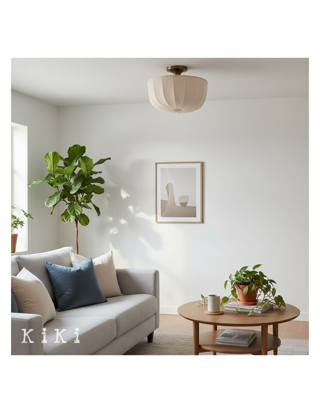 Apportez une élégance discrète et une chaleur organique à votre intérieur avec ce plafonnier au design sophistiqué. Ce luminaire se distingue par son abat-jour en lin texturé de haute qualité qui habille le plafond avec une texture riche et naturelle.