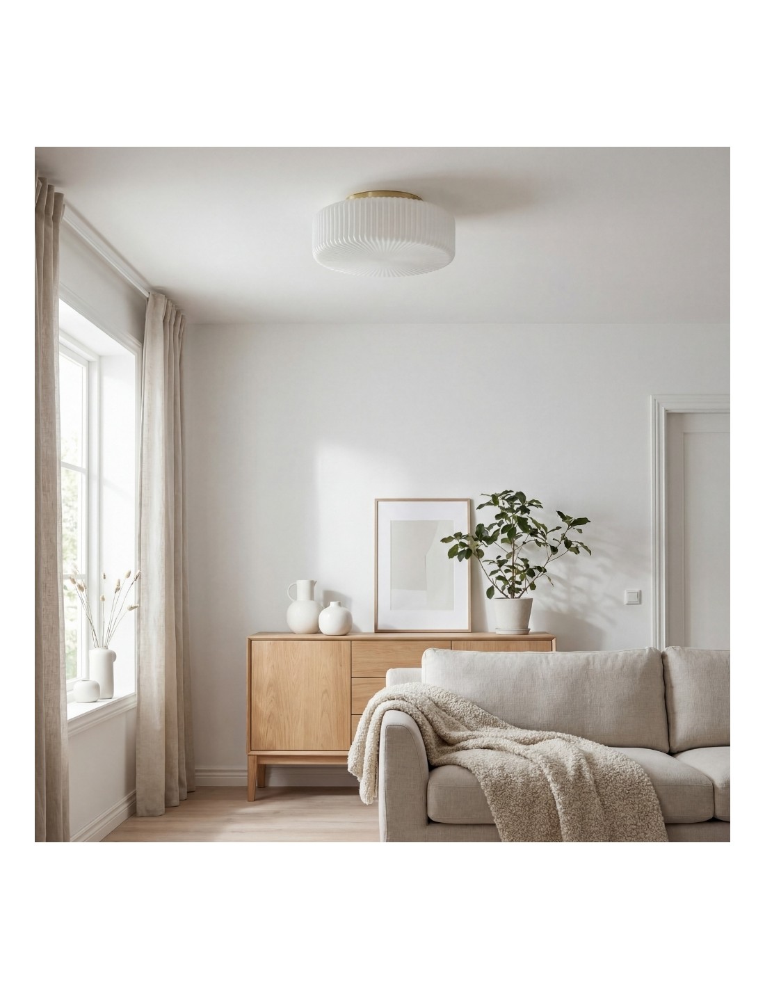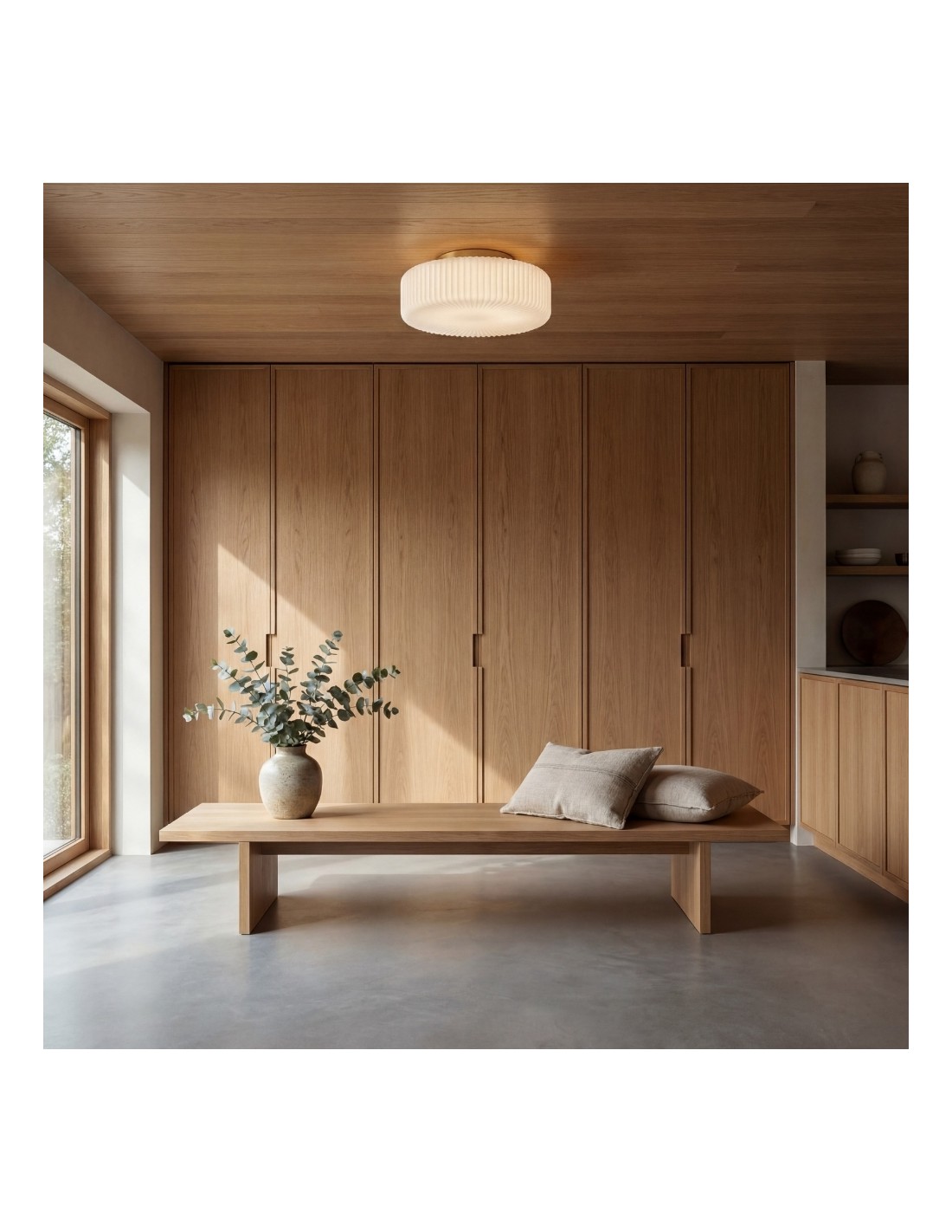 Lunorib est un plafonnier moderne en verre opalin côtelé qui apporte une élégance épurée et une lumière douce et diffuse à tous les espaces. Son abat-jour côtelé texturé diffuse délicatement la lumière, créant une atmosphère accueillante dans les couloirs, les salons, les chambres et autres pièces intérieures.