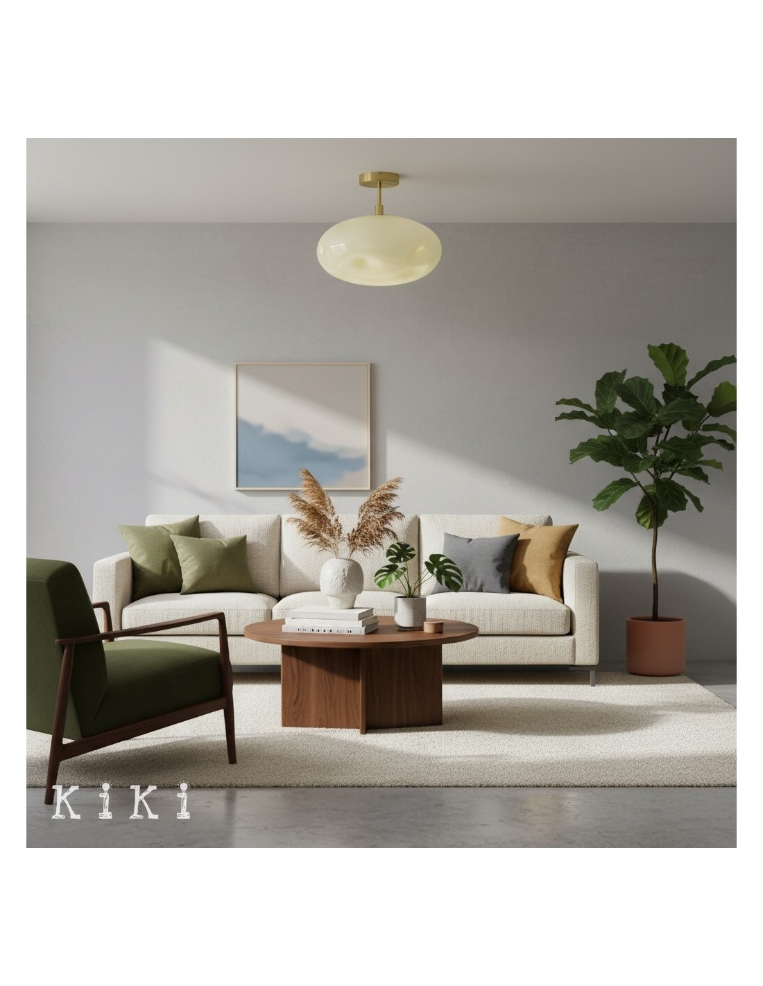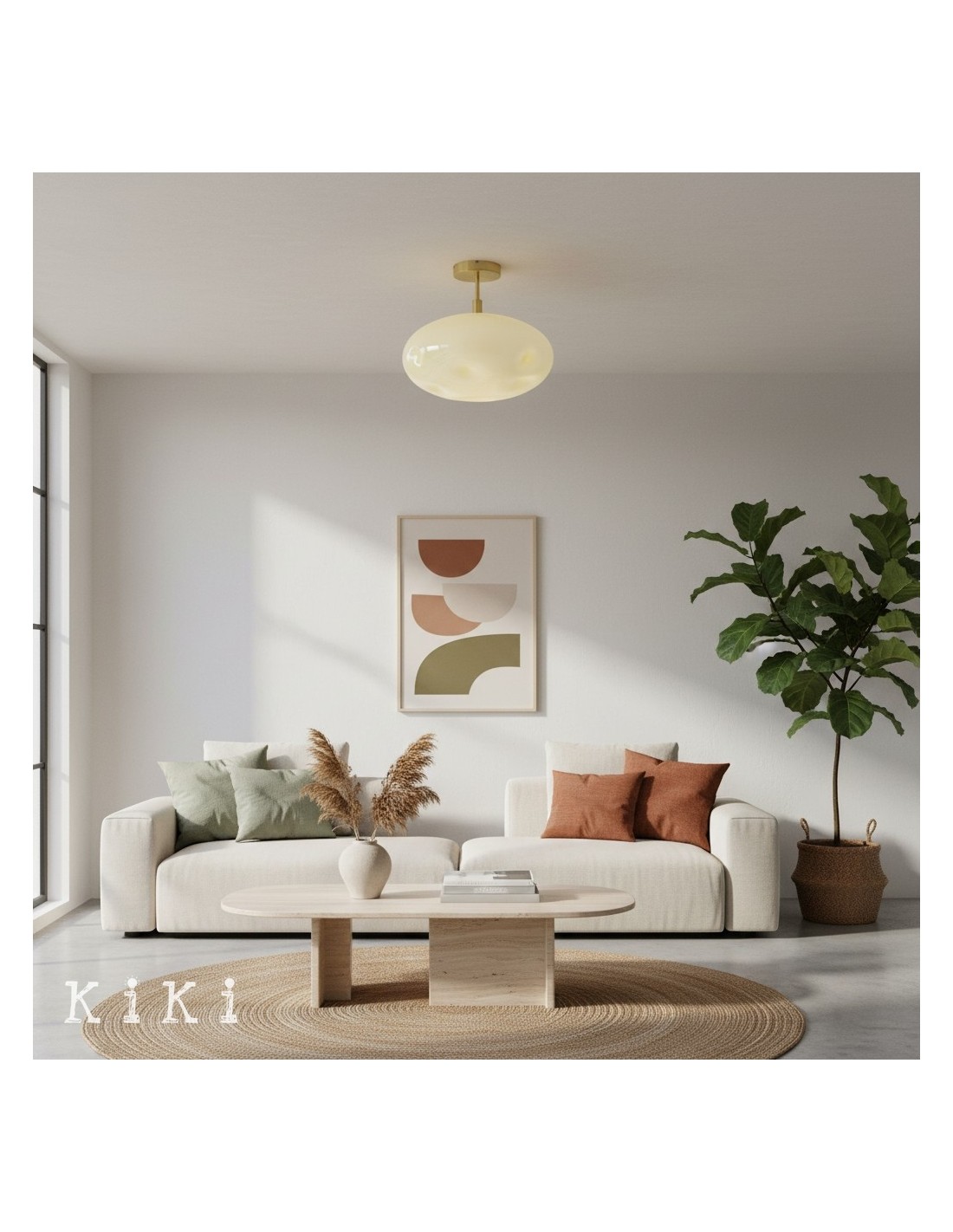 Apportez une touche sculpturale et raffinée à votre intérieur avec le plafonnier. Ses globes en verre opale, aux formes douces et arrondies, se suspendent élégamment à un socle métallique épuré, diffusant une lumière chaleureuse et tamisée.