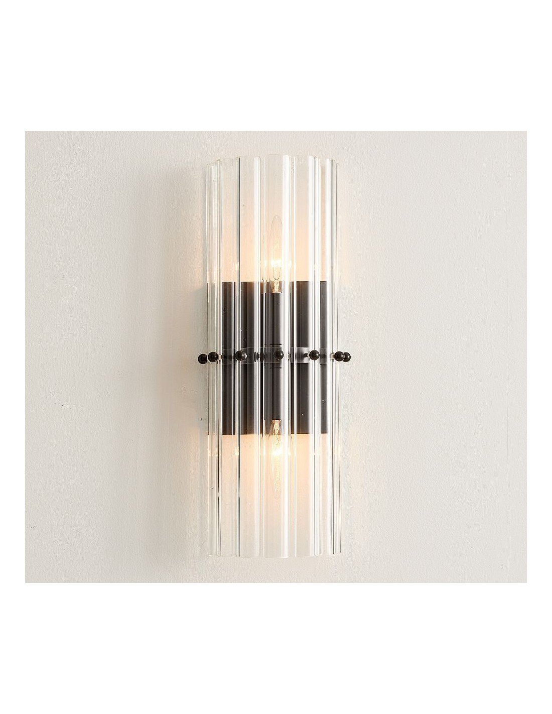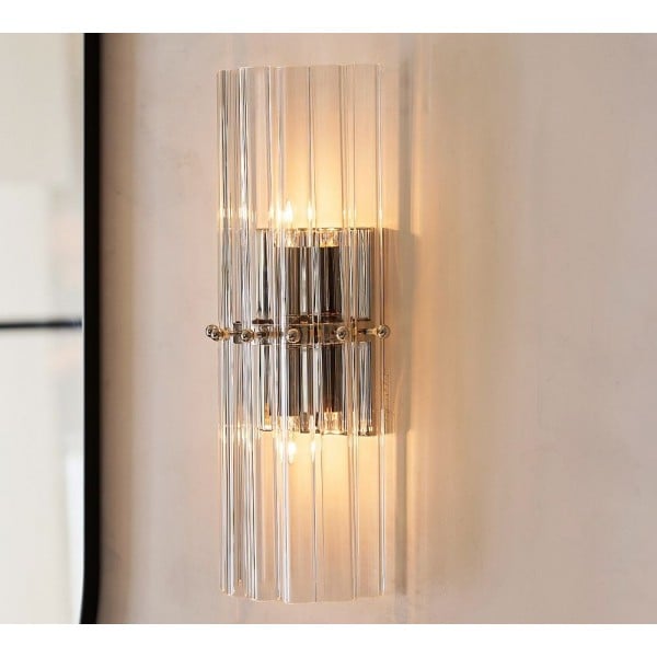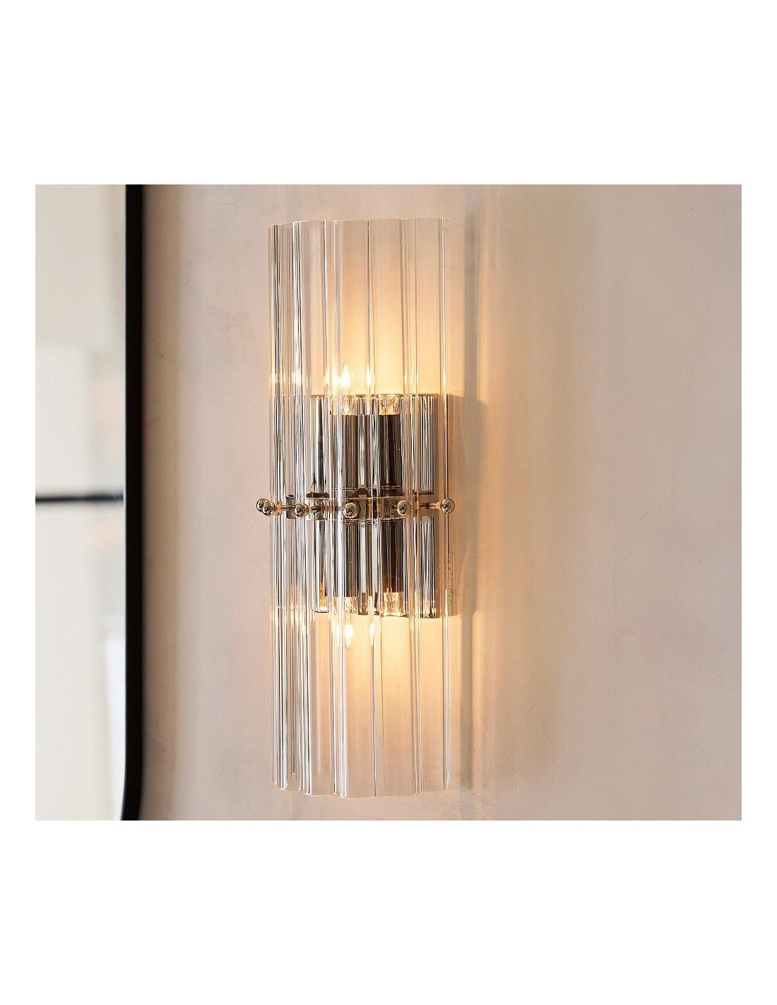 L'applique murale en cristal allie luxe et polyvalence. Fabriquée en fer et cristal avec une finition en laiton vieilli, bronze ou nickel poli, cette applique simple ou double sublimera chambres, couloirs et salons d'une élégance intemporelle. Idéale comme applique murale pour une chambre ou comme décoration d'entrée.