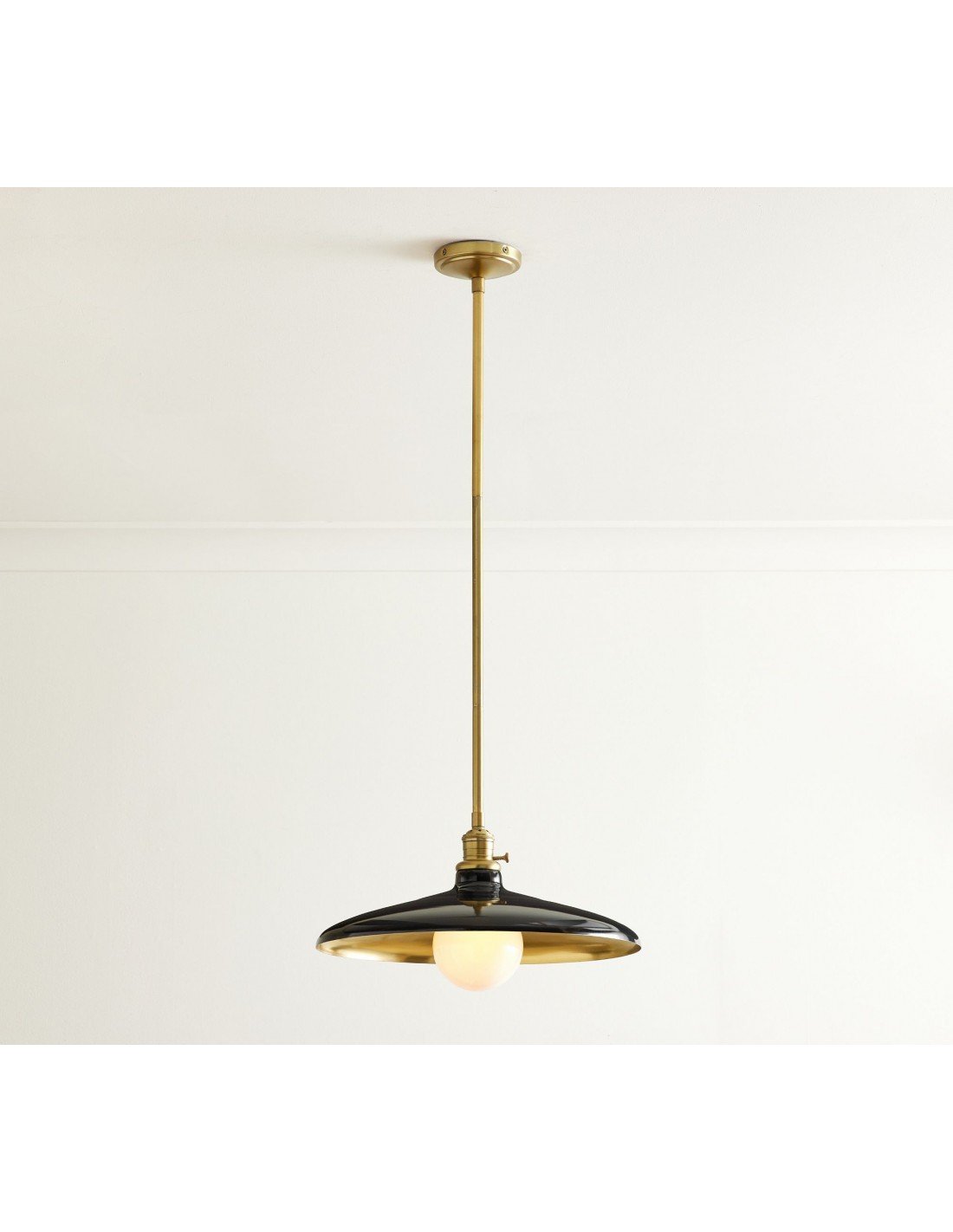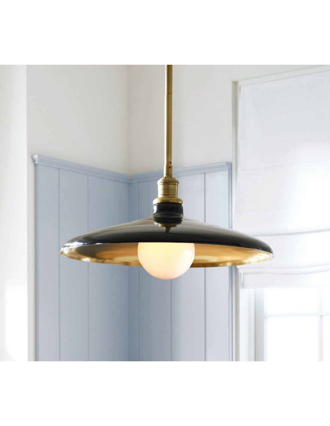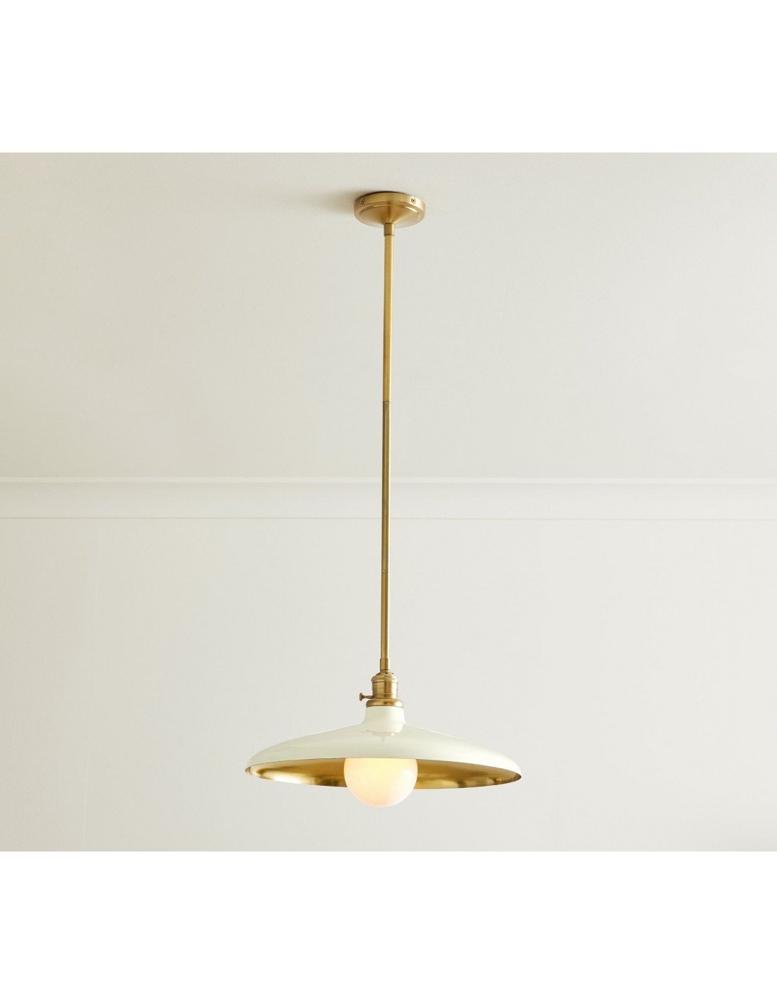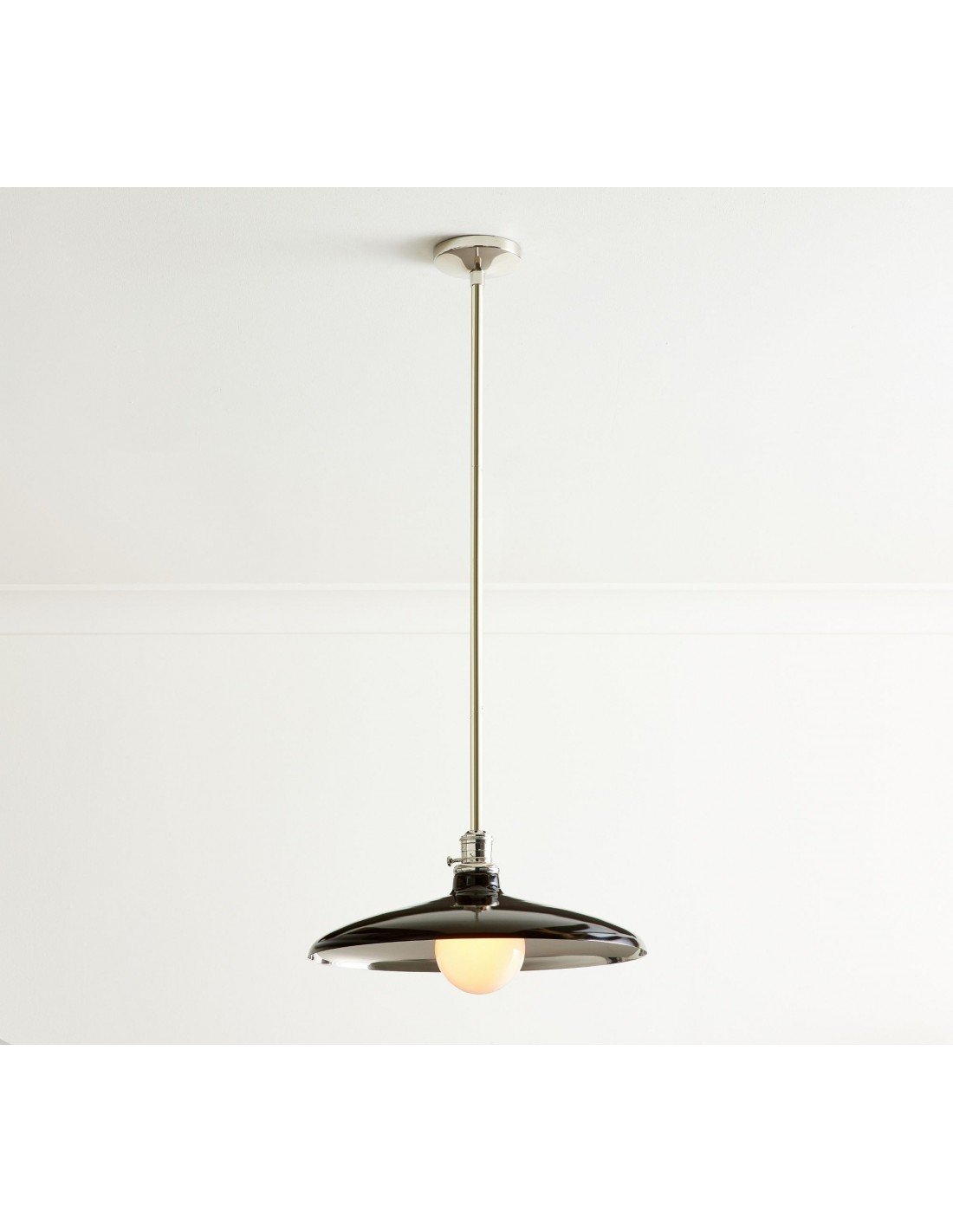 - Fabriqué en fer et en zinc avec une finition noir brillant ou blanc chaud avec un choix intérieur de nickel poli ou de laiton vieilli.