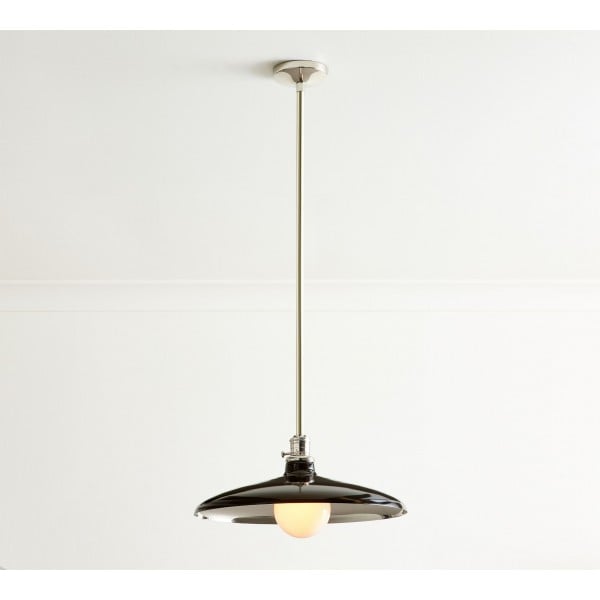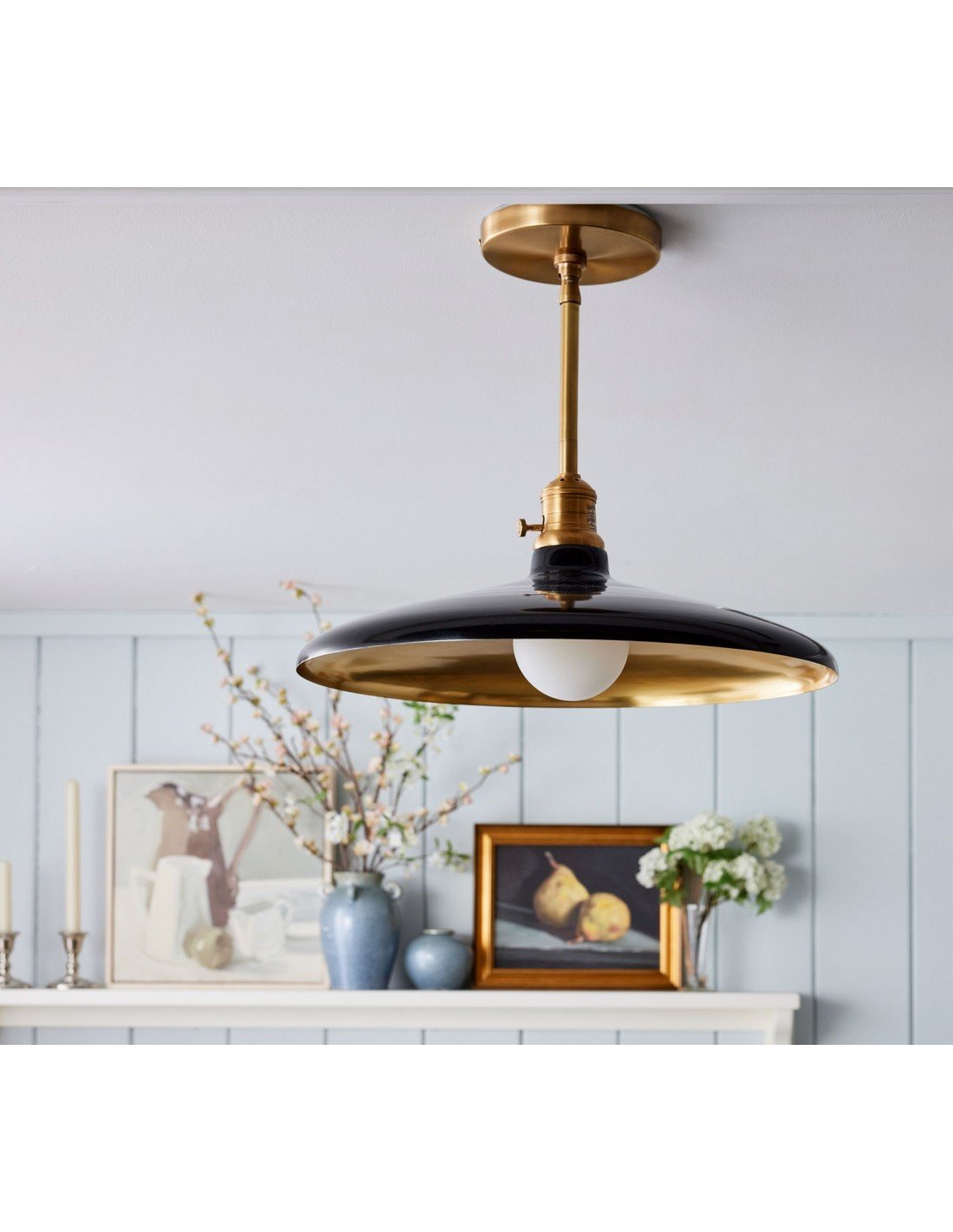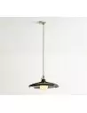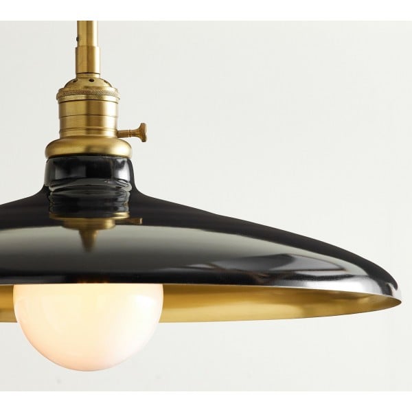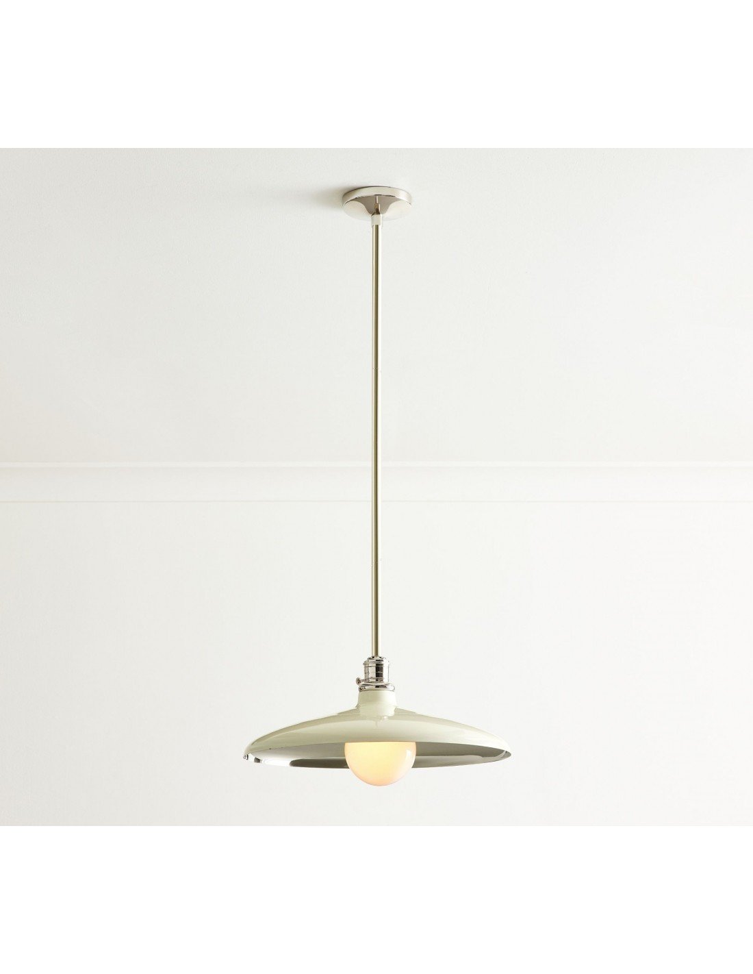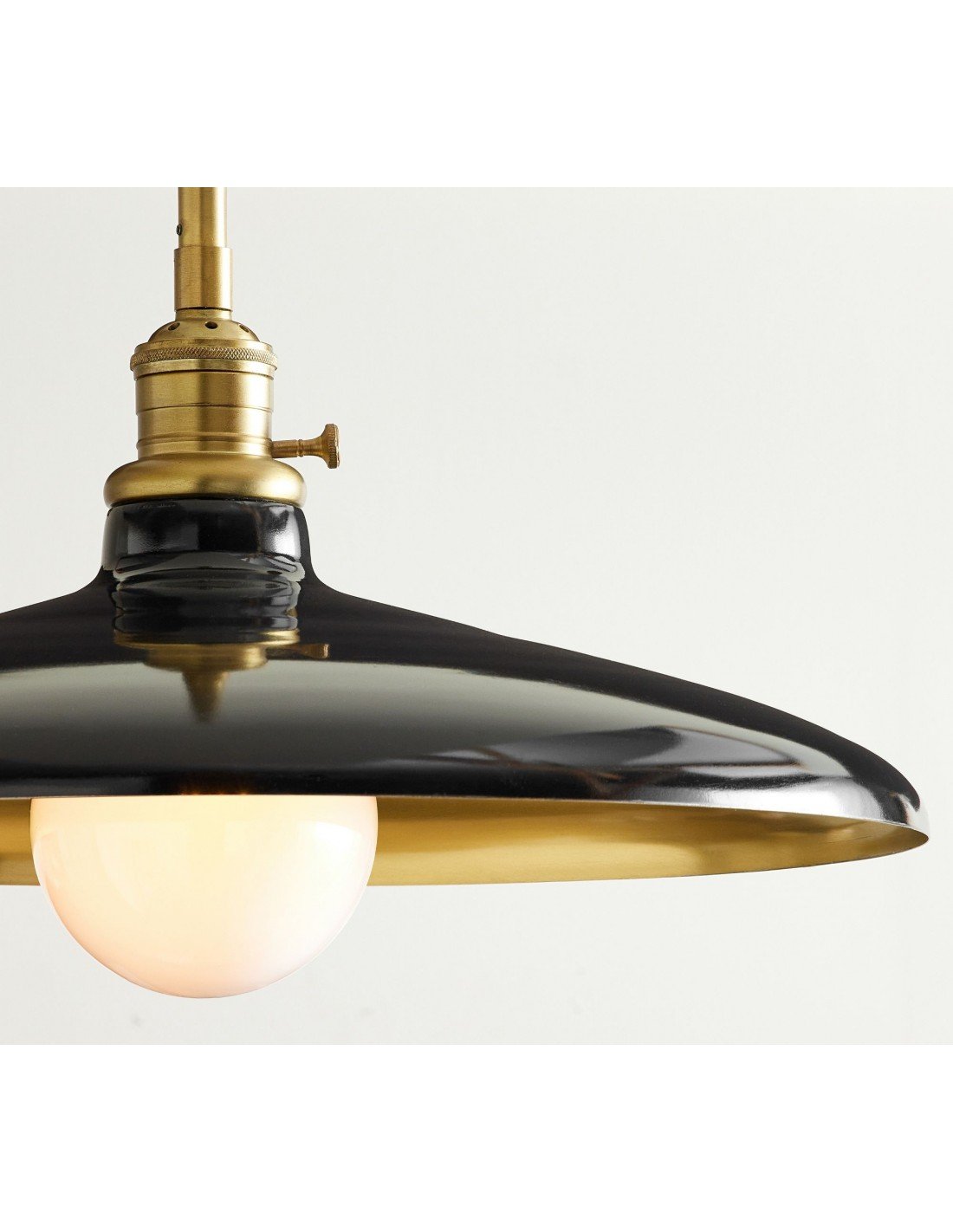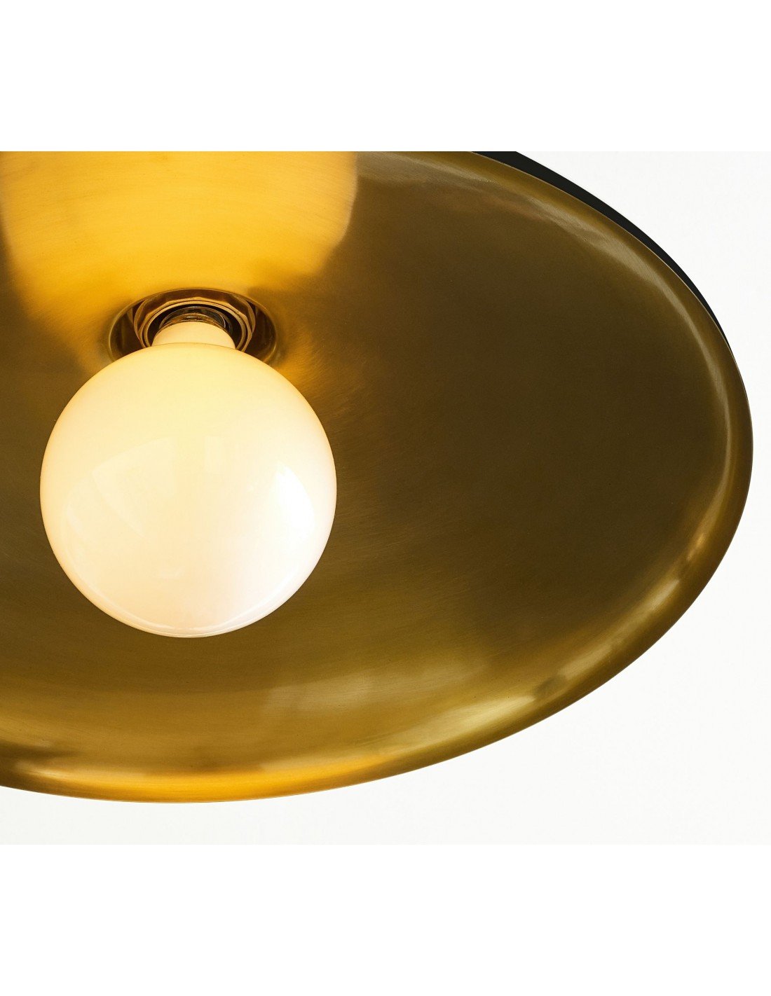 - Fabriqué en fer et en zinc avec une finition noir brillant ou blanc chaud avec un choix intérieur de nickel poli ou de laiton vieilli.