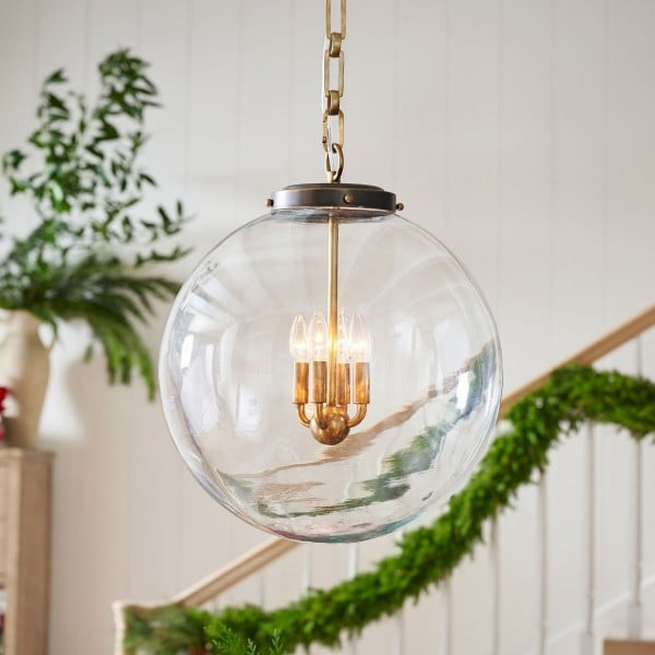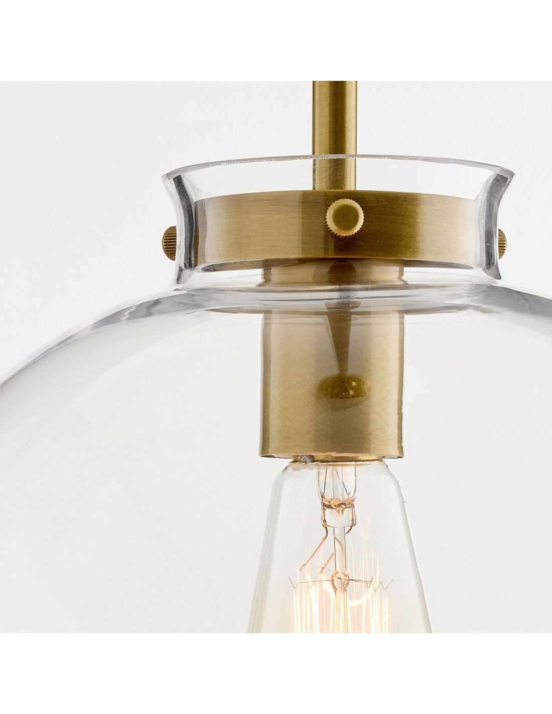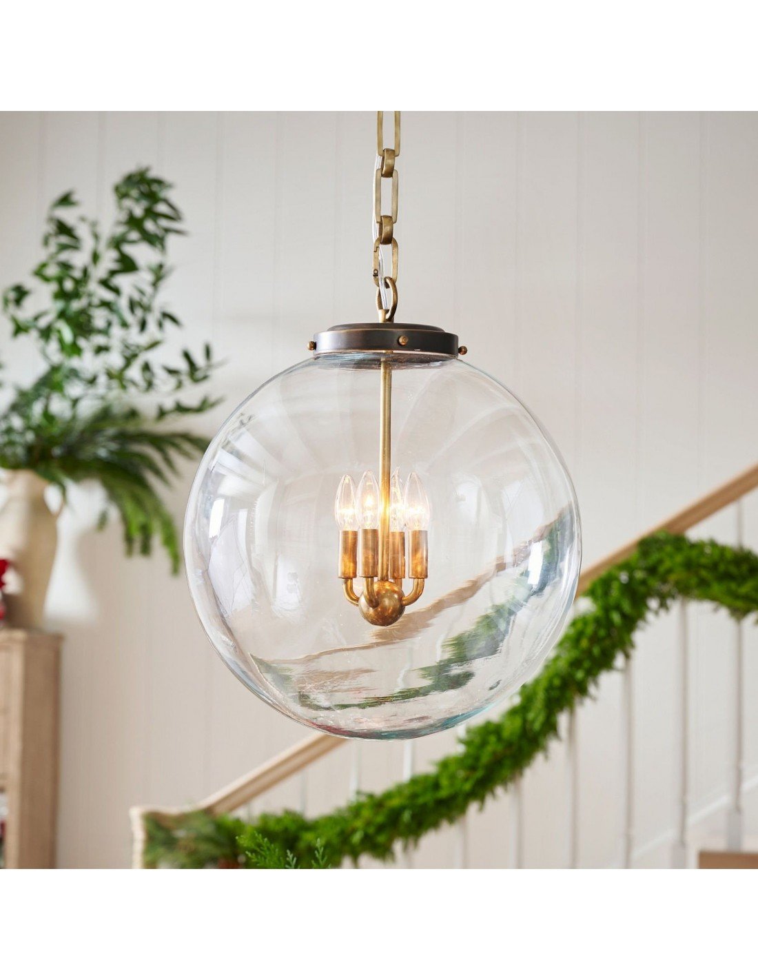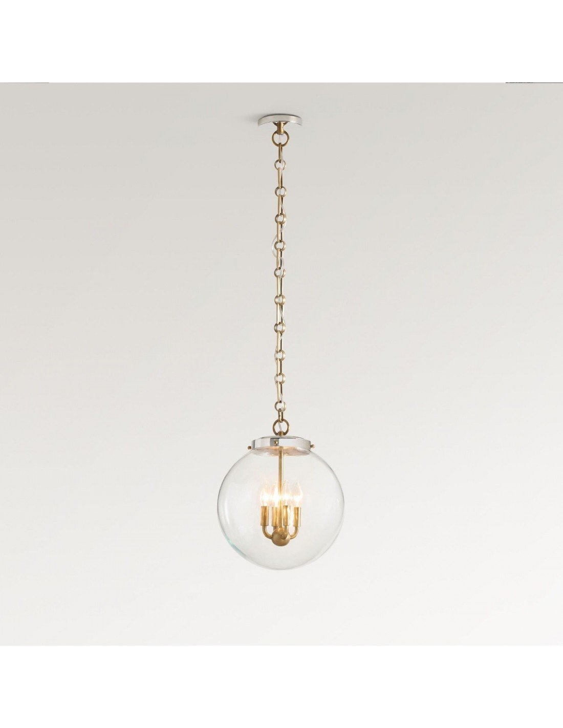 Découvrez la collection de suspensions globe en verre recyclé, comprenant des suspensions globe, dôme et cylindre en verre. Chaque suspension est fabriquée en laiton et possède des abat-jour en verre transparent soufflé bouche, avec une finition laiton vintage. Parfaites pour les intérieurs modernes, elles s'intègrent parfaitement aux cuisines, salles à manger et couloirs.