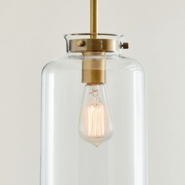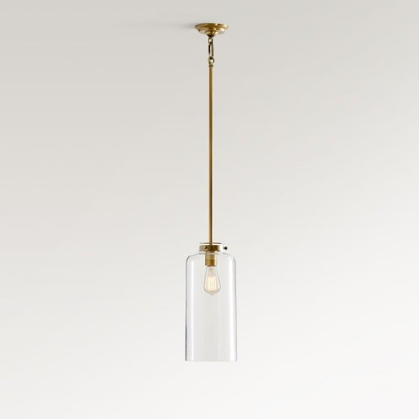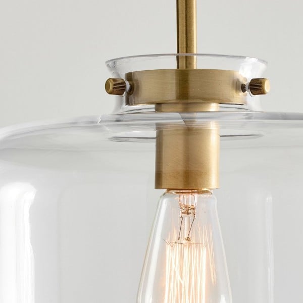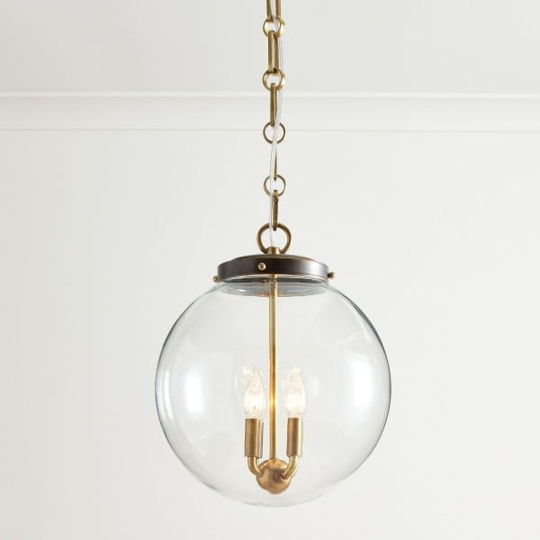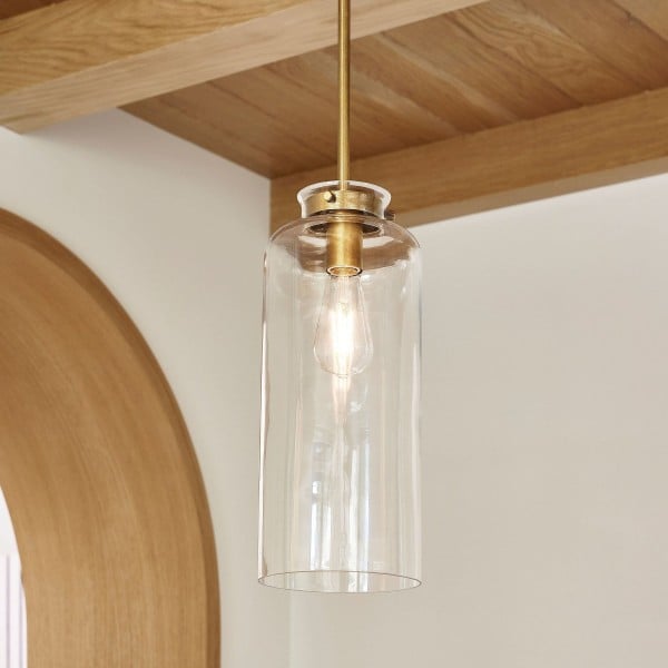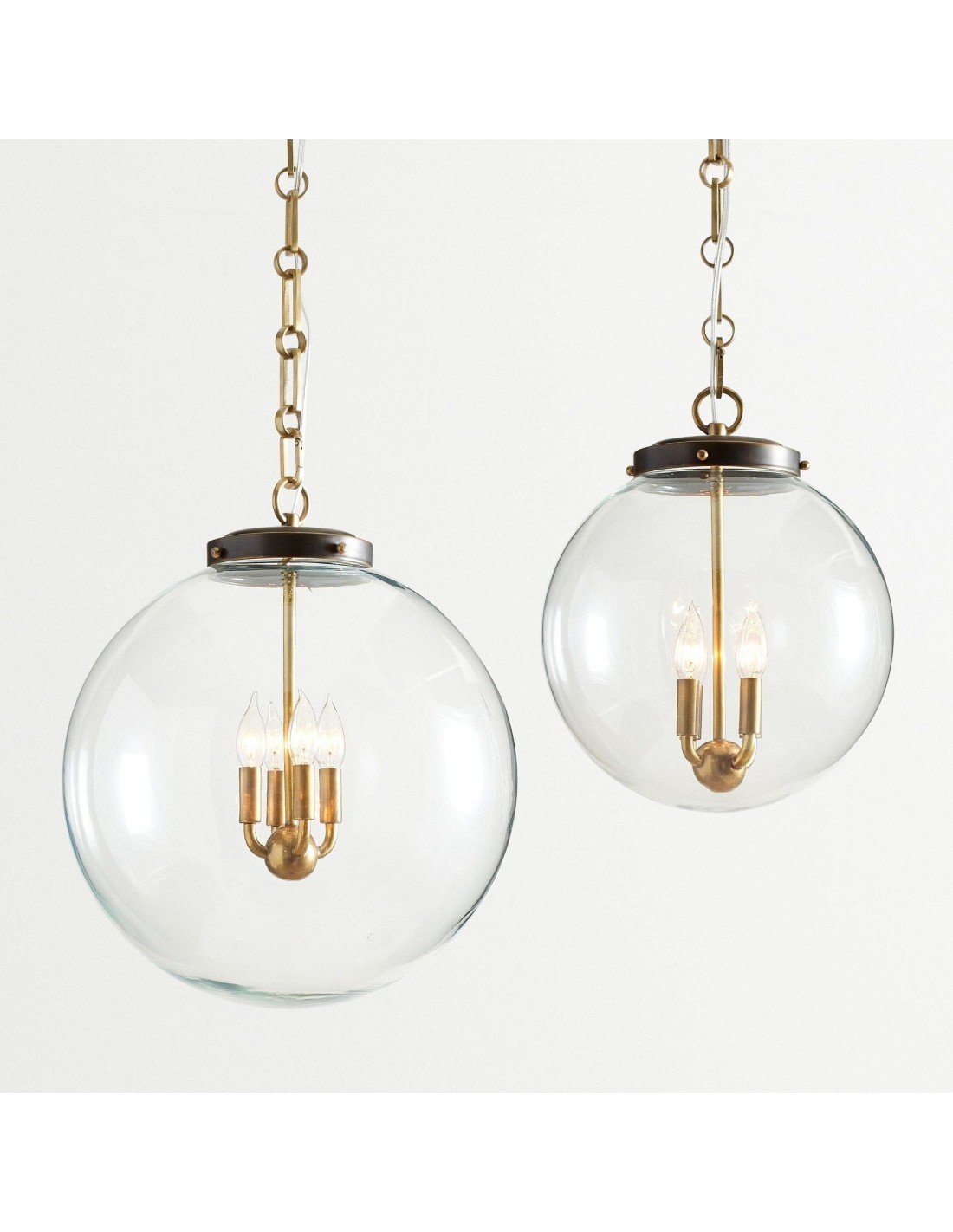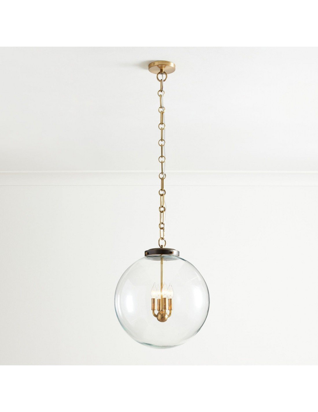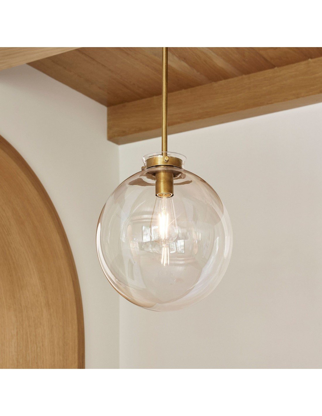 Découvrez la collection de suspensions globe en verre recyclé, comprenant des suspensions globe, dôme et cylindre en verre. Chaque suspension est fabriquée en laiton et possède des abat-jour en verre transparent soufflé bouche, avec une finition laiton vintage. Parfaites pour les intérieurs modernes, elles s'intègrent parfaitement aux cuisines, salles à manger et couloirs.