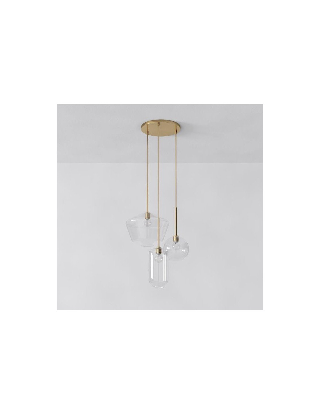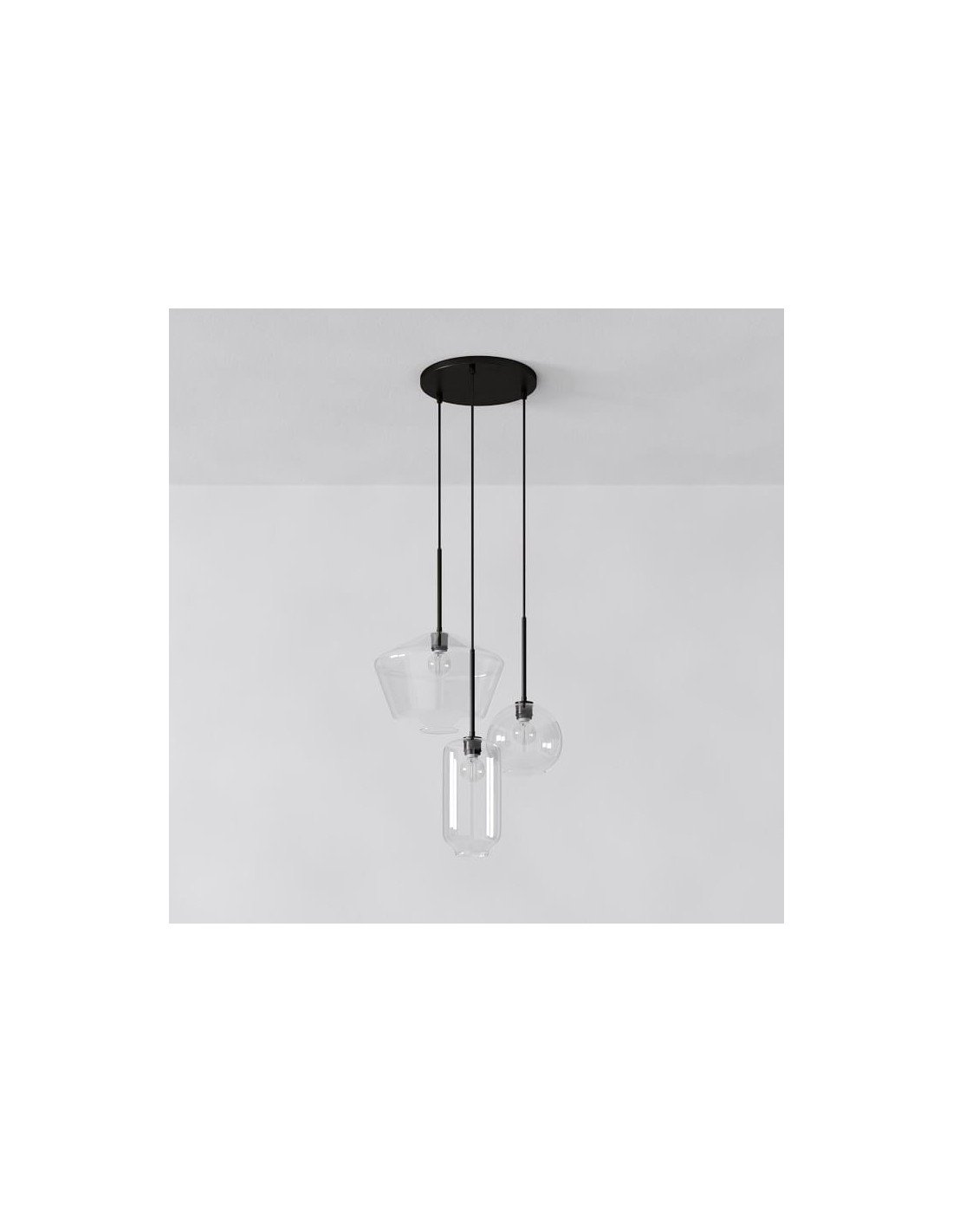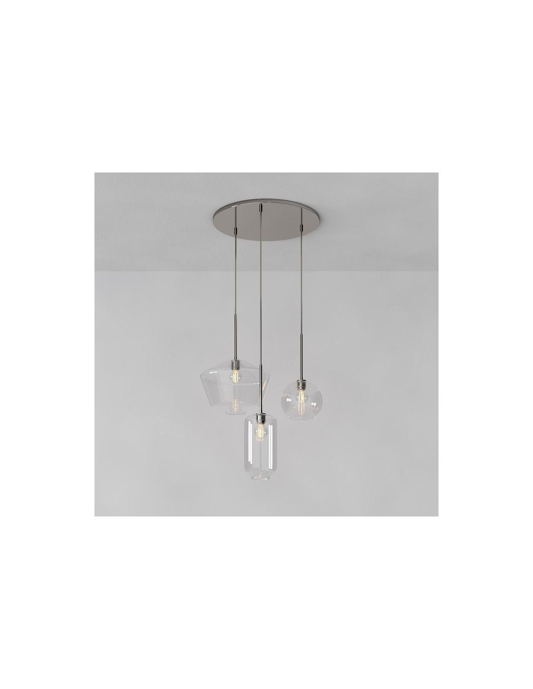 Lustre triple en verre et métal Merin, sculpture mixte KL1333