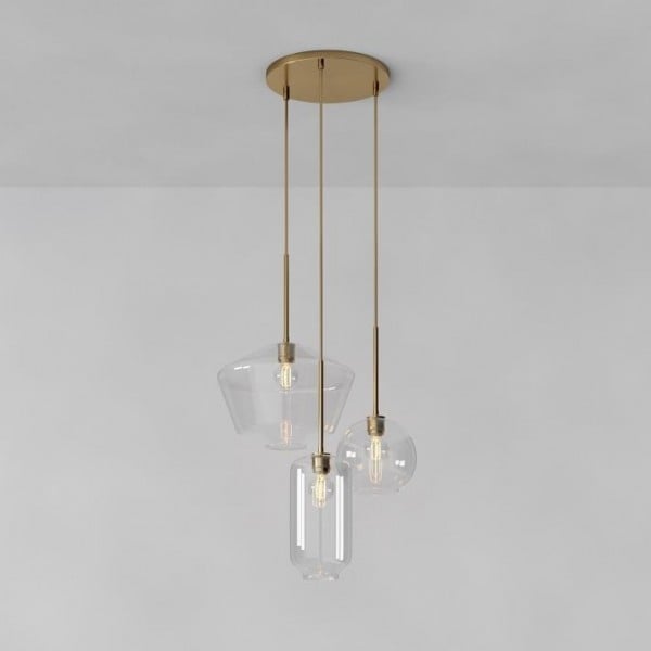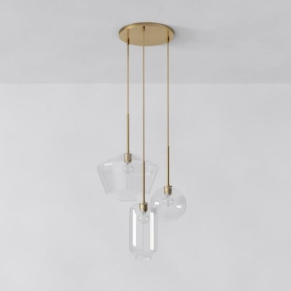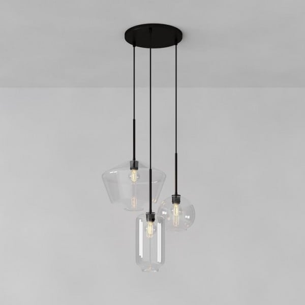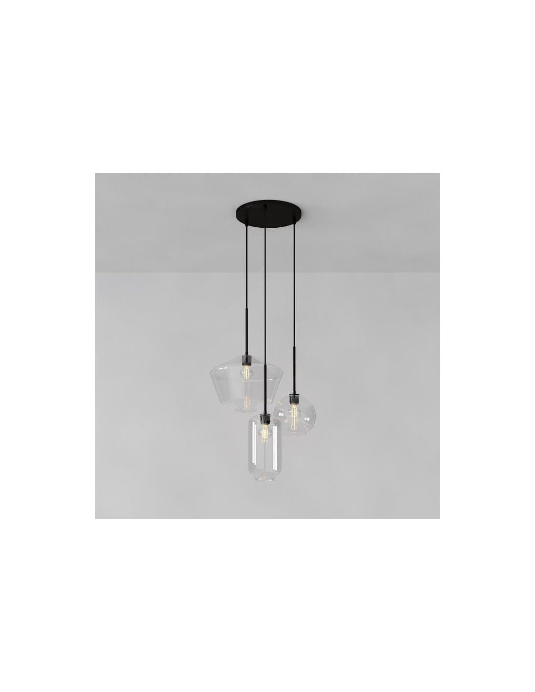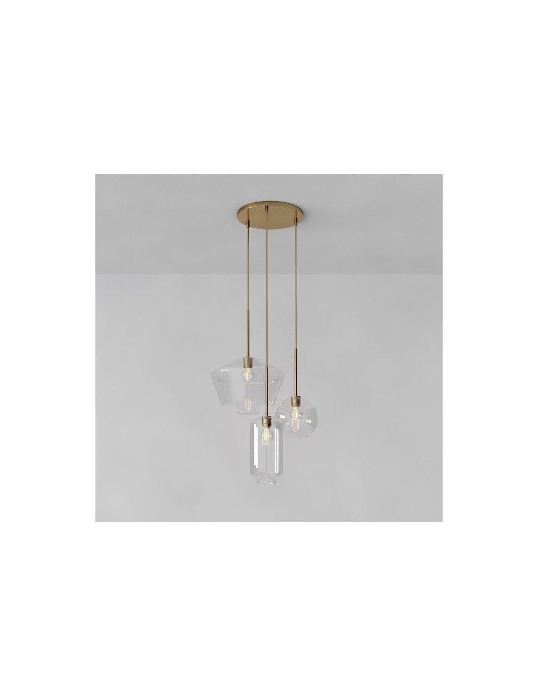 Lustre triple en verre et métal Merin, sculpture mixte KL1333