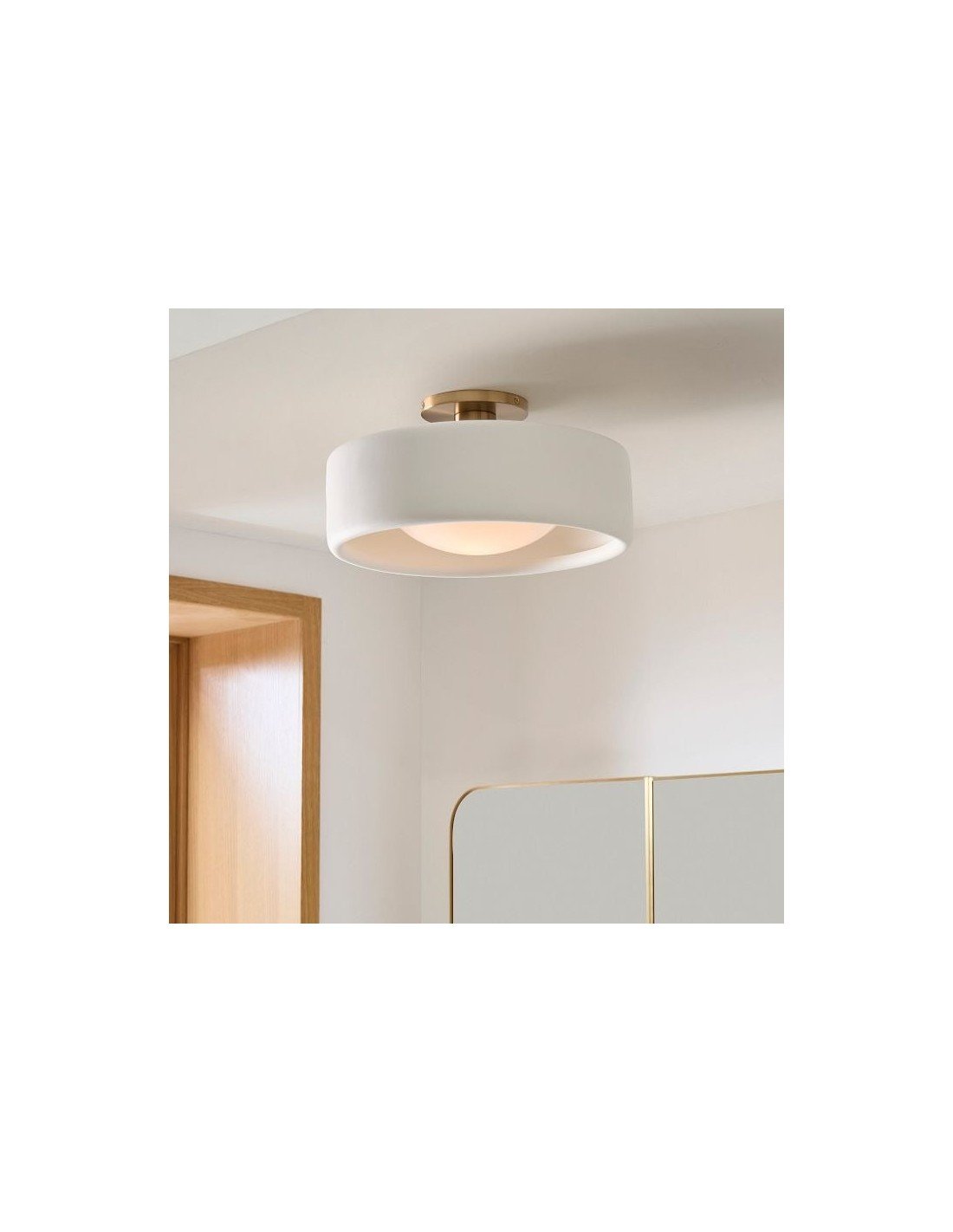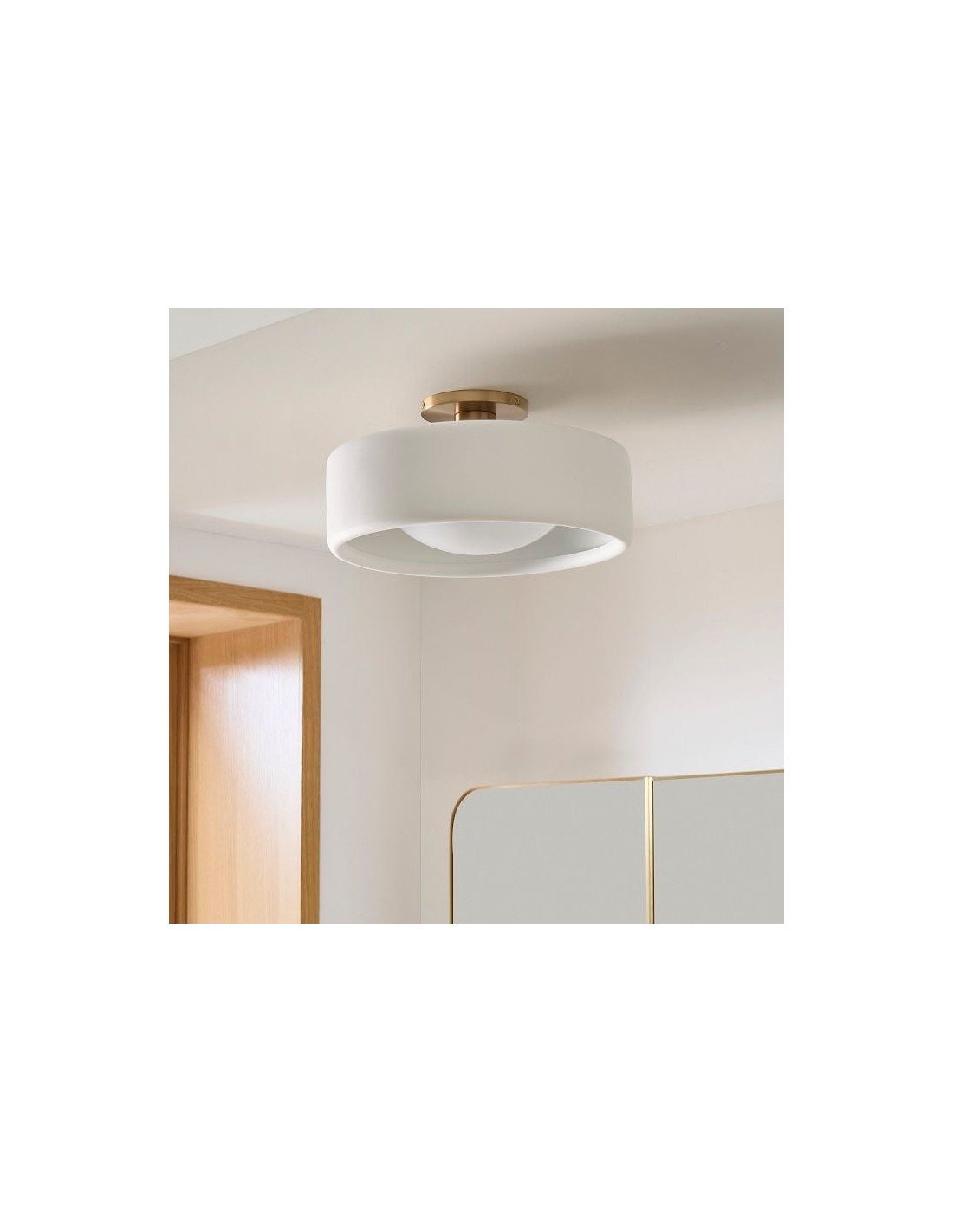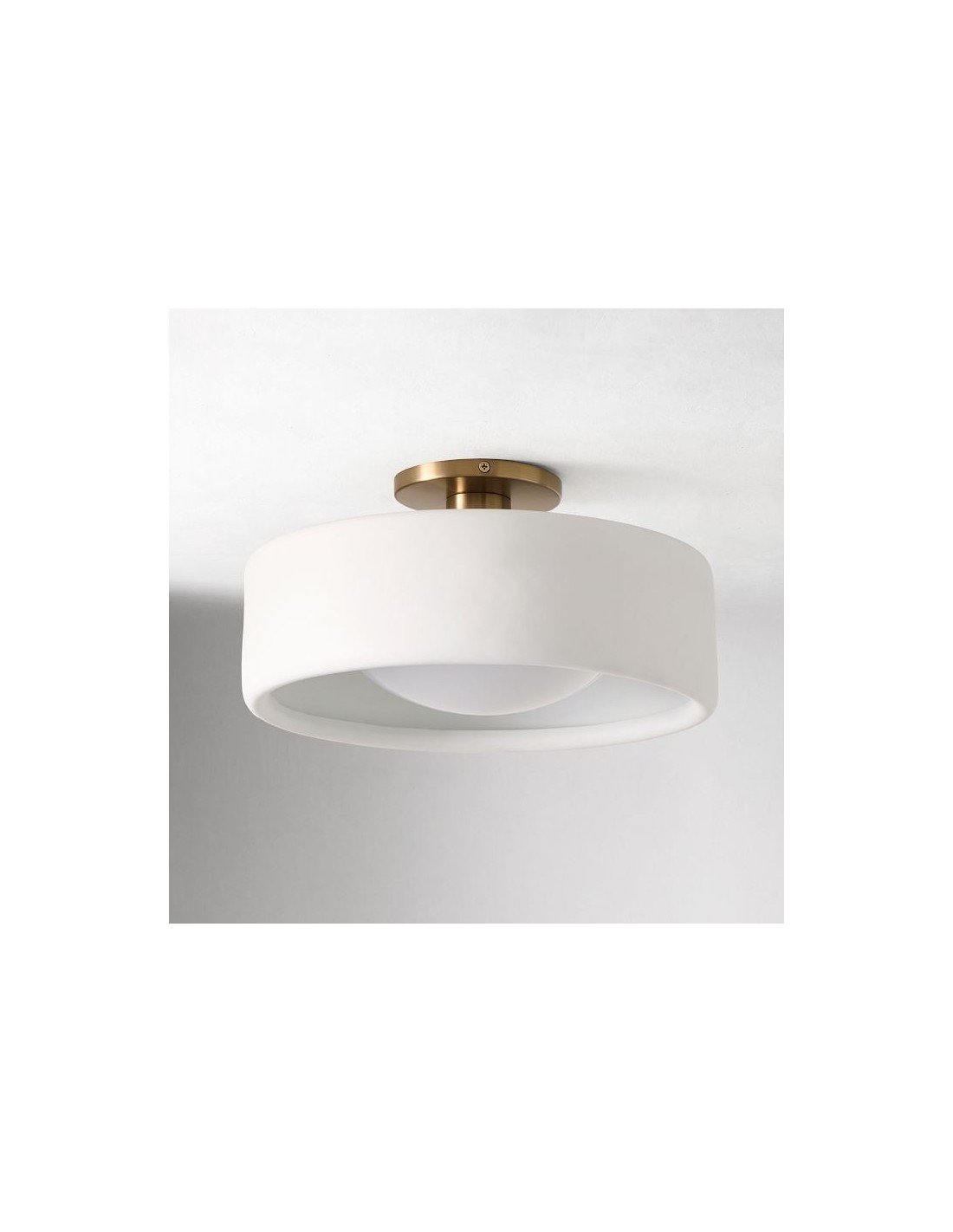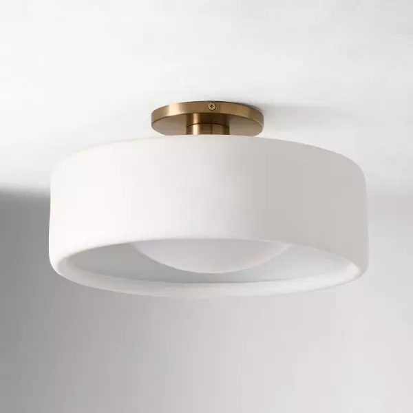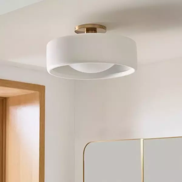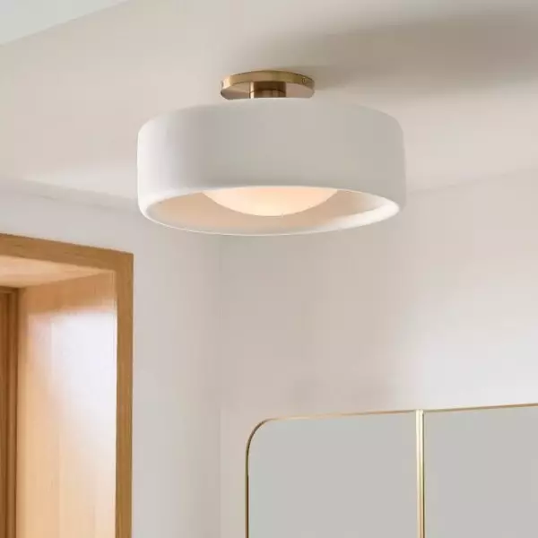 Le plafonnier en porcelaine apporte une ambiance lumineuse et aérienne à n'importe quelle pièce. Son abat-jour raffiné en porcelaine ivoire contraste magnifiquement avec sa finition métallique élégante, ajoutant une touche d'élégance à votre entrée ou votre chambre. Idéal pour ceux qui recherchent un plafonnier simple et élégant, à l'esprit naturel et organique.