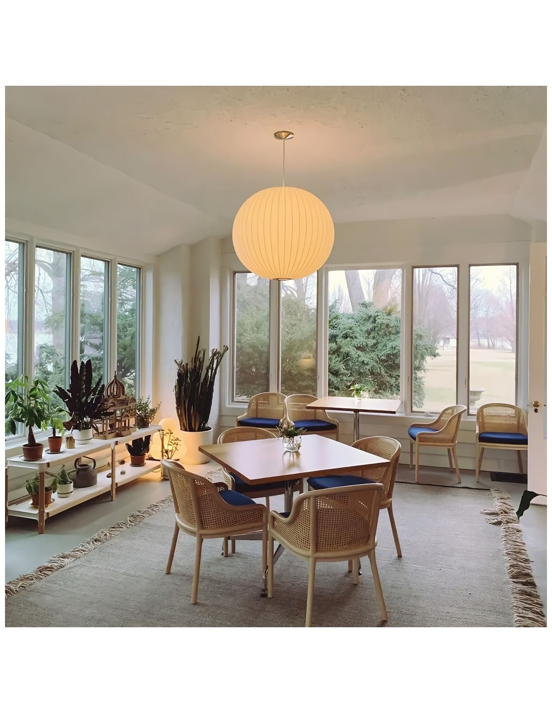 La grande surface de la Lampe Nelson Bubble minimaliste et moderne disperse une lumière douce dans tout espace intérieur, soutenue par une tige en acier qui plane gracieusement au-dessus de votre tête.
