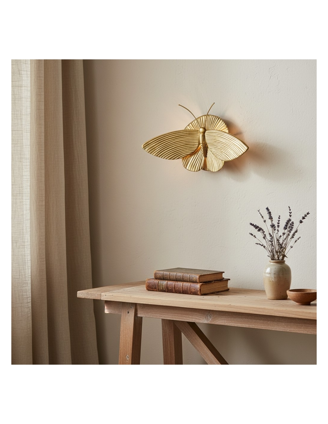 Cette applique murale décorative arbore une silhouette saisissante inspirée d'un papillon de nuit, transformant l'éclairage en une véritable œuvre d'art. Sa forme sculpturale ailée apporte texture et relief, diffusant une douce lumière d'ambiance qui sublime l'espace. Alliant charme vintage et détails artistiques, cette applique est idéale pour les chambres, les salons, les couloirs ou les entrées.