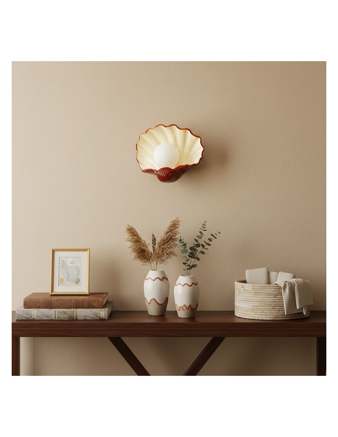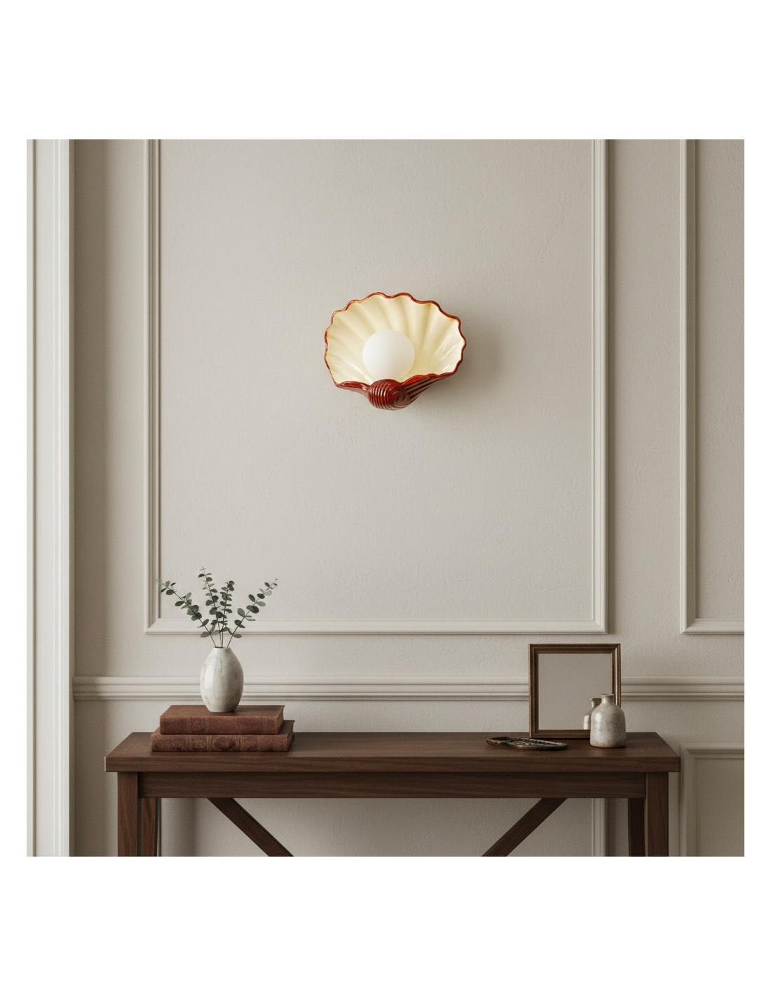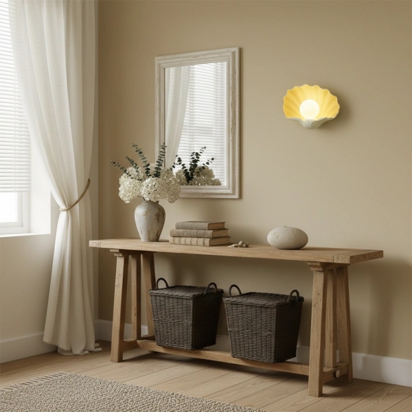 Cette applique murale Nautris, d'une grande finesse, présente un corps cannelé en forme d'éventail, évoquant un coquillage classique. Pièce maîtresse polyvalente, elle est idéale pour apporter une touche de charme vintage et un éclairage d'ambiance à votre salon, chambre, couloir ou coiffeuse.