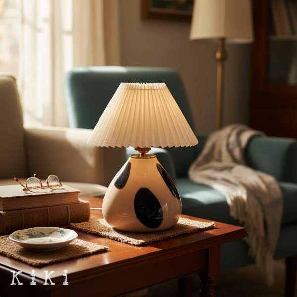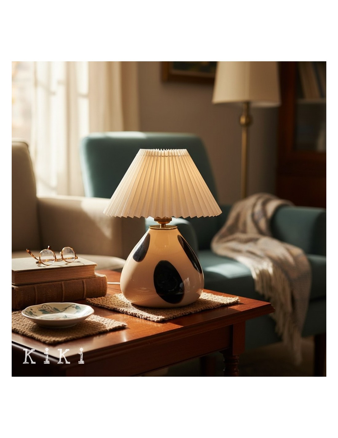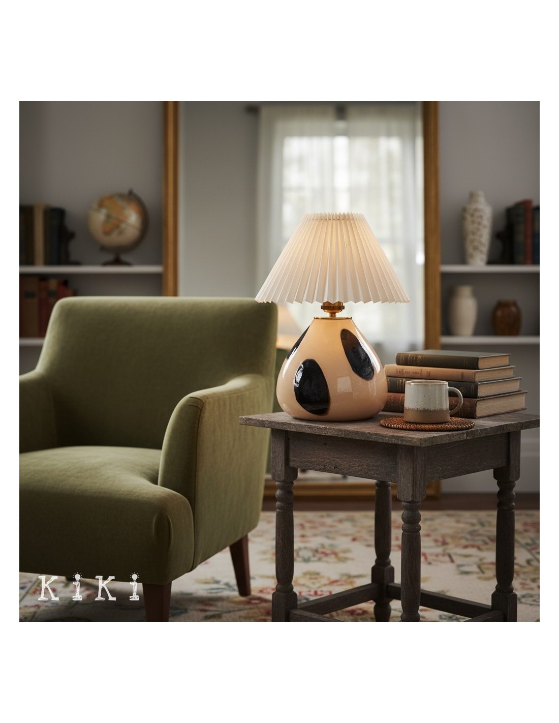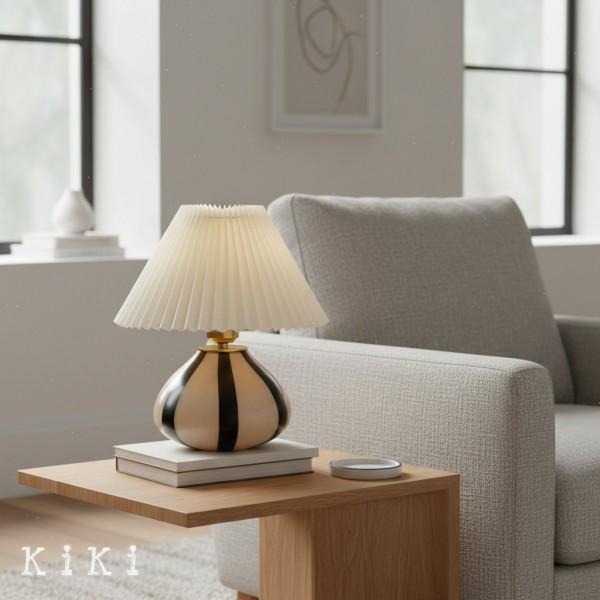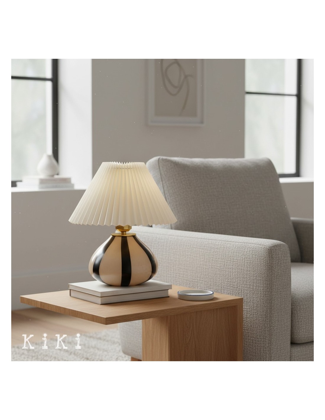 La lampe de table Undara associe un abat-jour en tissu plissé à une base en verre élégante, créant une lumière ambiante chaleureuse et accueillante. L’abat-jour soigneusement plié diffuse la lumière avec douceur, produisant des ombres subtiles qui apportent confort et raffinement.