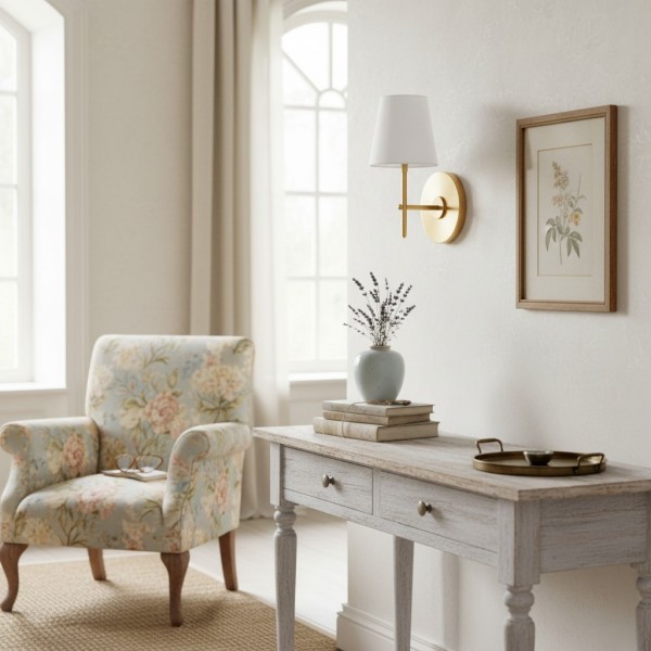 Applique murale dorée contemporaine Ornato – Finition dorée et abat-jour crème KL1402